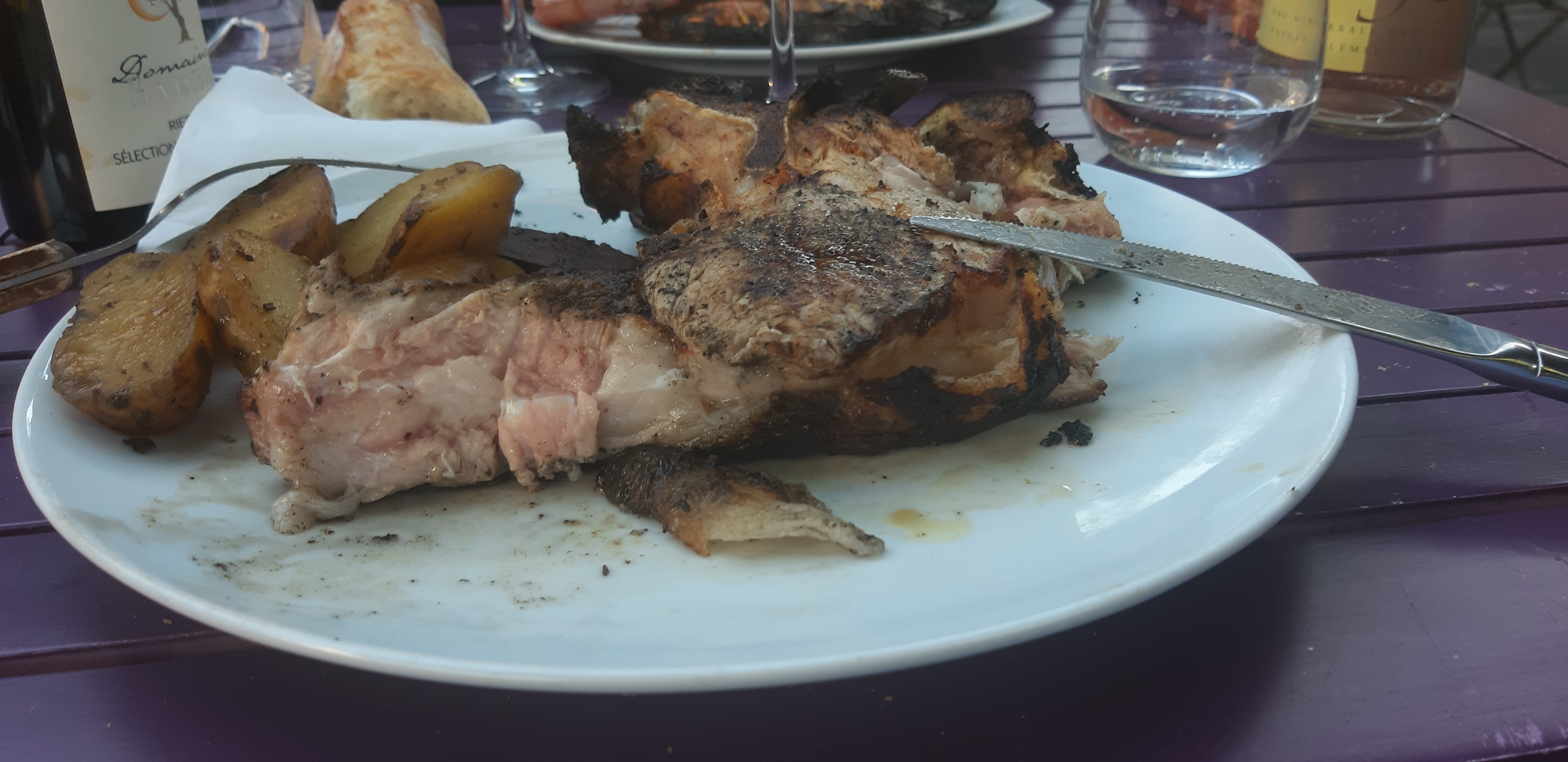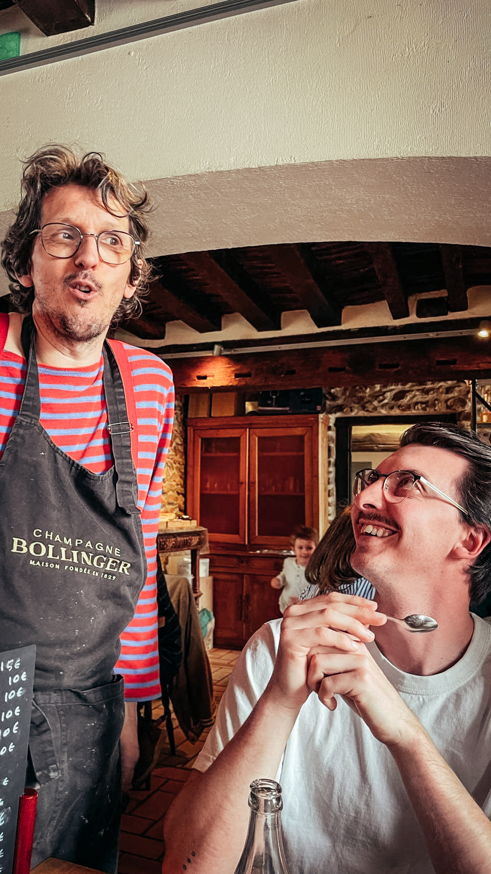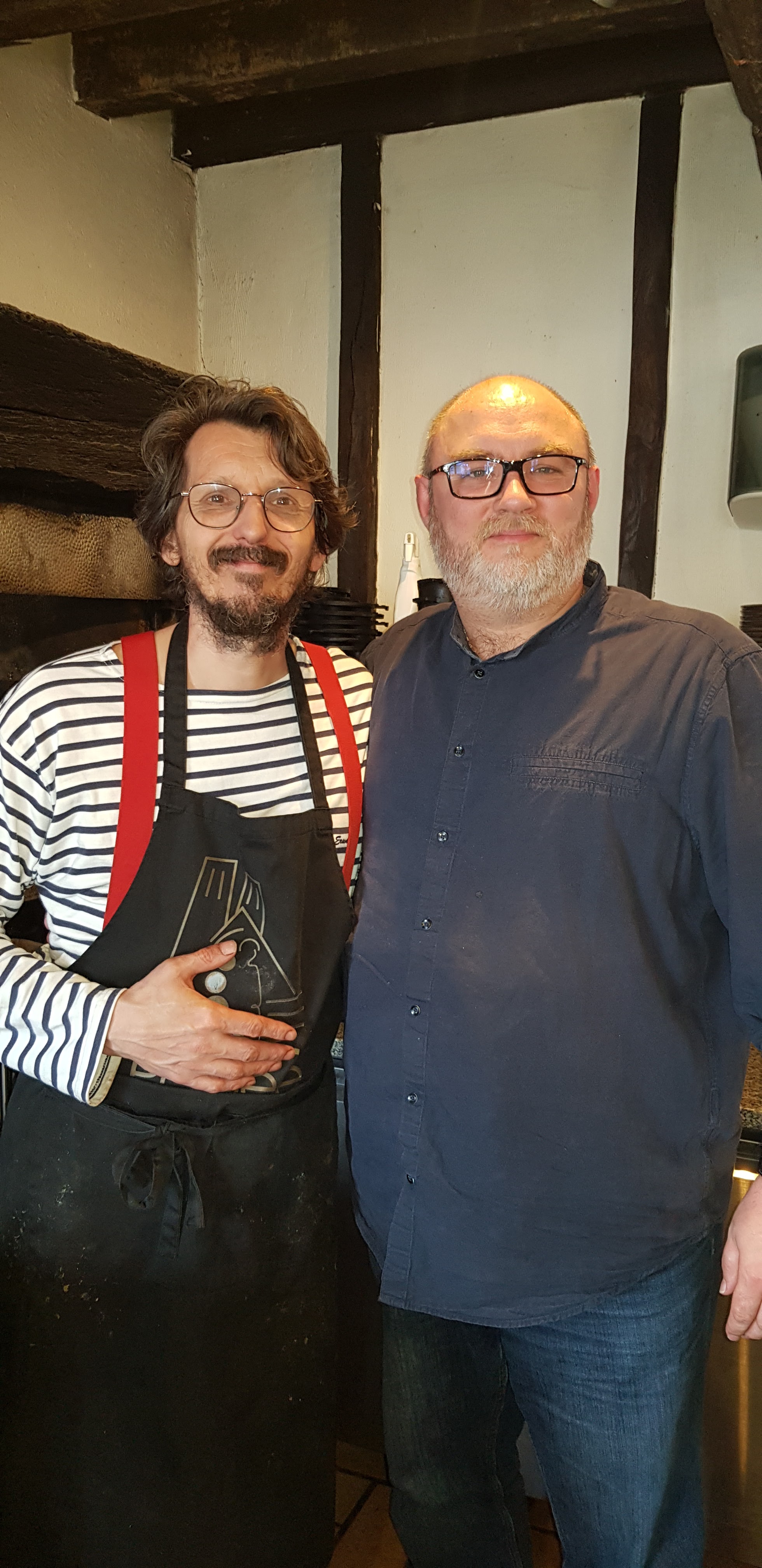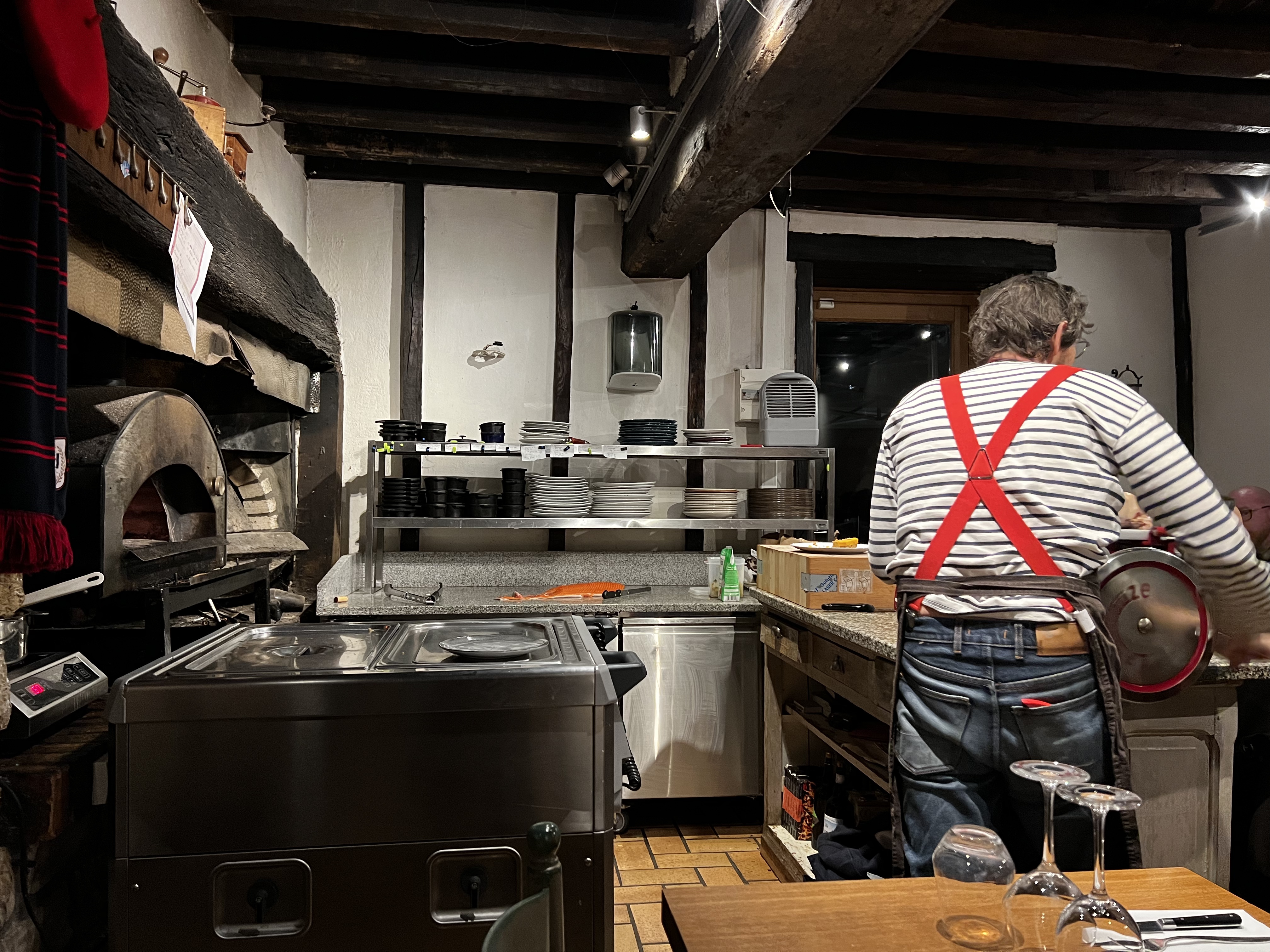A la bonne franquette. J ai adoré, Erwan est un personnage à lui tout seul. On va chercher sa bouteille de vin à la cave (beaucoup de choix) la nourriture est cuite au feu de bois devant nous.