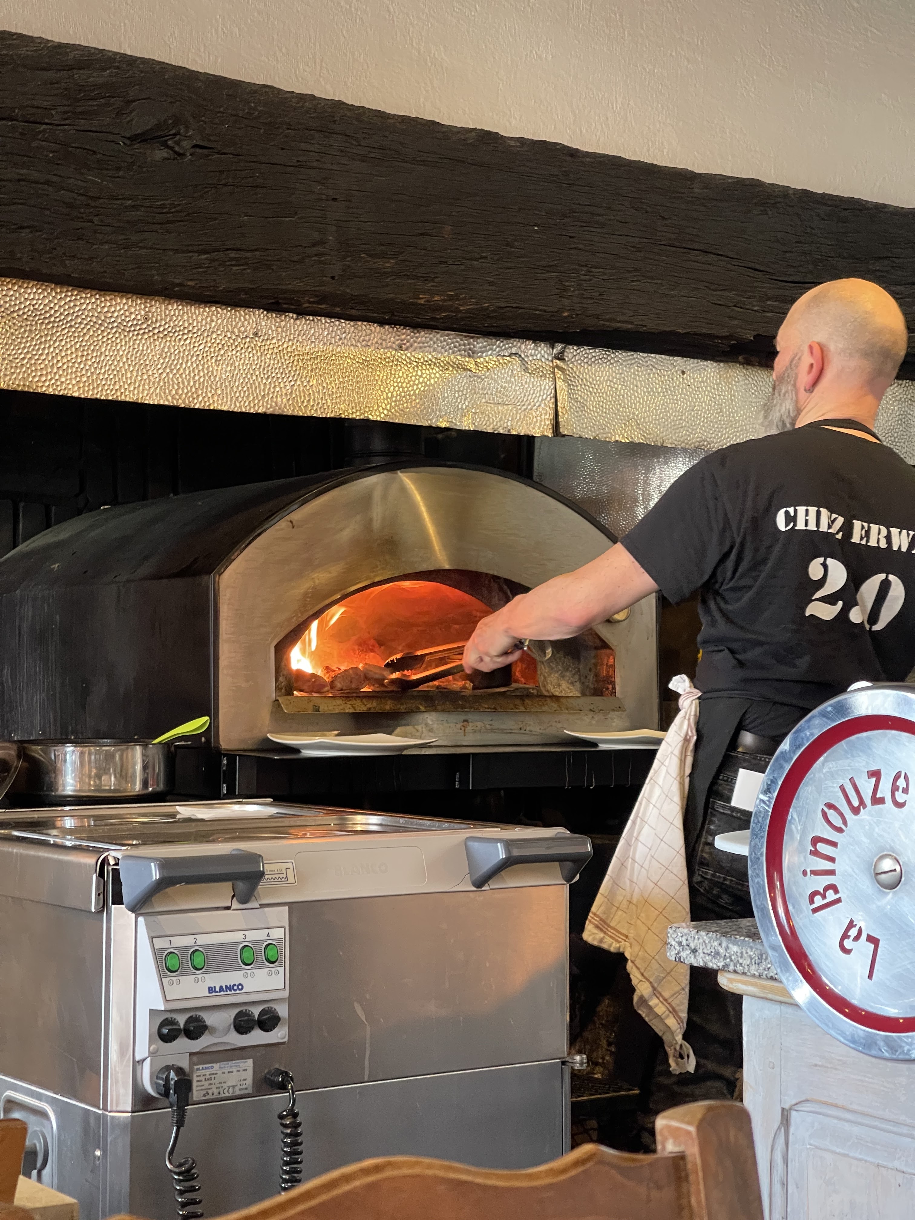 Un concept vraiment original de ce que j’ai l’habitude de voir… une ambiance chaleureuse autour d’un bon four à pizza où sont cuites les cotes de bœufs d’un calibre impressionnant. Erwan met l’ambiance dès votre arrivée… ne soyez pas en retard sinon….😜 La qualité et la quantité des plats sont exceptionnelles… faites votre choix de bon vin dans la cave dédiée …. Très bon moment, on adore 🥰
