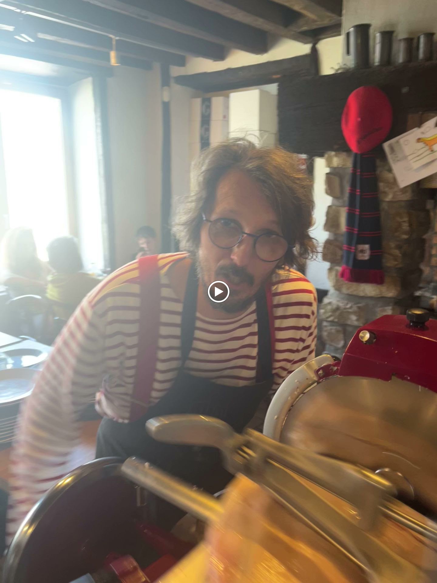 Nous étions de passage, personnage de haut vol identique à celui de la télé ! L’accueil de l’équipe, le cadre très sympa, les plats sont bons avec un grand choix pour le vin 🍷 que vous choisissez vous-même grâce aux conseils d’un très bon cuistot un peu farfelu mais drôle 🤣 désolé pour les photos plats desserts ils ont vite était avalés 😳😭😭😂😂