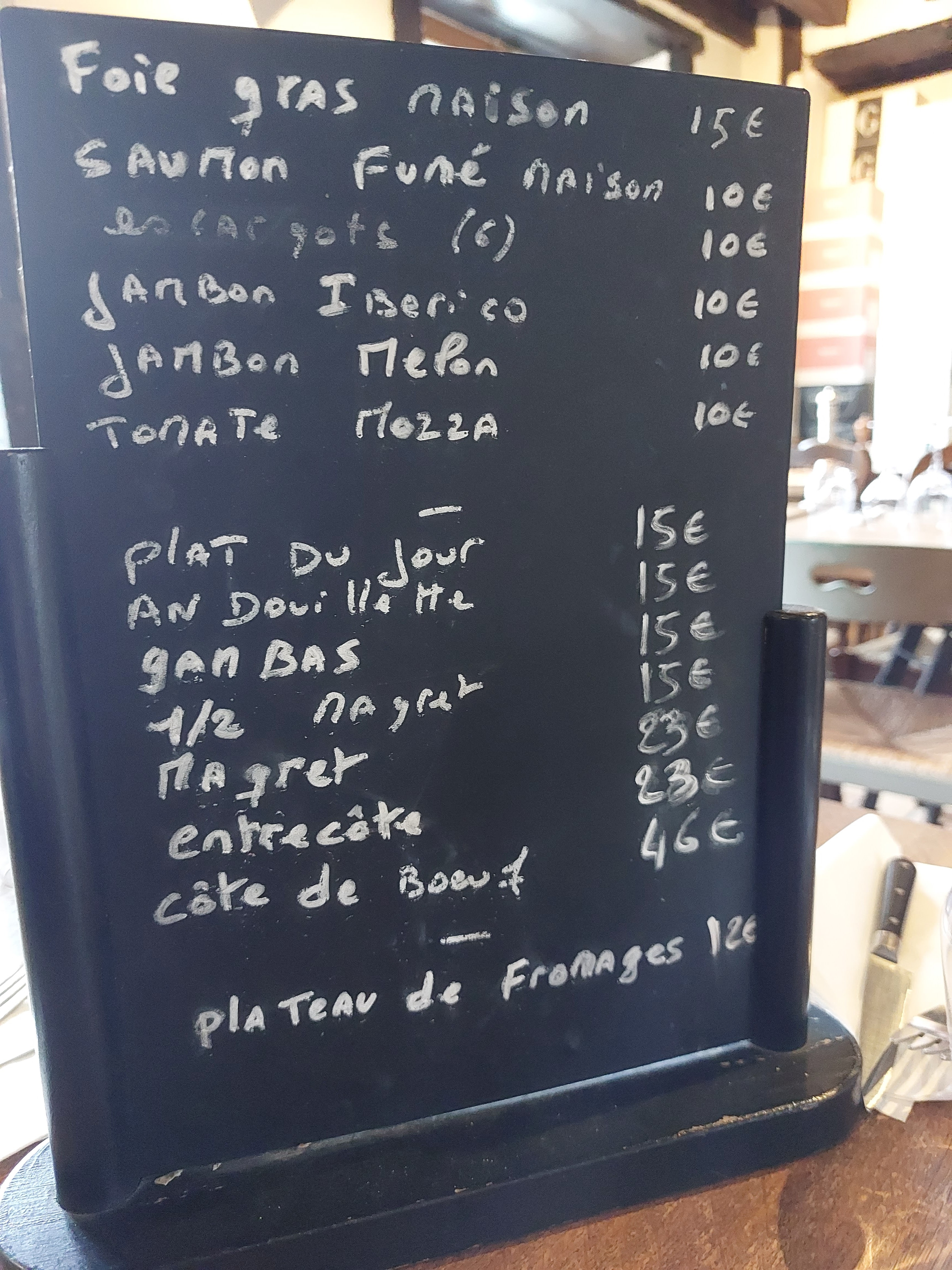 Excellent !!! Merci pour tout 🥩👌 Entré terrines de sanglier maison et escargots pour moi , foie gras maison et jambon ibérico pour madame ensuite magret entier avec ses pommes de terre, et pour moi cote de boeuf sans os de 1kg avec quelques pommes de terre histoire de dire ! Bon, c'était vraiment top super ambiance, merci pour tout j'espère a bientôt