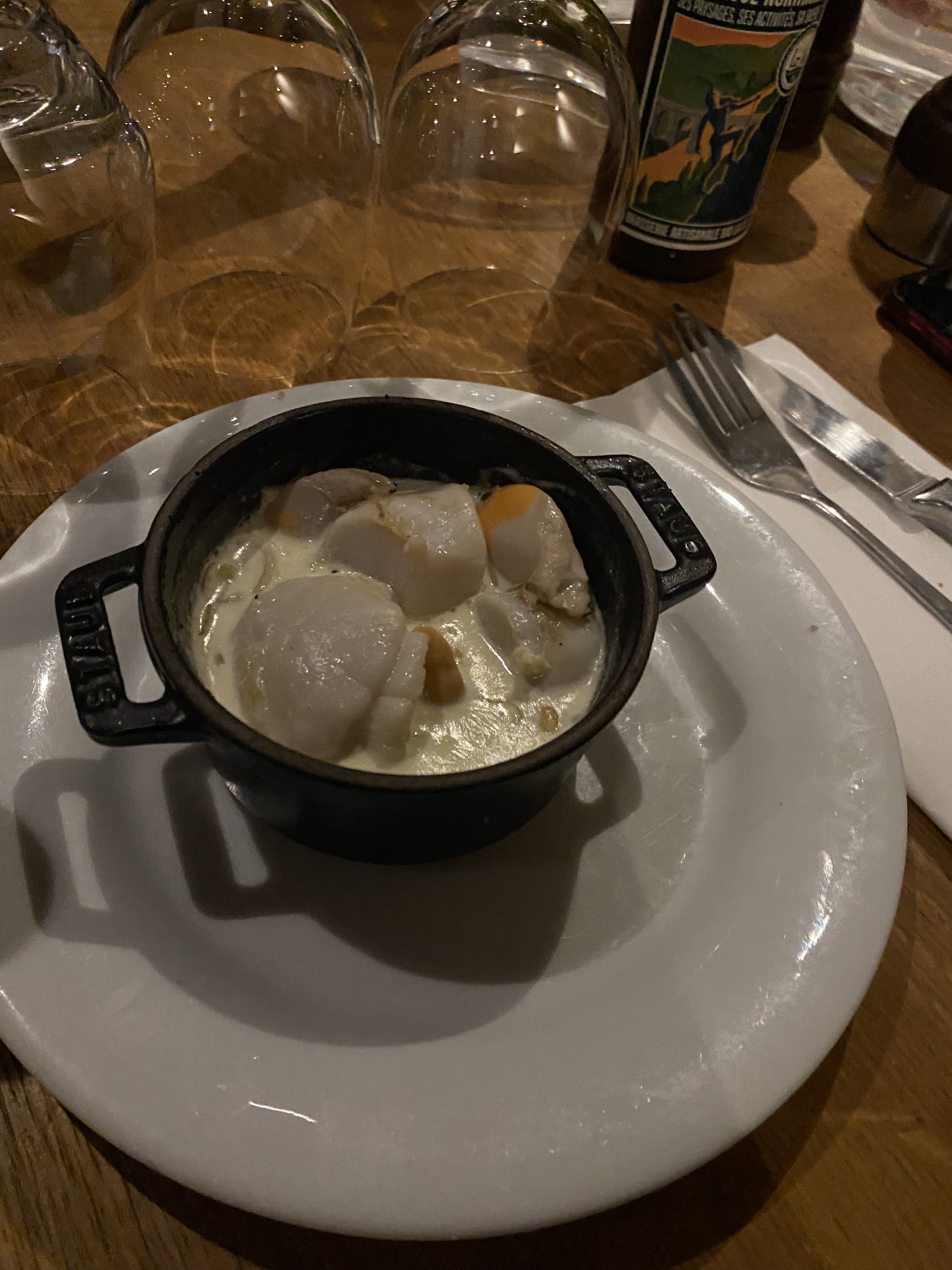 Accueil très sympathique. L’ambiance est simple et chaleureuse. Erwan y participe grandement. Les entrées étaient délicieuses. Notamment les escargots cuit au feu de bois. En revanche la viande n’était pas bonne et en particulier les côtes de bœuf qui étaient si nerveuses qu’il y avait pas beaucoup à manger. Nous nous sommes fait conseillés pour le vin, et c’était parfait. Une mention spéciale au serveur qui s’en est occupé. De belles découvertes.