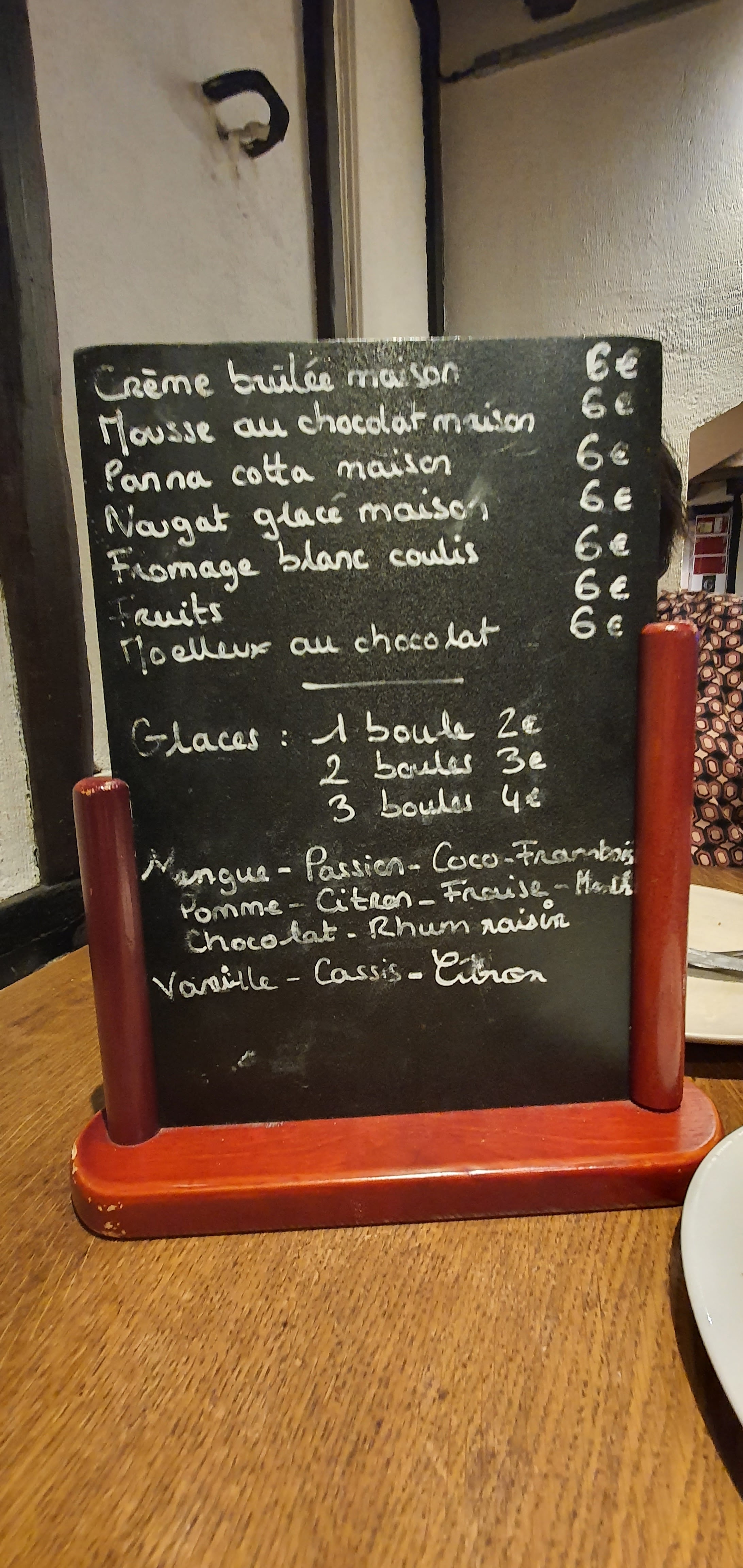 entrée jambon chaud limite rance plat boudin brulé en surface et froid au centre du creuset dessert mousse au chocolat sans saveur addition SALEE A EVITER