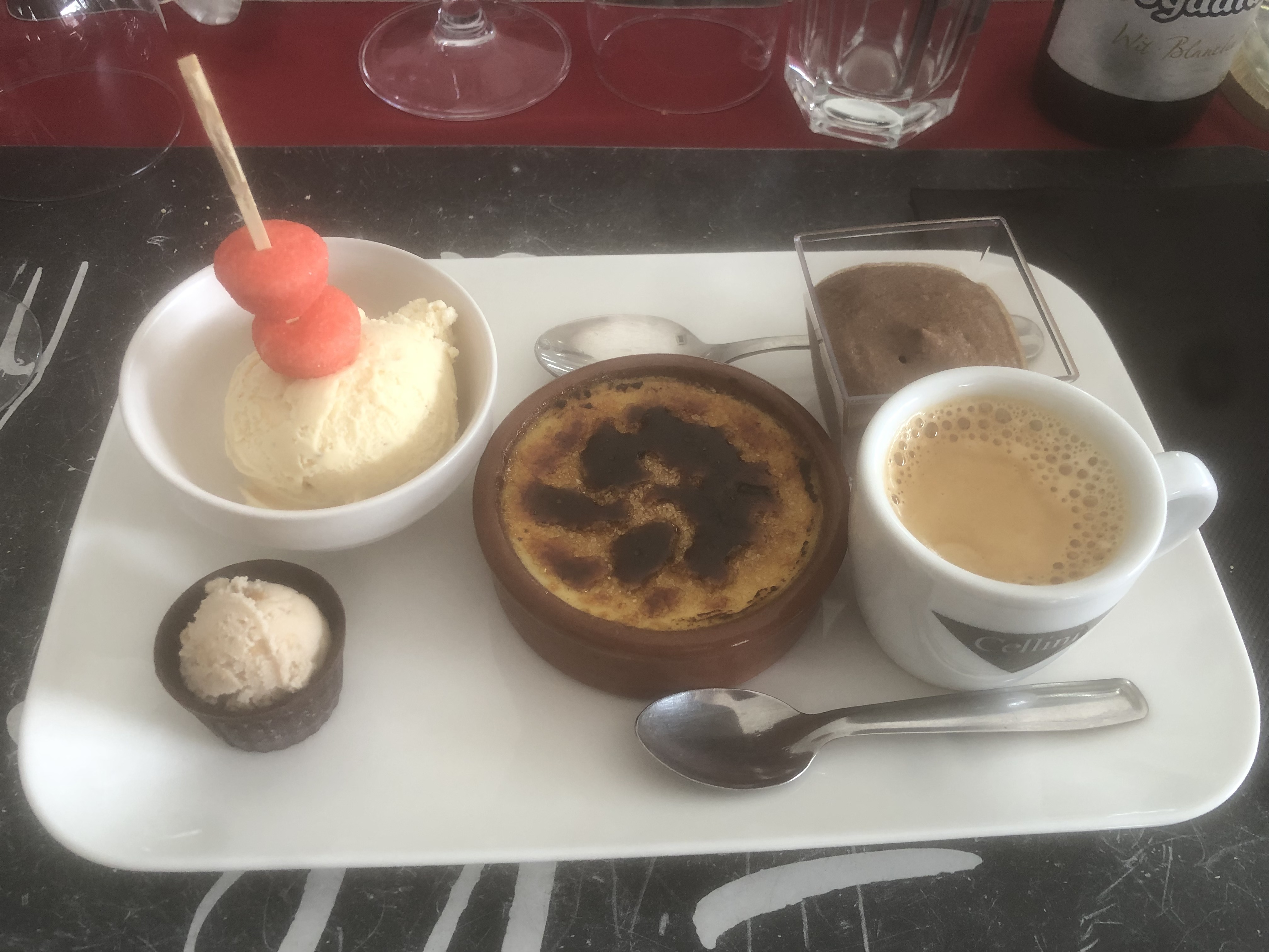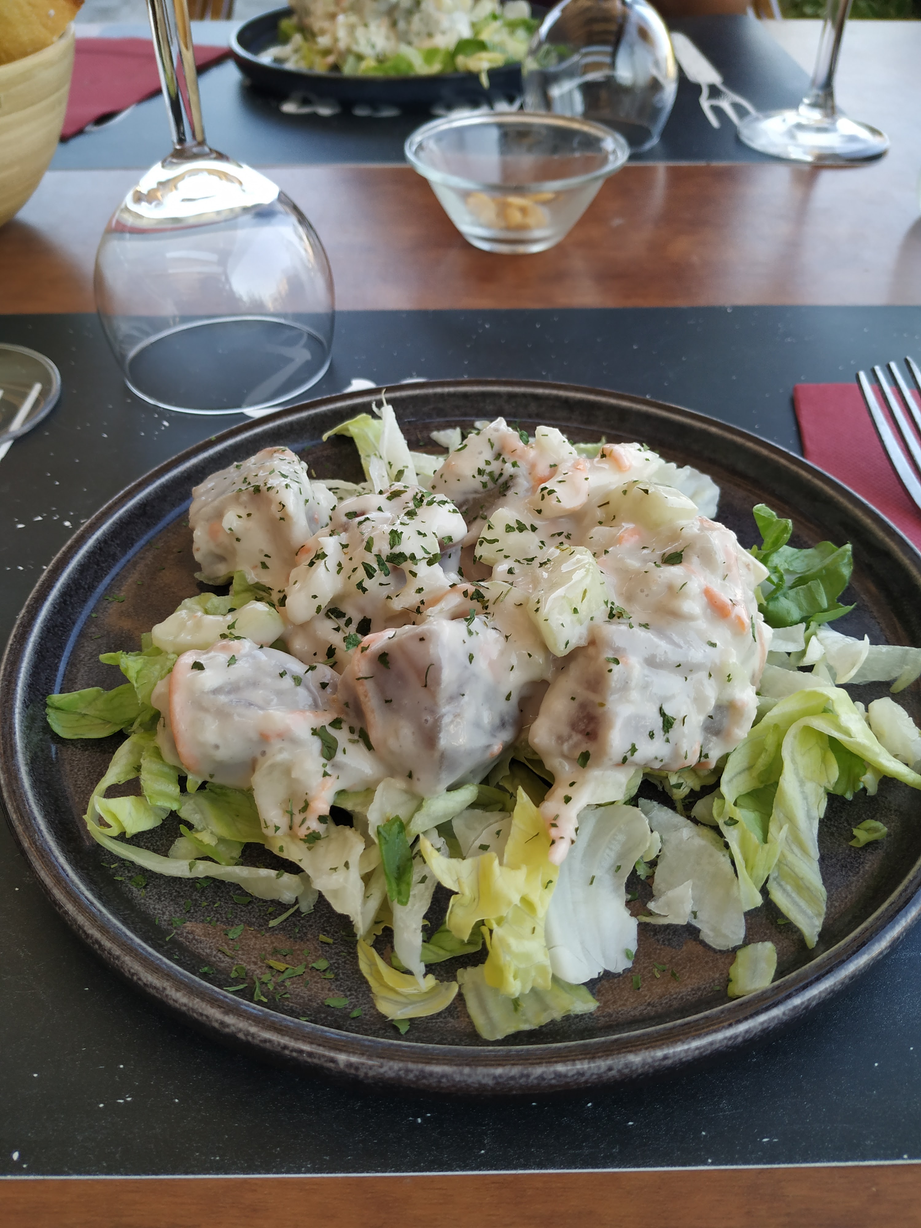Sur la base des bonnes critiques, nous avons décidé d'essayer chez Fanny pour un déjeuner local. Nous voulions essayer la nourriture à laquelle les gens d'ici sont habitués. Nous avons décidé de ne pas manger « soi-disant » et une cuisine raffinée éponyme, mais une cuisine honnête préparée avec amour. Comme le montre ma note, nos attentes ont été satisfaites à tous égards et nous avons apprécié la nourriture. Nous avons apprécié un plat de poisson local (Lotta d'aimericaine) ainsi que le dessert. Enfin, une crème brûlée pas trop sucrée (même si un tout petit peu plus de piquant serait bon pour une croûte parfaite) La gentillesse du service et l'ambiance accueillante ont été le meilleur cadre. Nous avons été très surpris par les prix bas et la qualité élevée de la nourriture. Donc ma recommandation claire pour Fanny Merci pour le bon déjeuner
