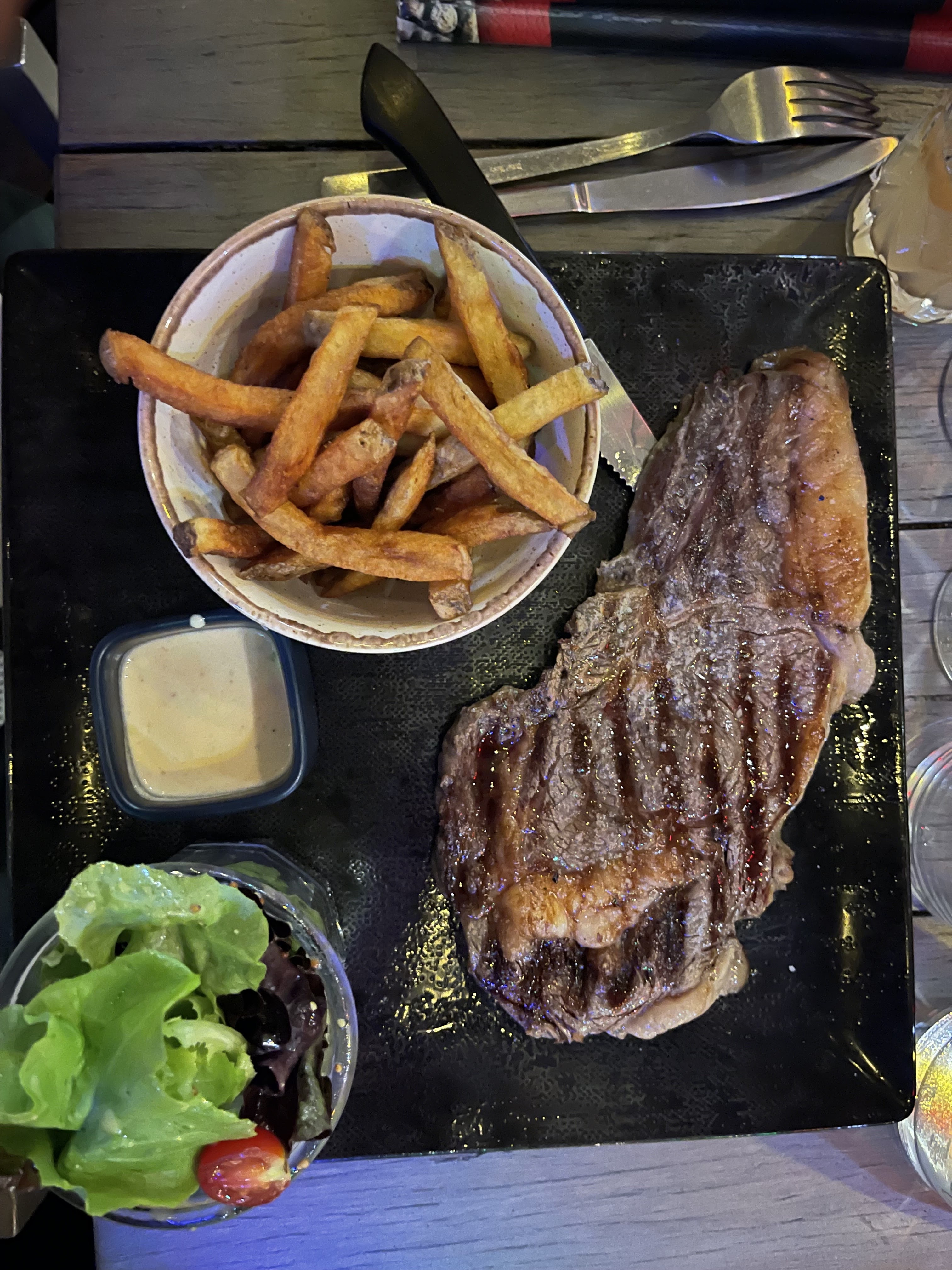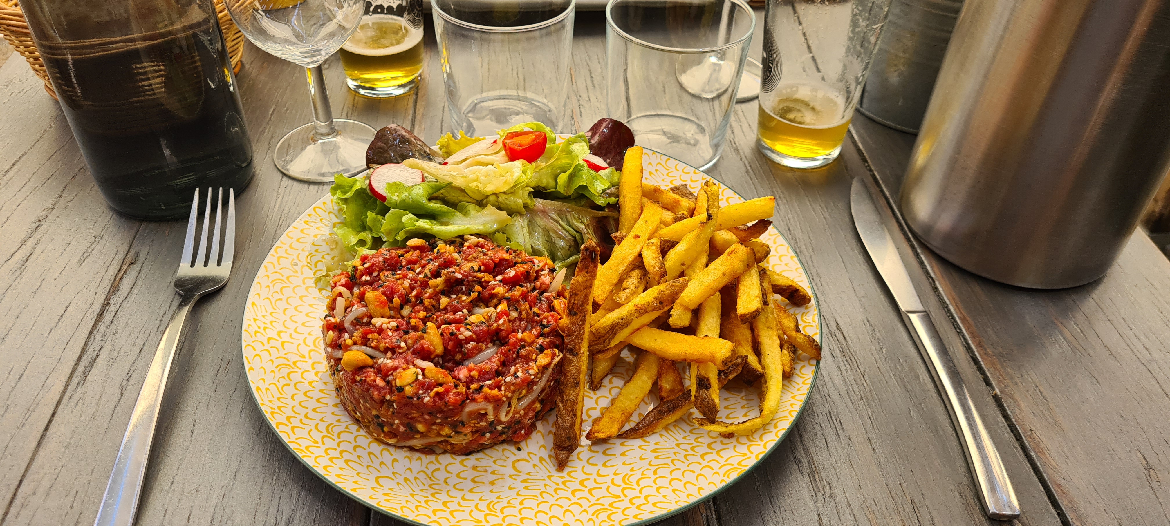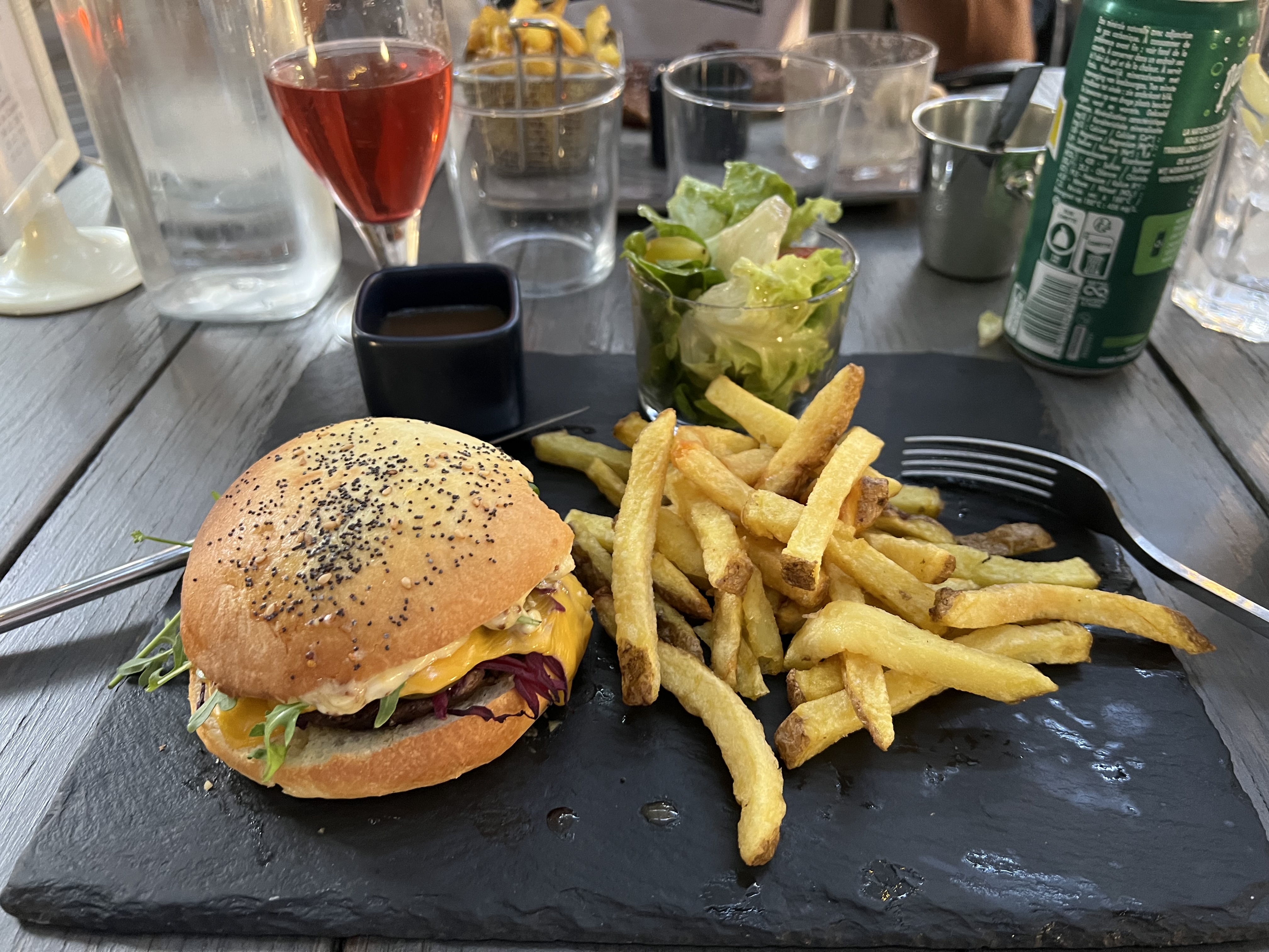 Ma femme a apprécié le tartare, les burgers étaient copieux (un peu lourds), les desserts excellents (baba au rhum, profiteroles). Le délire de l'eau maison un peu surréaliste. Soirée ok, avant de repartir de vacances.