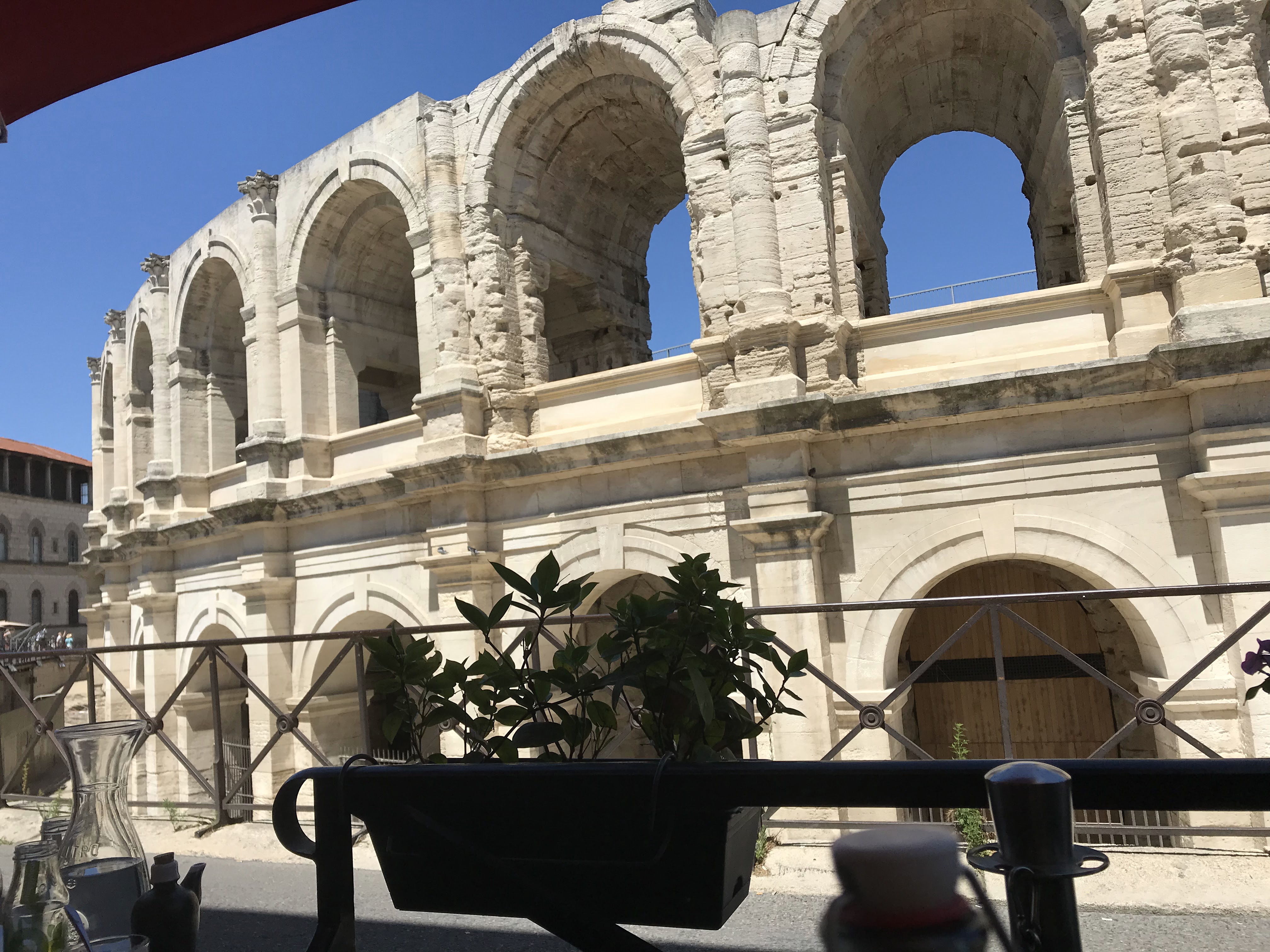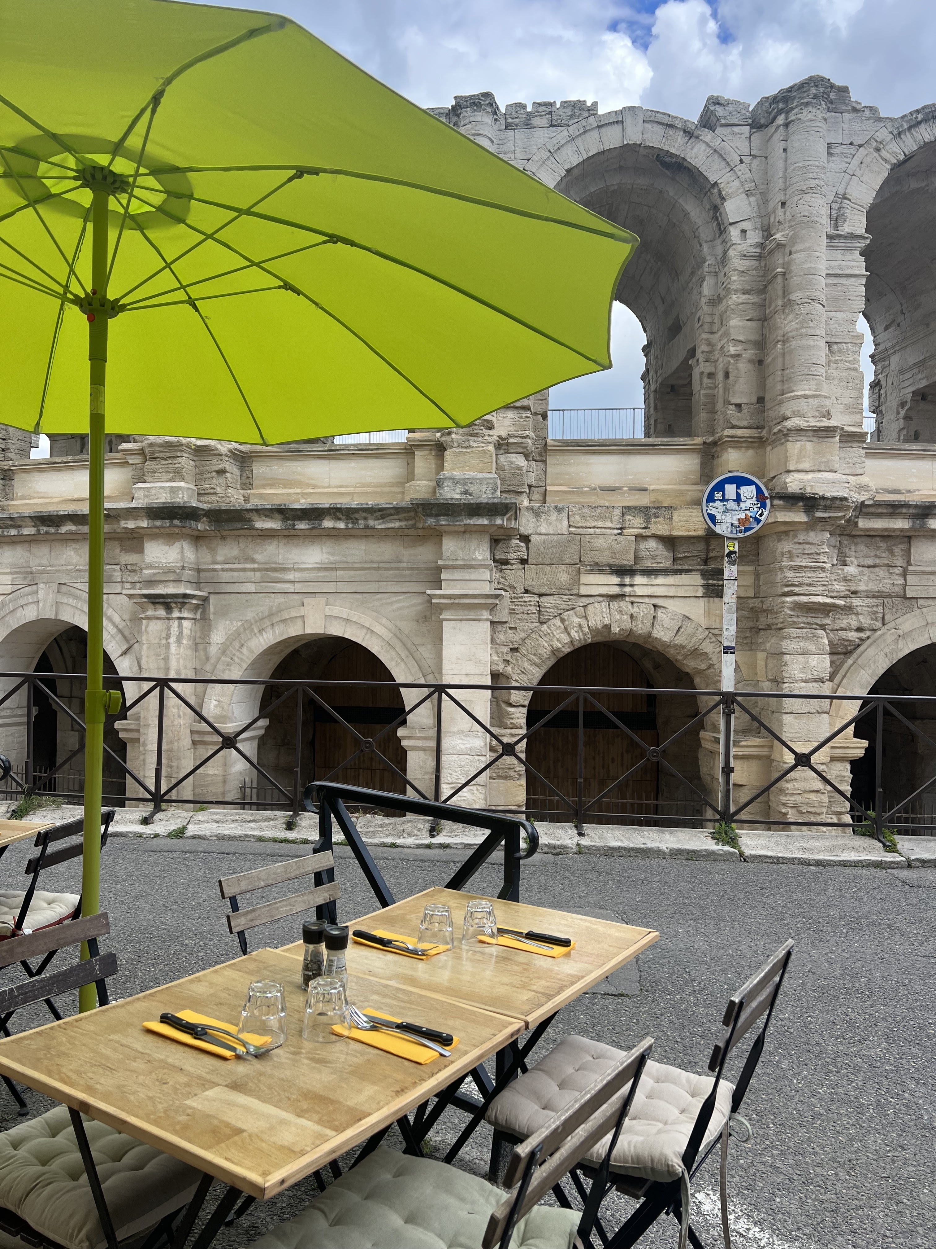 Restaurant agréable avec vue sur les arènes d'Arles. Personnel sympathique et sociable.