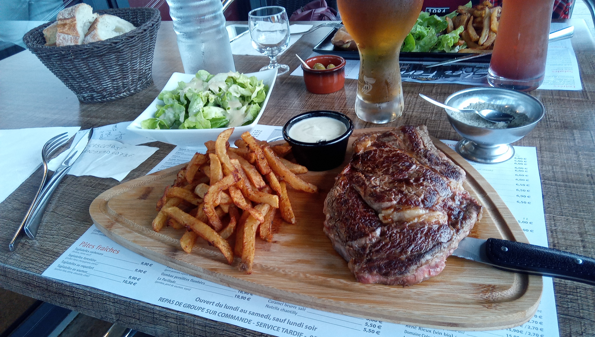 Bonne accueil A l'écoute (Merci pour l'aspirine 😜) Tartare excellent Viande très bonne avec cuisson maitrisée Prix convenable Je recommande