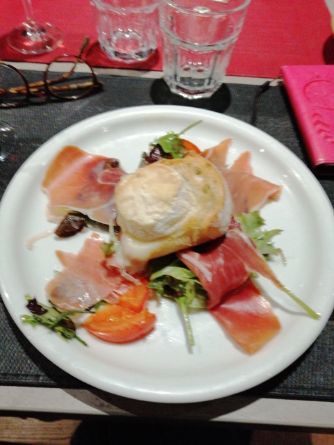 Menu du jour, toast de chèvre : un bout de pain avec un bout de chèvre, de la salade avec quelques lardons... Bof... Une côte de porc sèche avec uniquement le goût des herbes de Provence. Une assiette de fromage à 10€ et un vin à l'ardoise plus disponible... C'est pourtant pas dur d'enlever un vin affiché sur une ardoise, on ne parle pas de changer la carte...