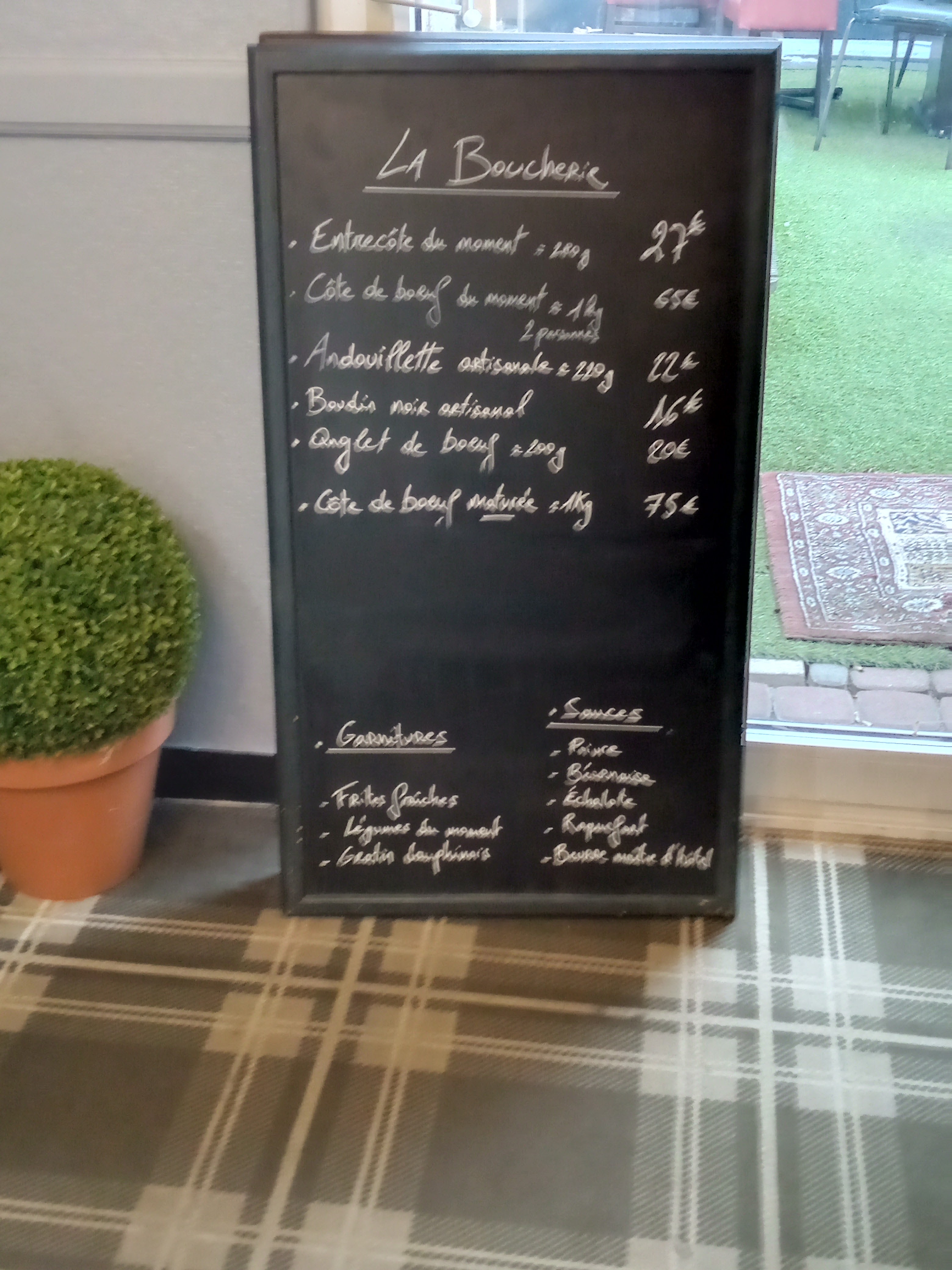 Un peu chère pour la prestation. Mal assis (siège de salon de jardin) couverts ikea ,tomates buratta ( plutôt mozzarella)10 € mais le reste est très bon cuisson nickel et viande extra .