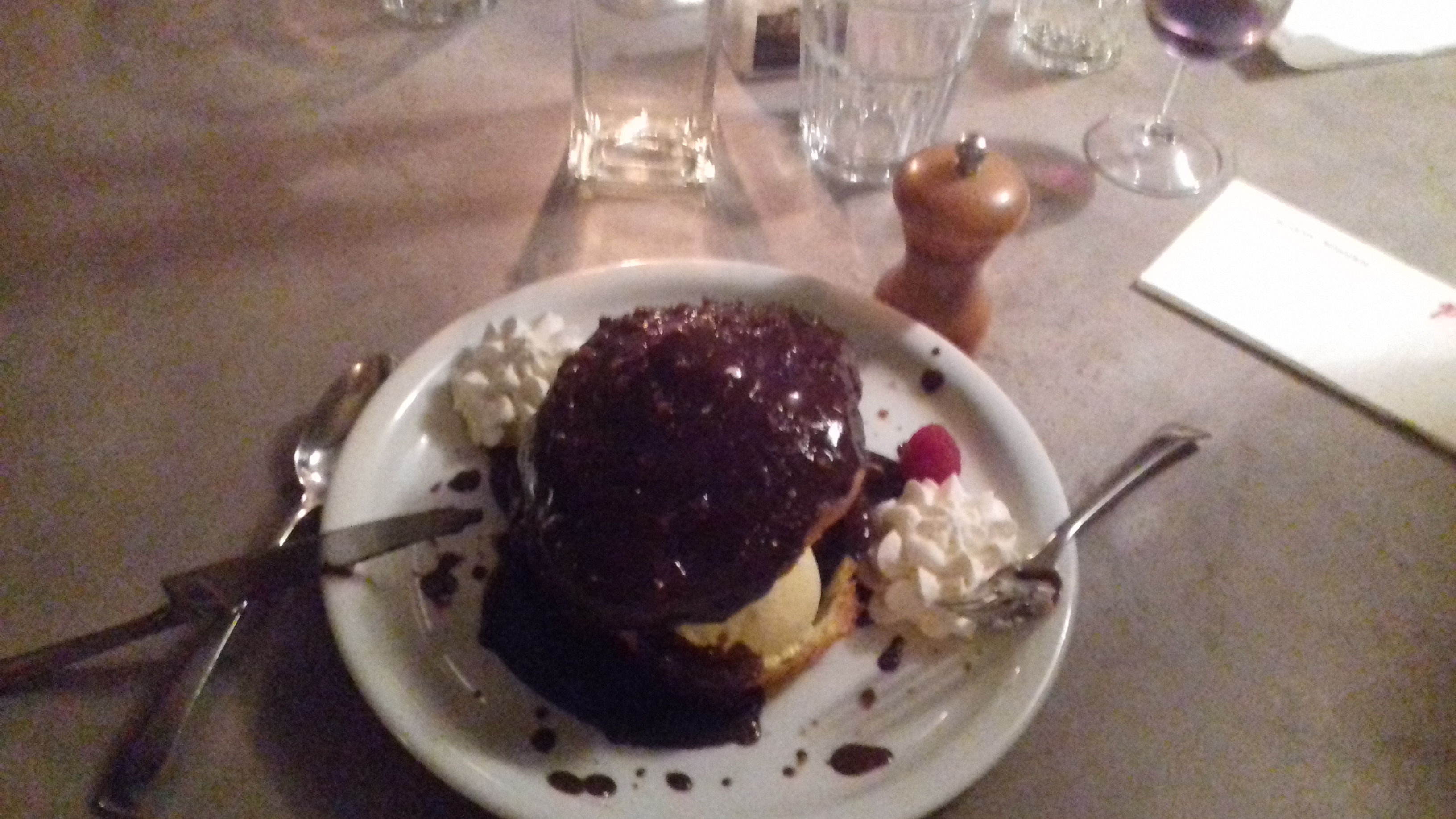 Service lent. Pourtant personne dans le restaurant. Sauce chocolat des profiteroles à éviter. Dommage. Pas de geste commercial..... Un peut cher à mon goût.