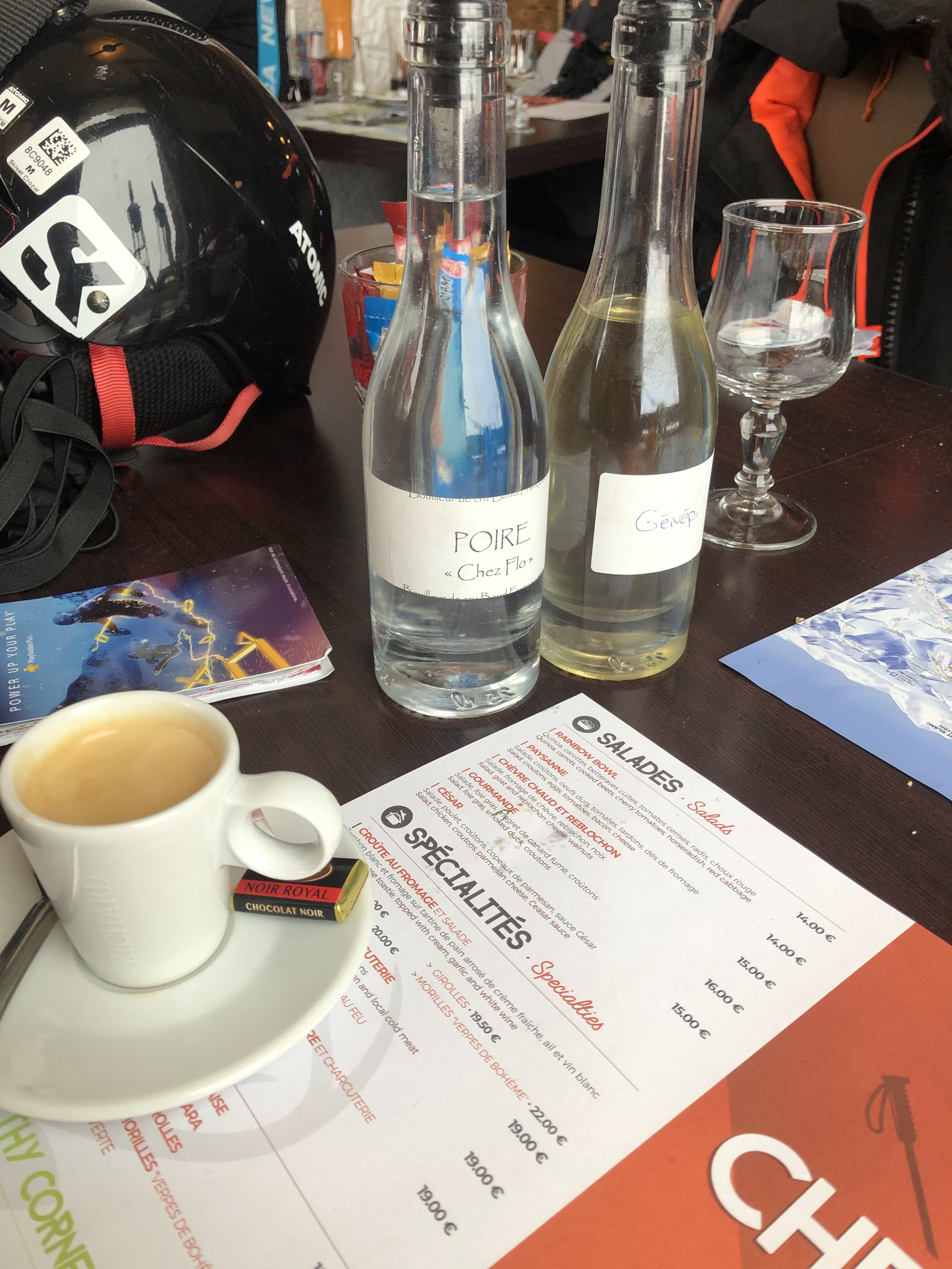 Toute l’après midi de gâchée. Tout ça car nous sommes bloqués à table à attendre des Burgers. Un restaurant au bord des pistes, qui au final t’empêches de skier.