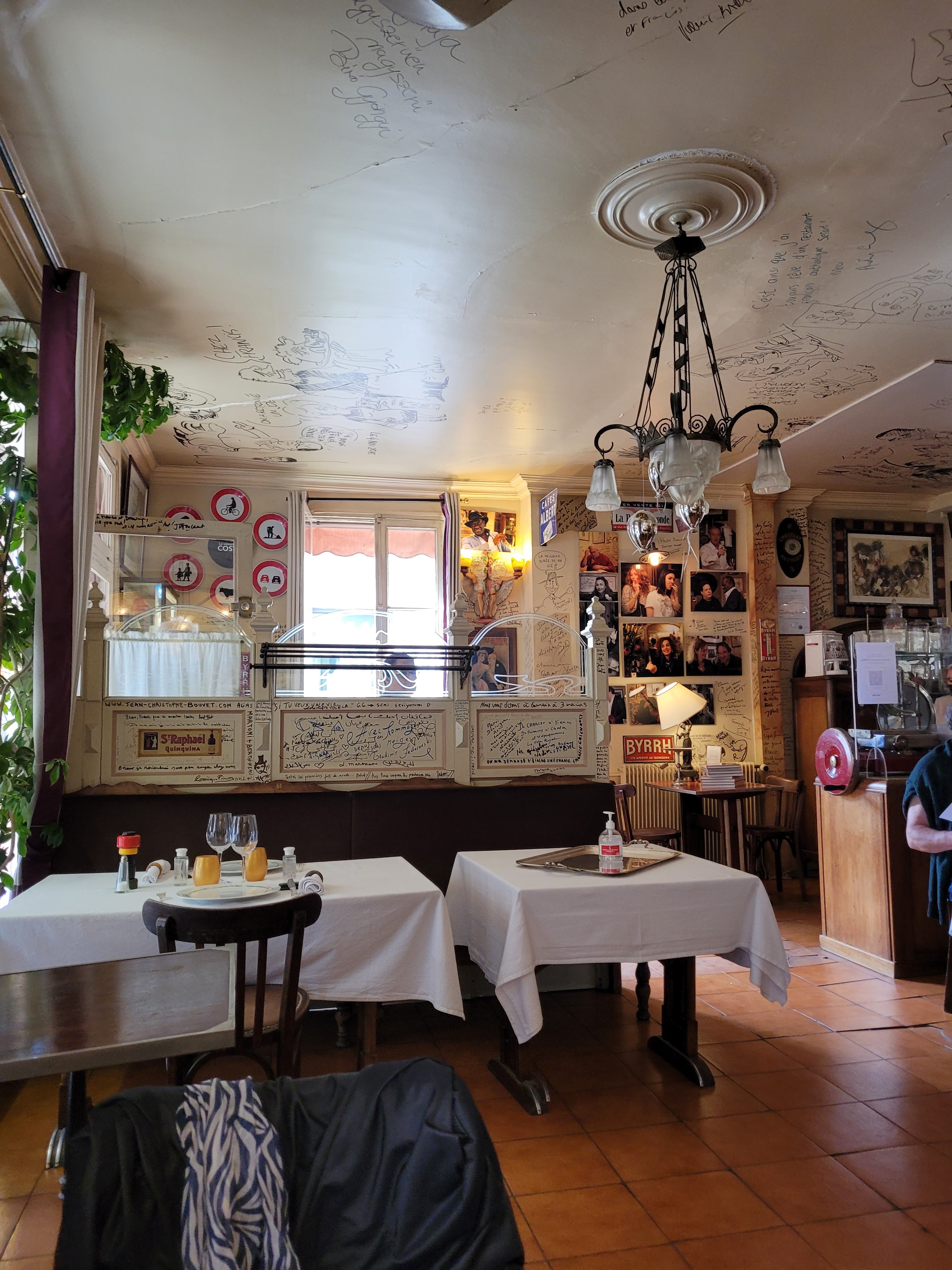 Expérience de restaurant totalement française absolument inestimable. La nourriture était excellente. L'atmosphère du début du siècle 19e/20e s'est construite au fil des années et les clients ont laissé des citations et des caricatures sur les murs. sur les murs. Un déjeuner parfait.