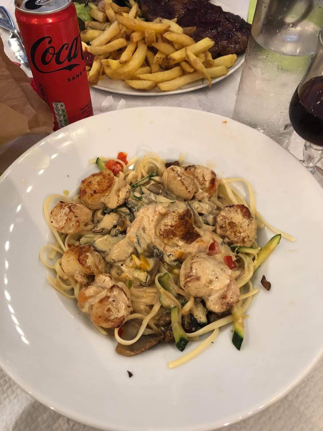 De très bon plats faits maison et copieux!! Linguines au saint jacques fraiches et aux légumes et une entrecôte de 380g minimum (ce n'est pas moi qui le dit c'est sur la carte, et mon mari confirme 😉) frites salade et le tout pour un prix plus que raisonnable !! Un service chaleureux et en prime le patron qui passe en fin de service Au top 😁👍🏻 Pensez à réserver en revanche