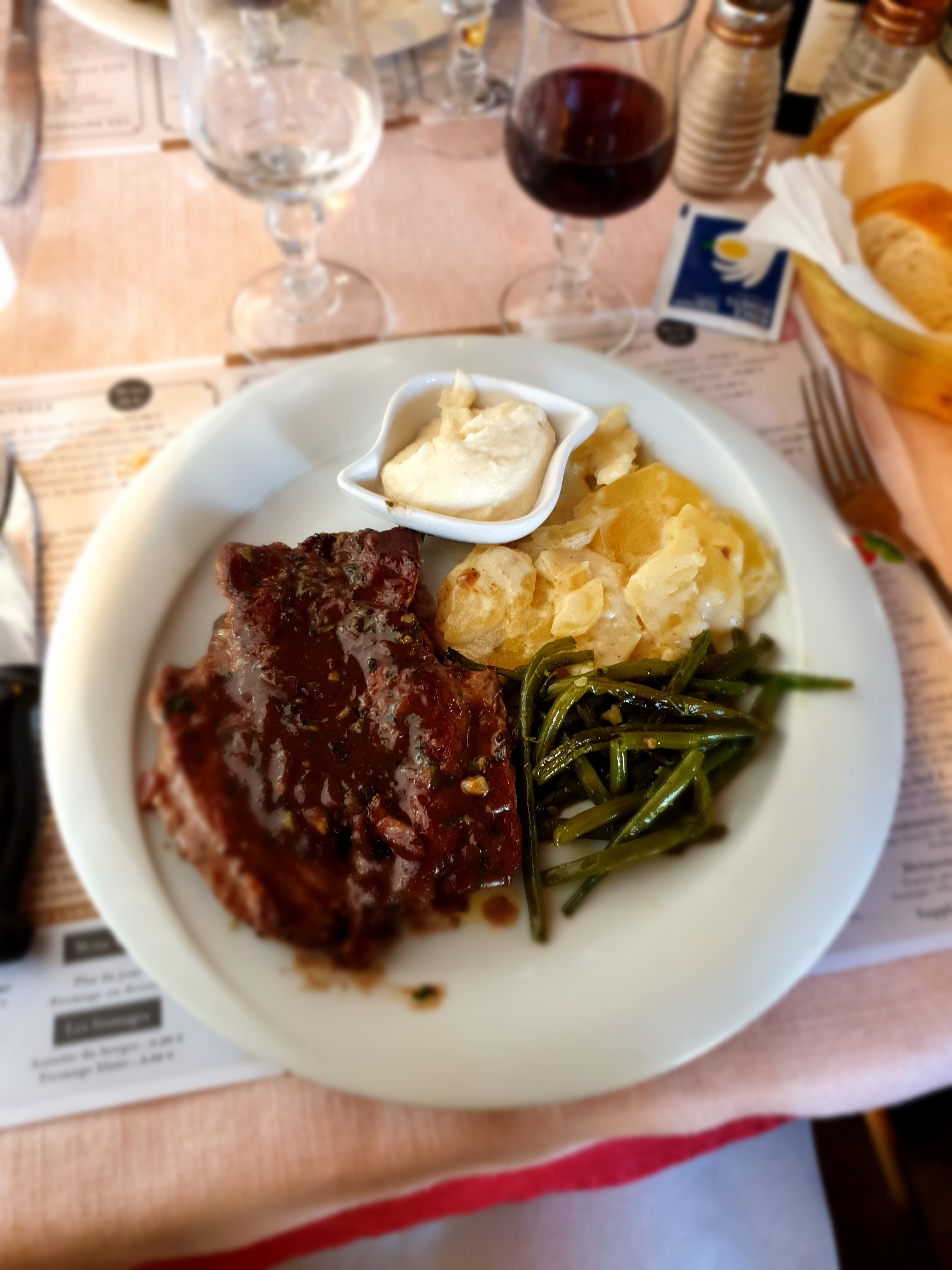 Restau correct : rien d'extraordinaire mais bon. Salle bruyante. Ce que je n'ai pas aimé : ce qui figure dans la carte n'est pas toujours disponible en réalité : pas de Gigondas au verre et j'ai dû oublier la Charlotte aux poires.