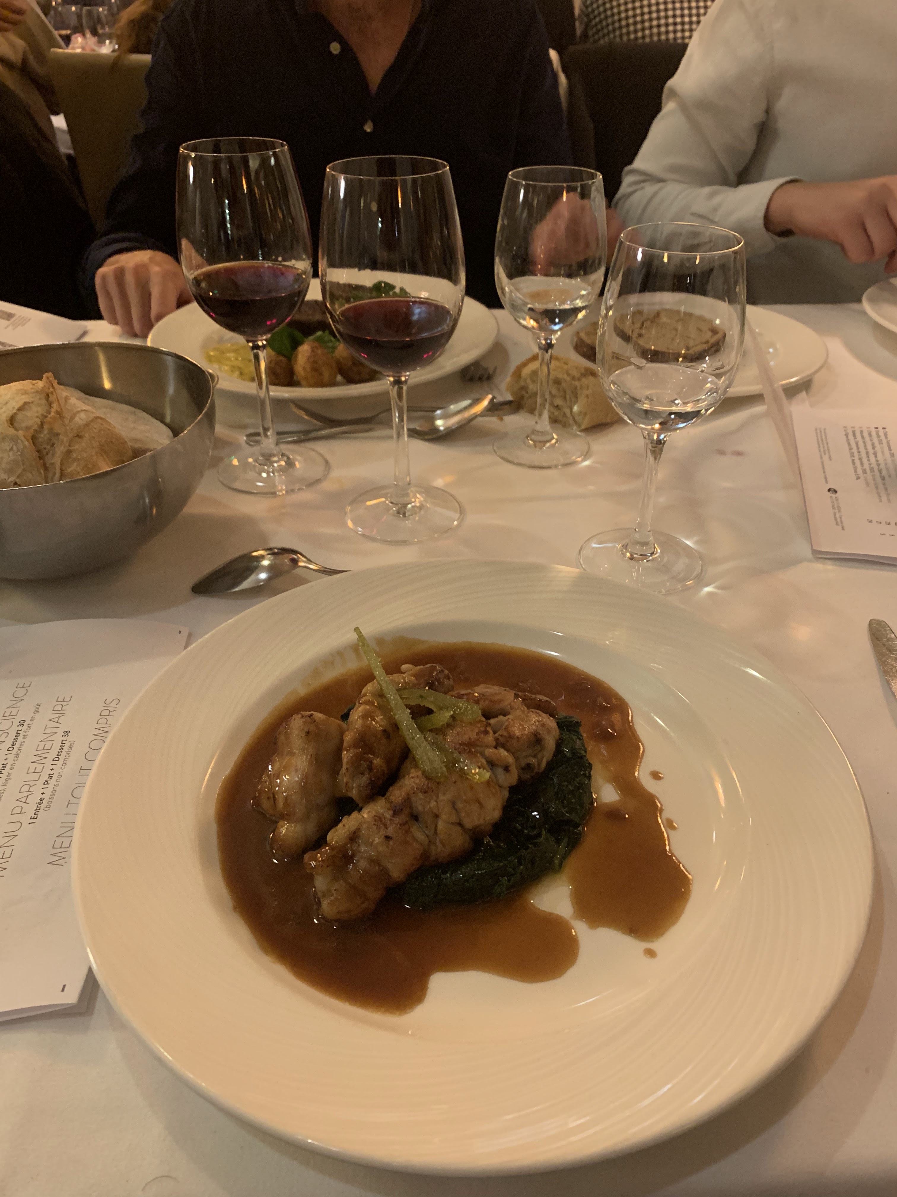 Notre groupe a été invité par un député. Nous avons très bien déjeuner et tout le menu était très bon avec un service quasi parfait. J'ai également pu remplacer mon dessert par du fromage. Pour ma part, le seul petit bémol, était le café servi tiède. Sinon très heureuse d'y avoir été invitée.