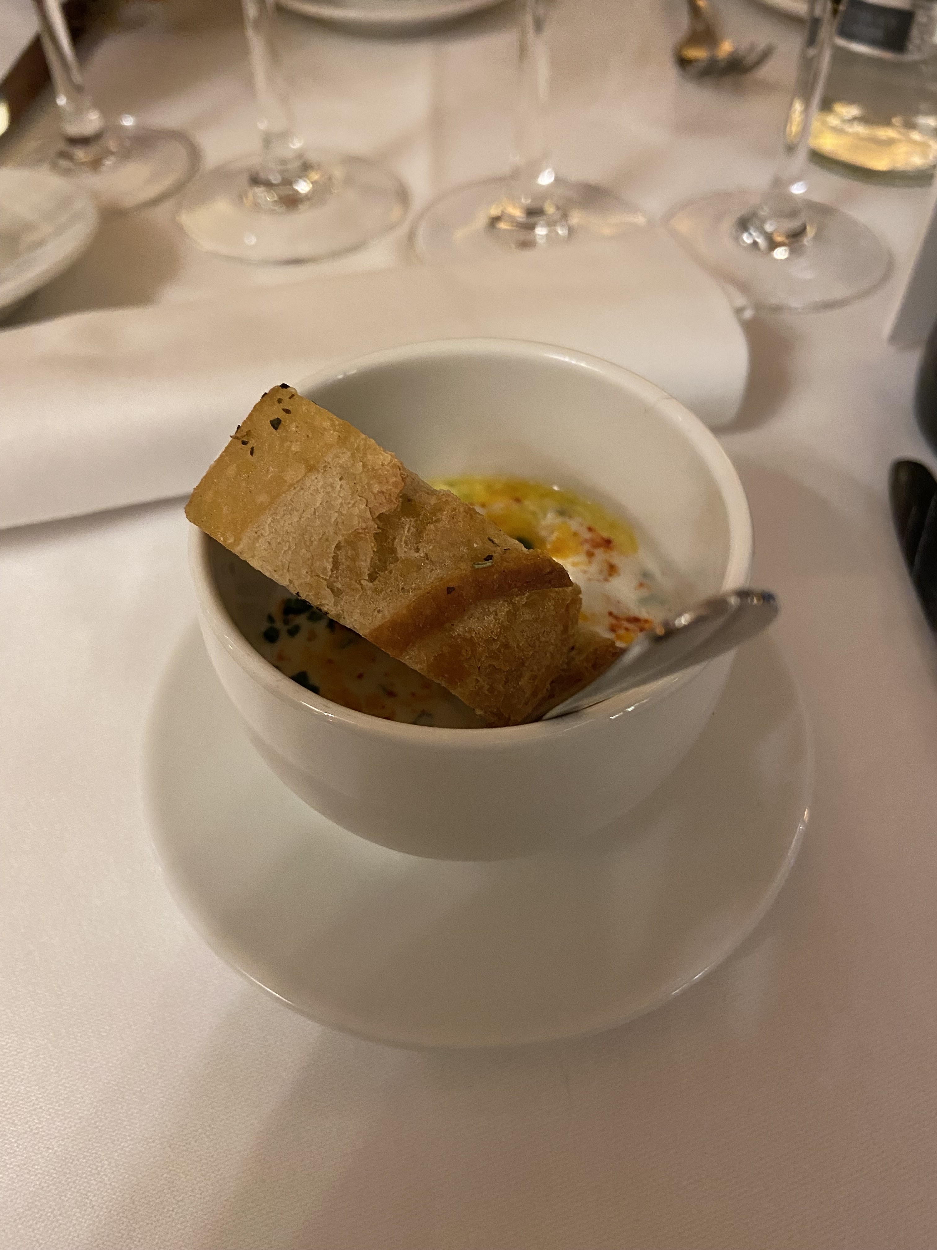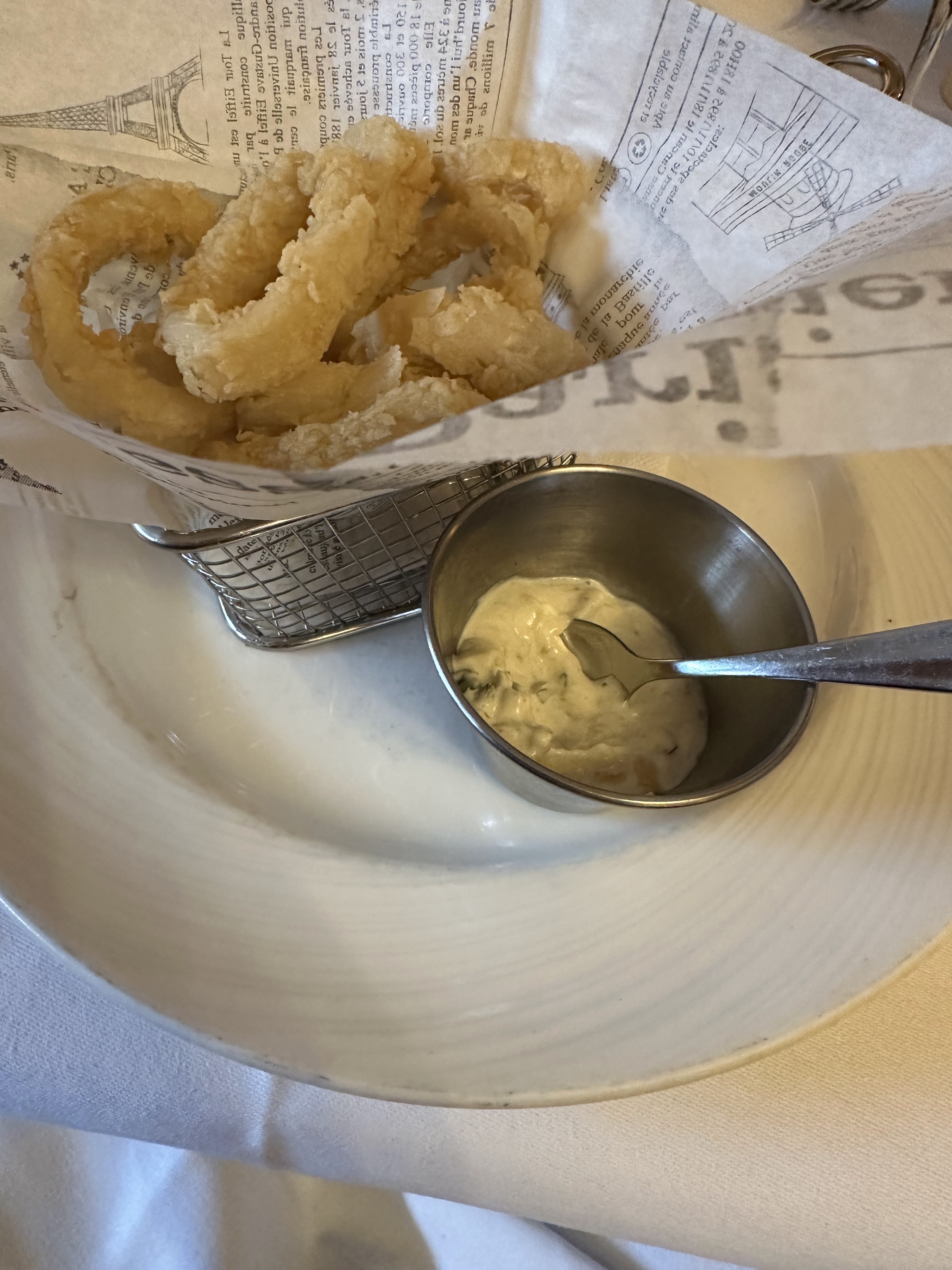 Nous avons séjourné au Paris Marriott Opera Ambassador Hotel, les concierges Dylan nous ont recommandé Chez Françoise. Dylan a fait nos réservations pour le dîner et a demandé la meilleure table avec vue sur la Tour Eiffel. Notre table avait vue directe sur la Tour Eiffel ! Notre serveur Mehdi était génial! Merci pour cette merveilleuse expérience culinaire Mehdi !! Le pain français est tellement bon ! J'ai adoré ma soupe à l'oignon française ! Nous avons apprécié nos dîners : Saumon vapeur et sauté de gamba La crème brûlée était la friandise parfaite. Après le dîner, profitez de la magnifique Tour Eiffel et de la Seine. Je le recommande vivement pour une expérience culinaire décontractée!