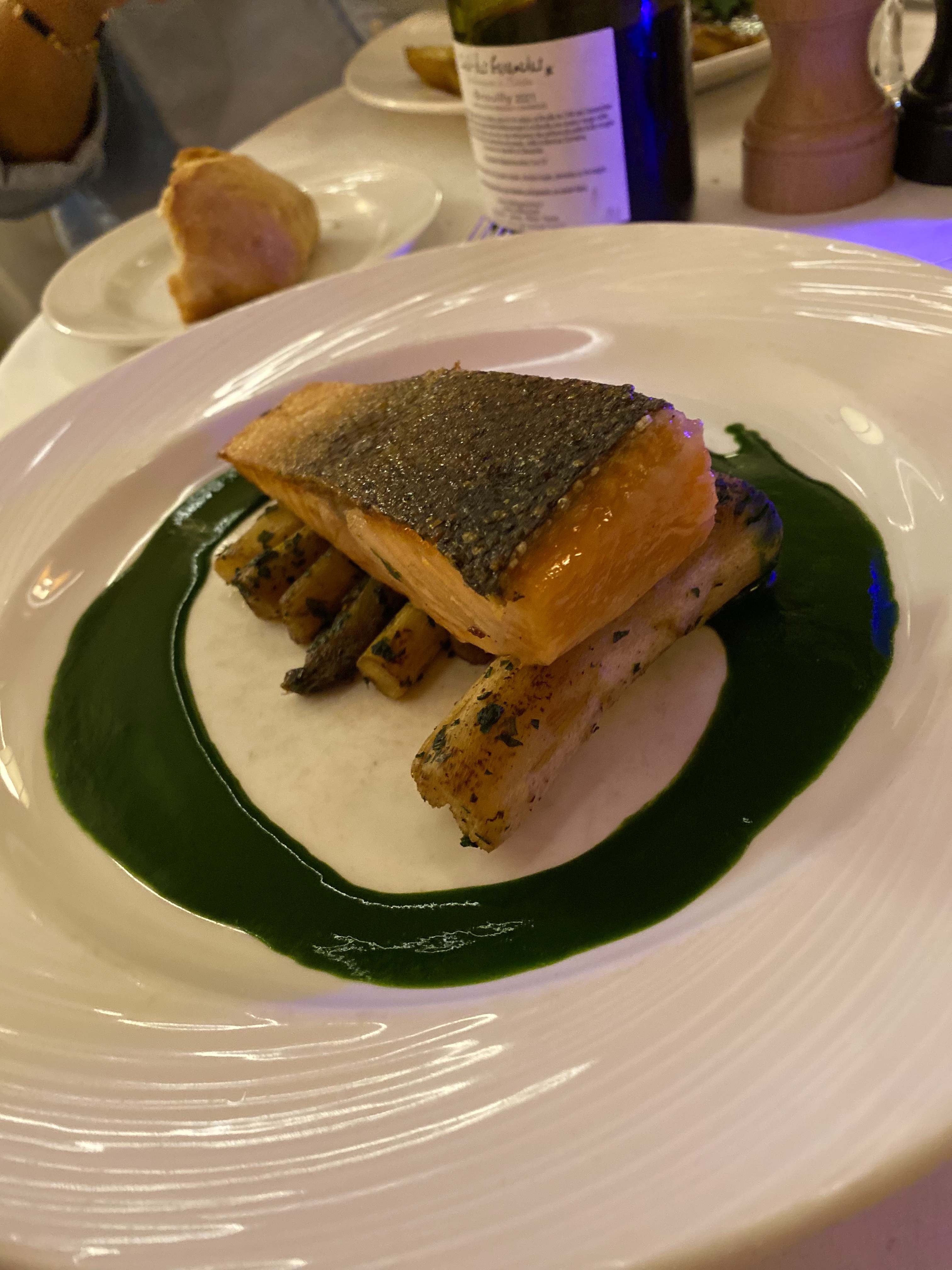 La nourriture était délicieuse, avec des assiettes copieuses et des viandes/poissons vraiment bien cuits et assaisonnés. Le dessert était parfait aussi. Cependant nous nous sommes sentis un peu déçus par le service et notamment par l'accueil pas si chaleureux… nous avions reçu un de ces coffrets cadeaux vous offrant un repas gratuit sur place et avons été traités avec dédain à la réception et fait attendre longtemps du temps pendant que d'autres étaient assis