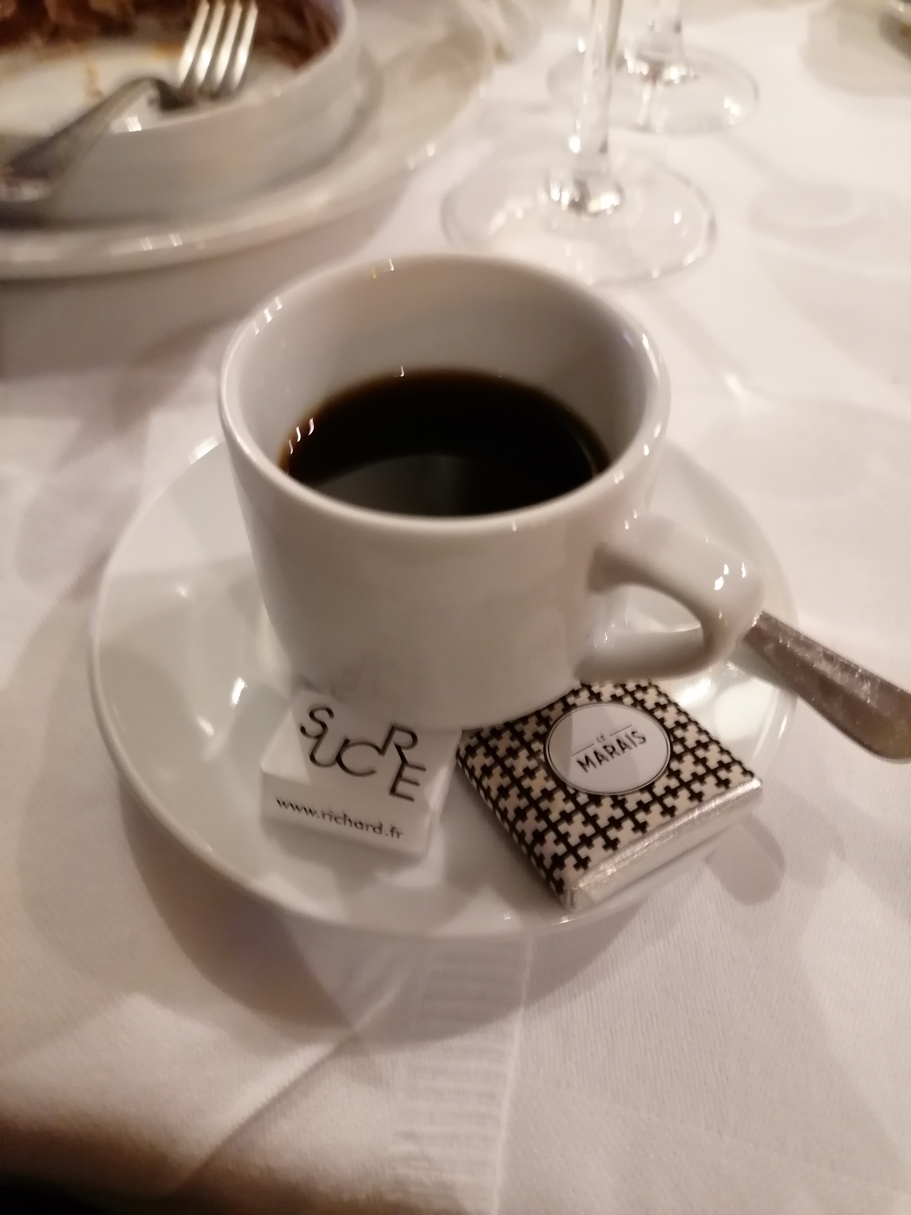 Le lieu se trouve dans un endroit un peu caché et à l’abri du bruit parisien. Un joli cadre avec de la musique douce. Les Plats étaient copieux, et le personnel était aux petits soins. Nous avons pris de la friture d’encornets et du foie gras en entrée. Du faux filet de bœuf et du magret de canard en plats. Et en dessert des crêpes suzettes, c’était assez acidulé dû au citron et à l’orange mais mangeable. Nous avons apprécié ce repas qui était pour nos 11 ans de relation