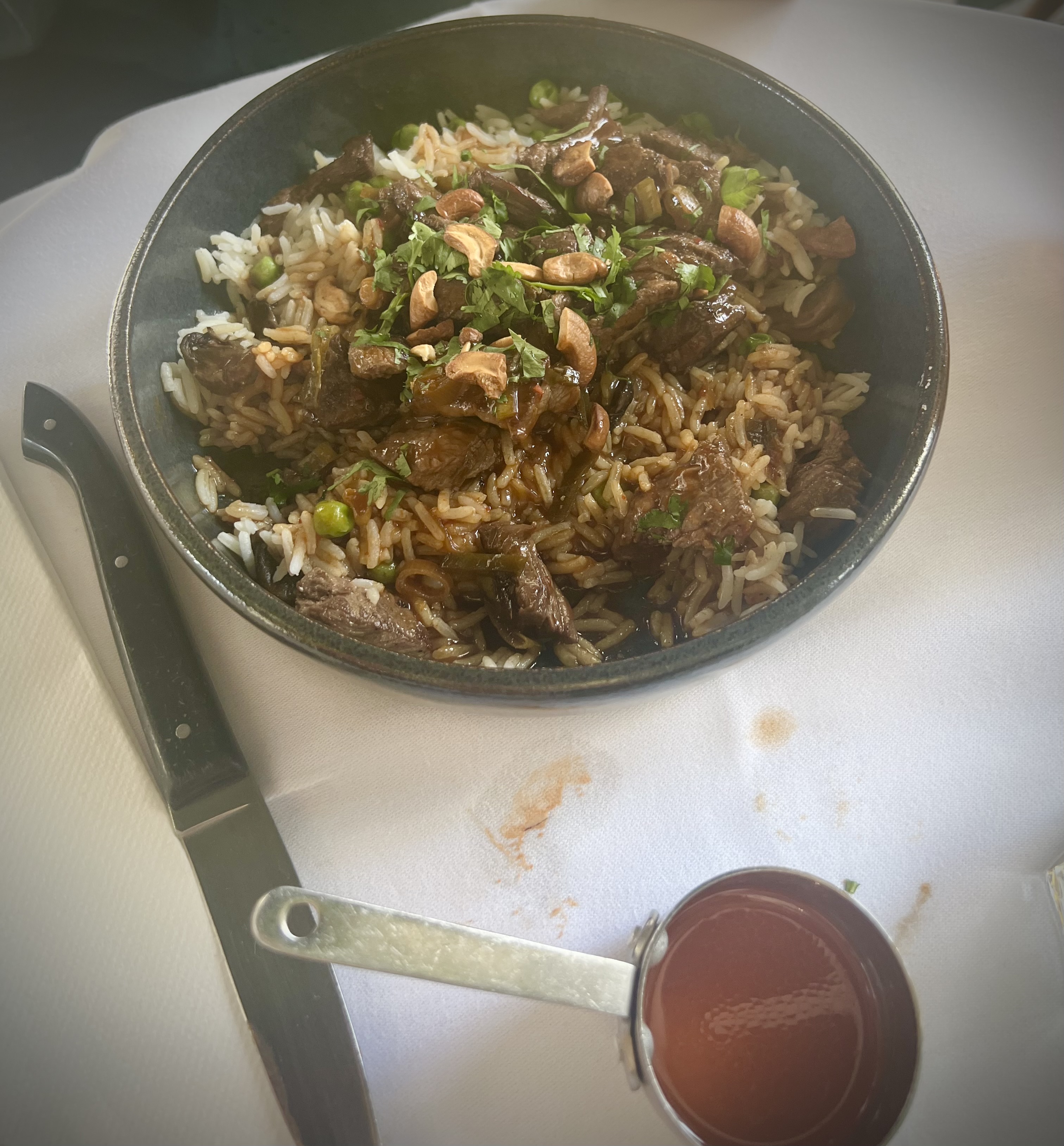 Restaurant situé dans une rue passante, assez bruyante. Pour la cuisine, j'ai pris le plat le tigre qui pleure plutôt bon , bien assaisonné mais les proportions étaient un peu en dessous de mes attentes. Le plat manque de viande mais beaucoup de riz par contre, j'ai pu consommer se plat en Asie lors d'un voyage et j'étais plutôt déçu. Le service était très agréable, le prix est correct. Petit+ pour les plats végétarien En résumé, c'était correct mais je reste un peu déçu du plat .