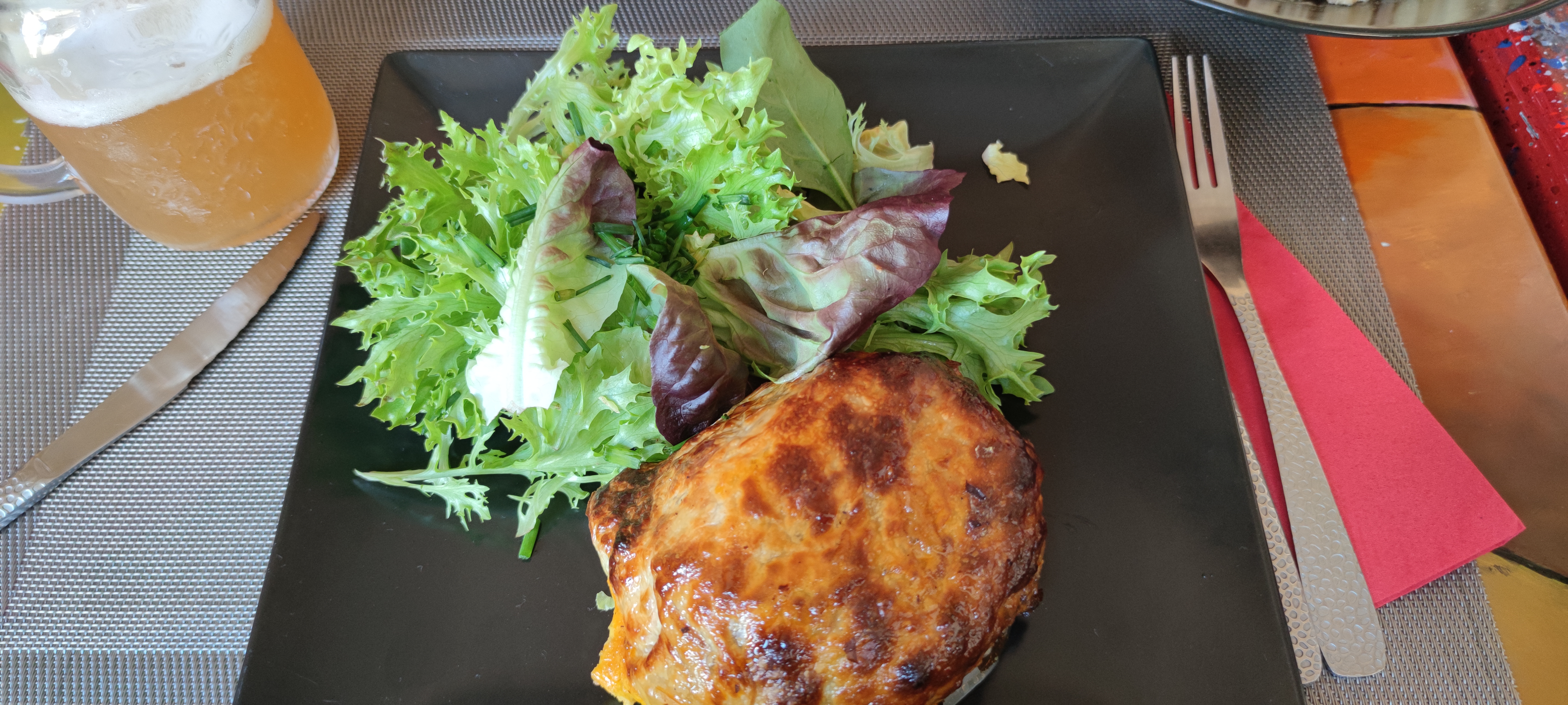 Nous avons déjeuné dans cette belle ville ! Terrasse ombragée devant le restaurant. Nous avons eu différentes salades (chèvre et saumon fumé, le risotto aux crevettes et la quiche. Tout était délicieux et les volumes étaient bons. Les enfants ont apprécié leur croque-monsieur.