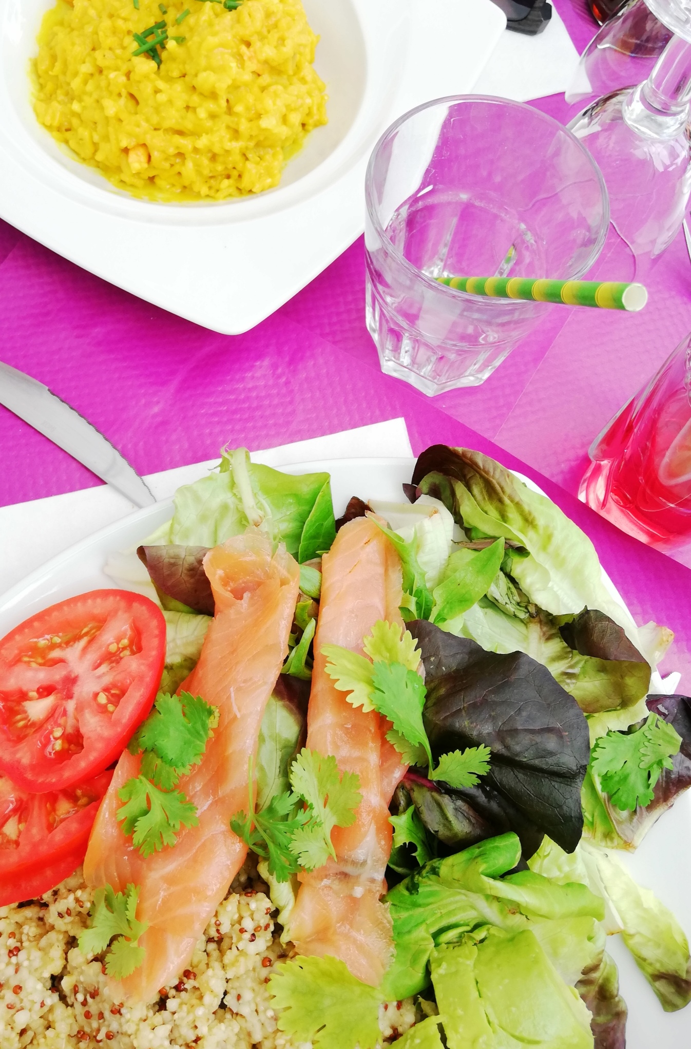 Bonjour, j'ai pris salade bawl au saumon, un délice et très bien servie. Service très agréable.