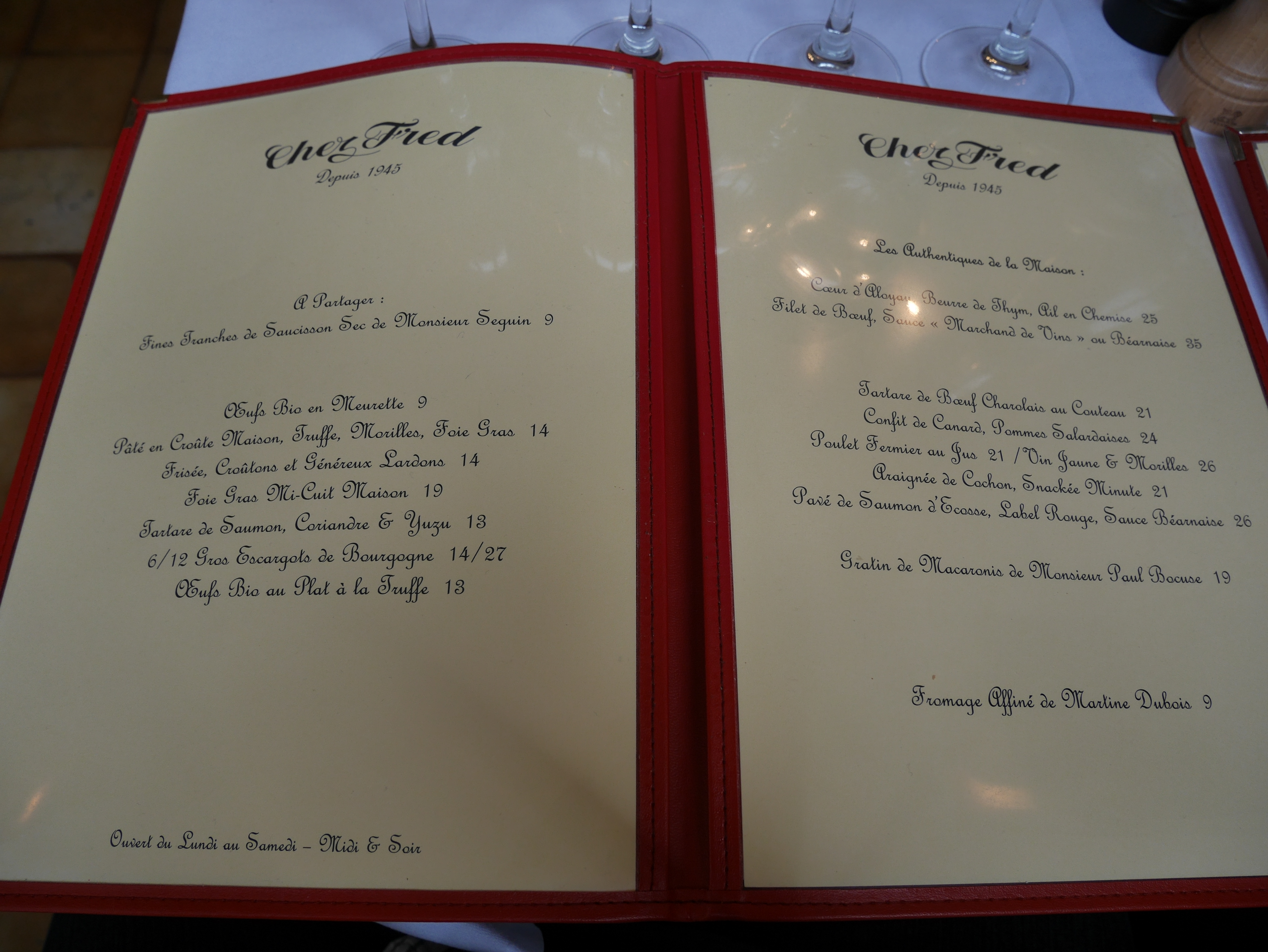 On a choisi chez Fred pour notre dernier déjeuner avant le deuxième confinement... et on a bien fait ! Cuisine traditionnelle, comme dans un bouchon ++, C’est vrai qu’il y a du beurre et de l‘huile et de la crème et du pain et du vin... mais j’ai envie de dire: c’est pour ça qu’on vient, non ? On regrettera qu’il n’y ait pas un petit menu du jour un peu plus accessible ! Mais c’était extra. À bientôt ! Merci !