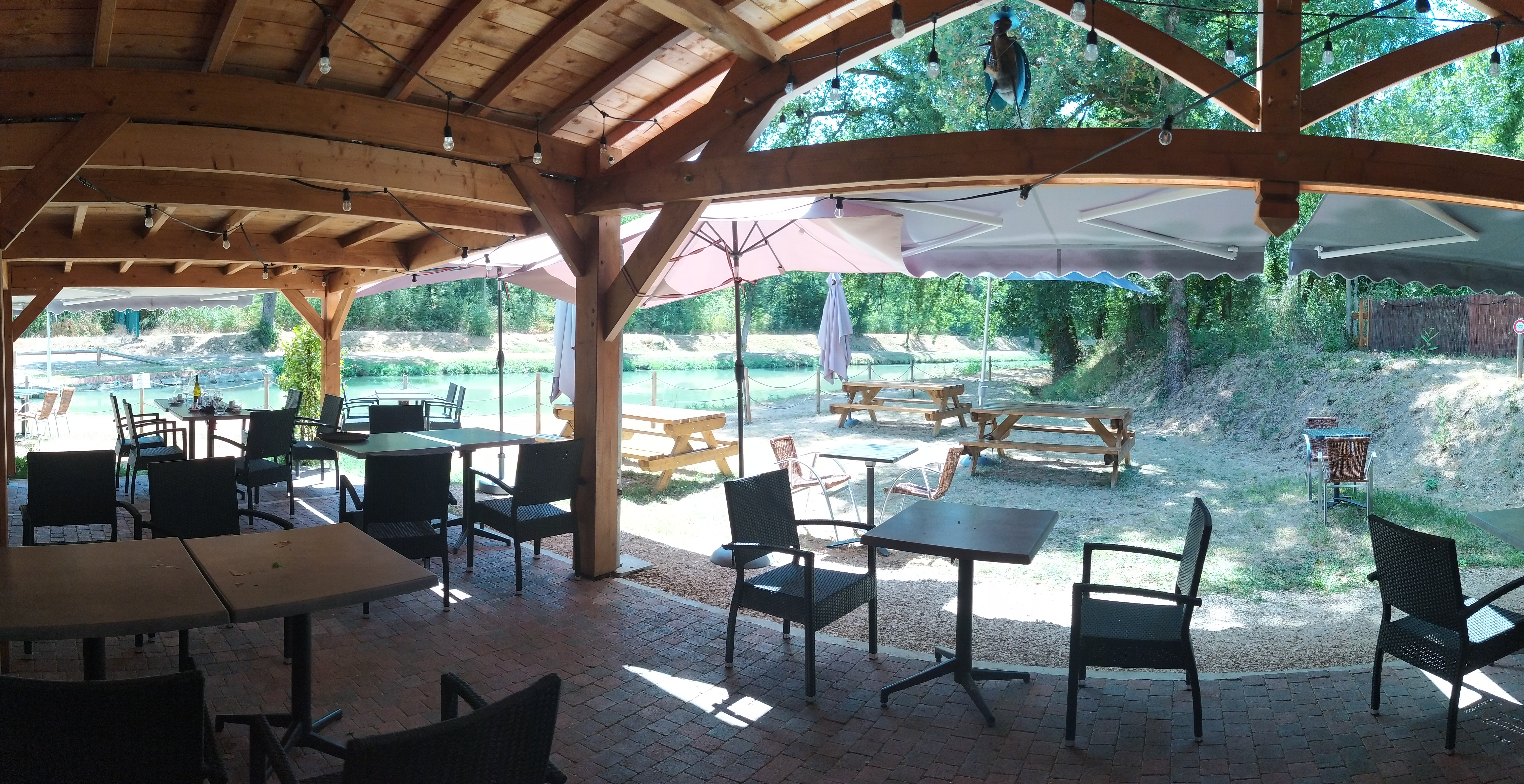 Nous y avons mangé hier le 06 juillet 2018 à midi. Le lieu et le cadre au bord du canal est très agréable ainsi que le service. c'était très bon et frais. À recommander vous pouvez y aller tranquille. Merci à eux.