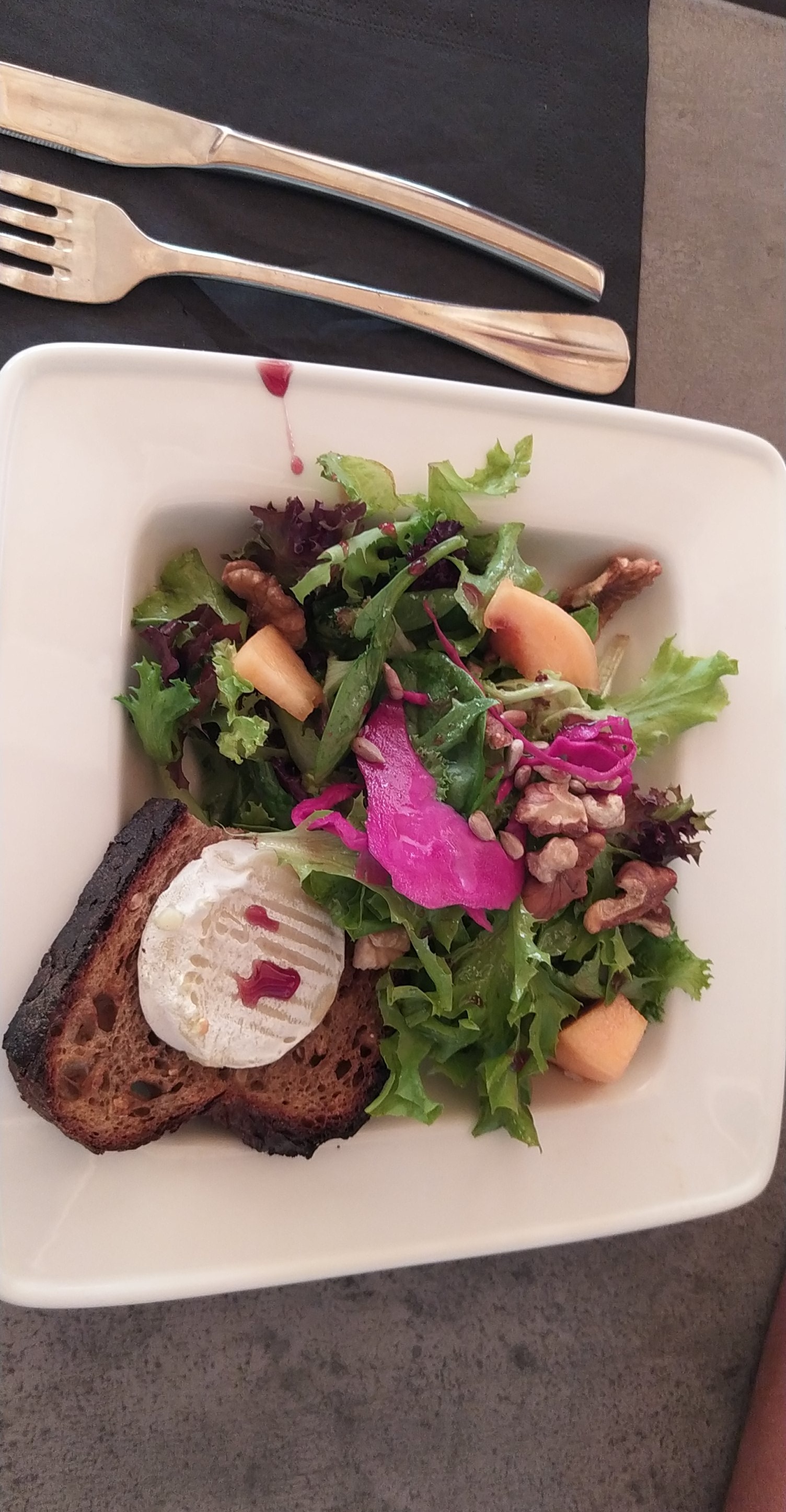 Bsr, pour ma part dîner à la carte. Thon et purée patates douces : bien. Panacota excellente. Bémol sur le gravlax de saumon. Je n'ai pas du tout reconnu la recette du gravlax, aneth, baie rouge, sucre et autres aromates. Super accueil et service bien.