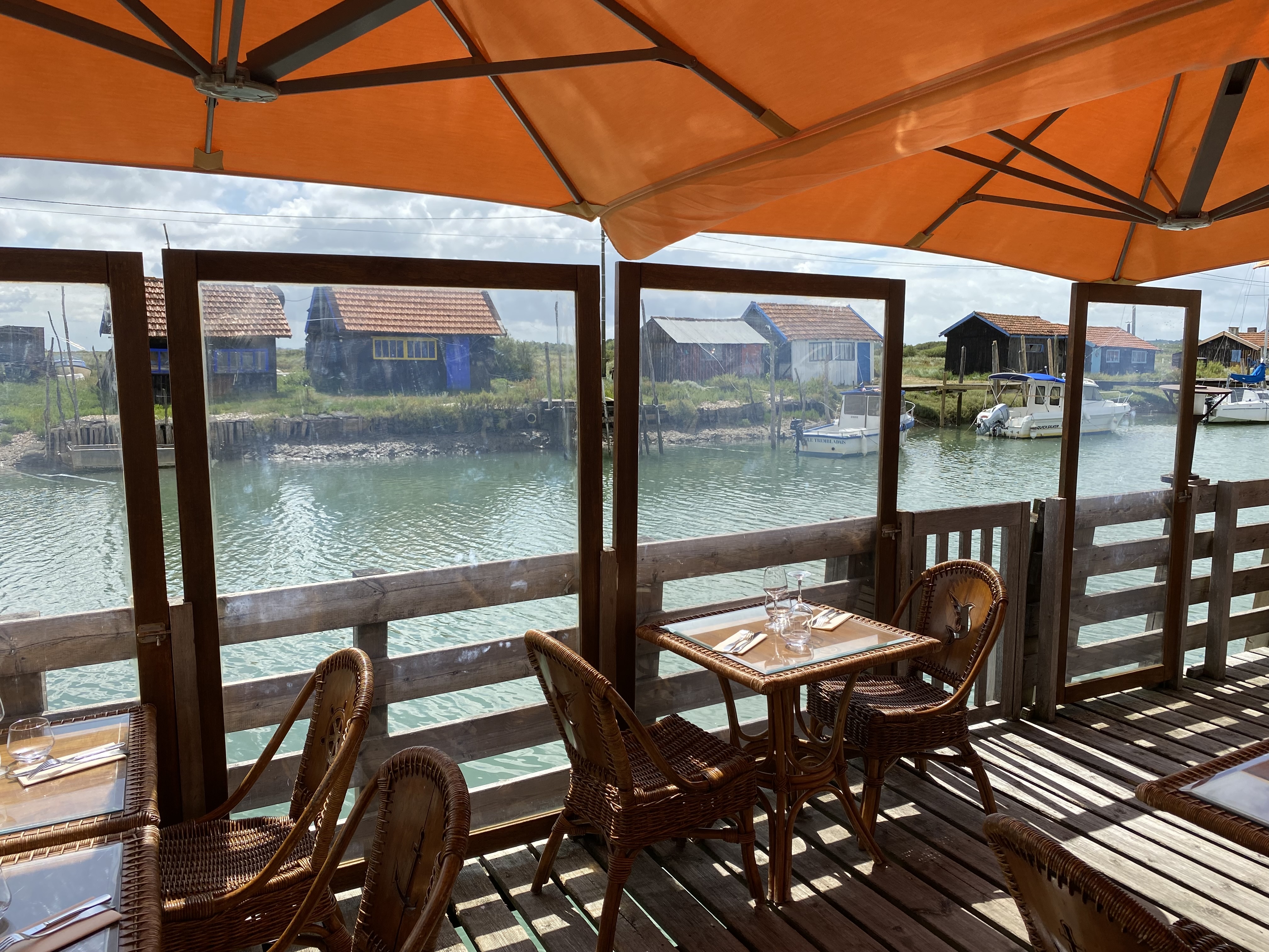 Sur la grève à La Tremblade, terrasse au dessus de la Seudre, déguster de fameux petits plats en admirant les bateaux des ostréiculteurs et plaisanciers, service impeccable, ambiance sympathique.