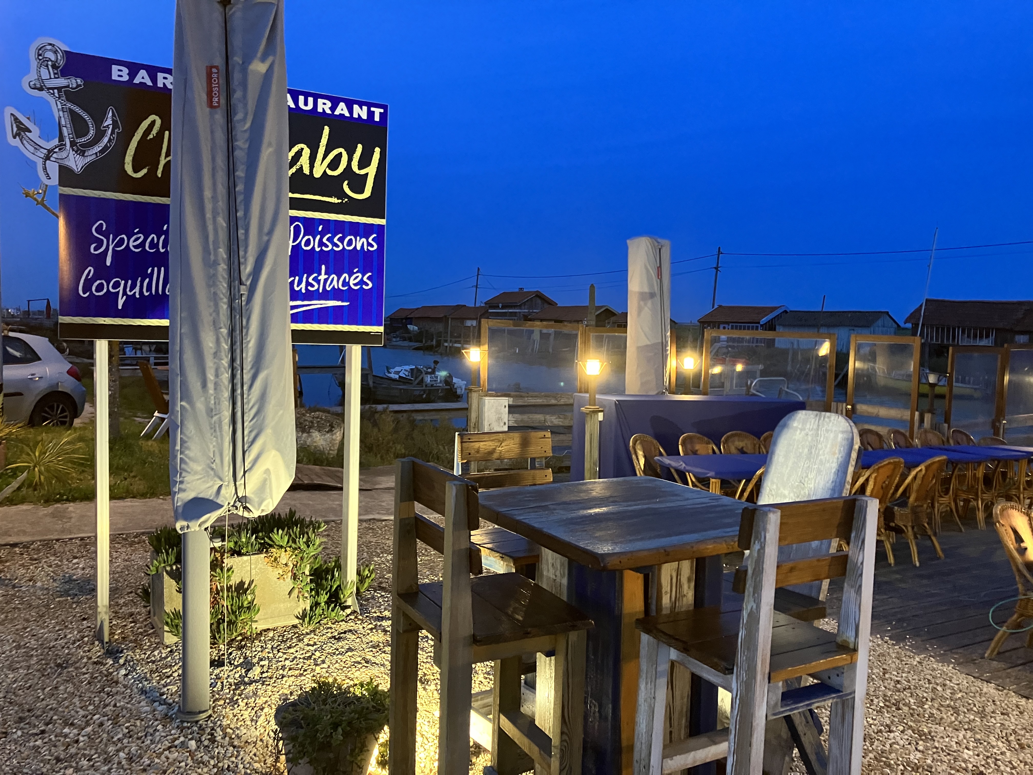 Restaurant très agréable. Il es possible de déjeuner ou dîner en terrasse en bordure des cabanes. La cuisine allie la gastronomie charentaise et celle exotique. L'apres-midi, il est possible de venir se désaltérer. Je vous recommande vivement Chez Gaby. Il est préférable de réserver pour le restaurant.