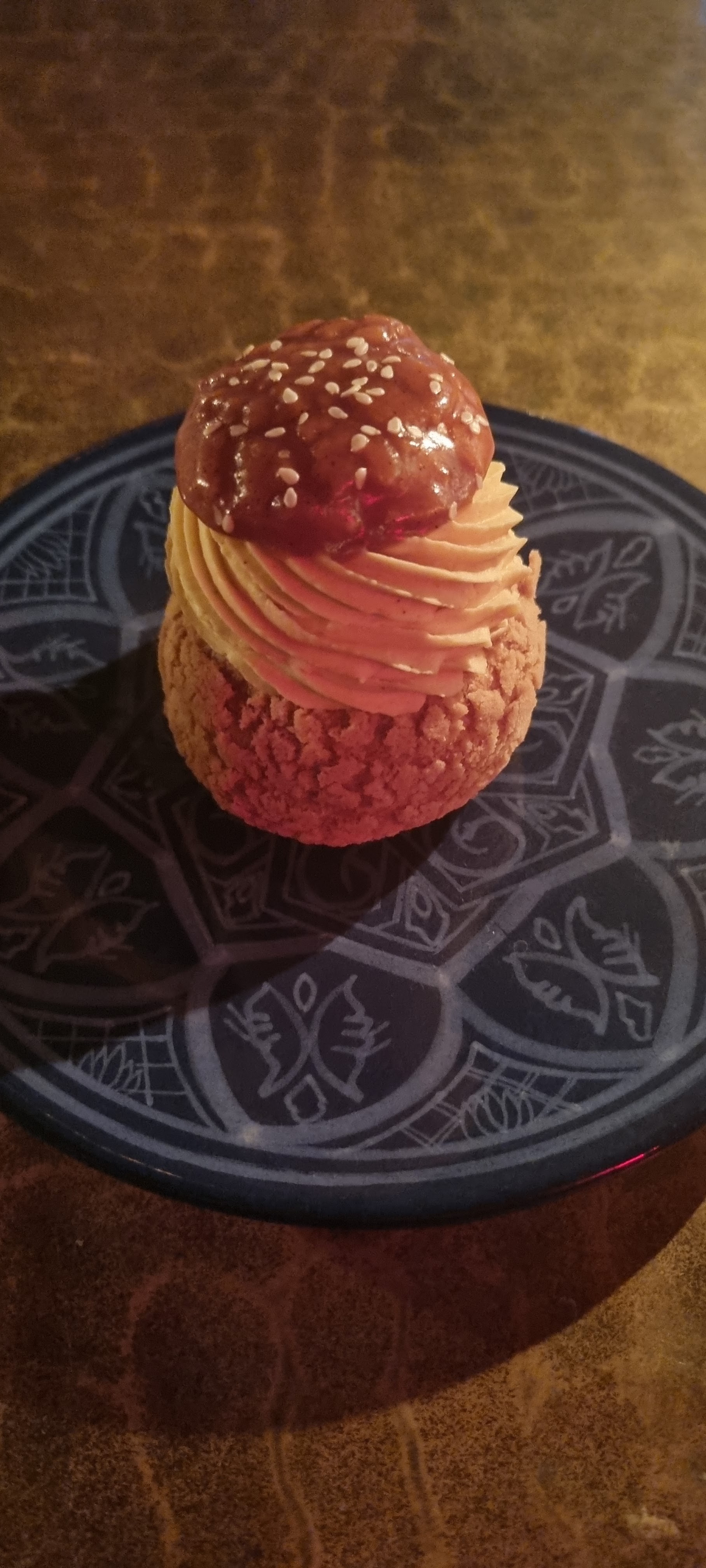 Restaurant avec une ambiance au Top pour danser l’orientale avec un accueil très appréciable, le personnel est à l’écoute et souriant, nous avions réservé pour un bride to be au service de 20h30 petit pression car nous avions 2h pour manger et partir… et on nous la dis beaucoup trop de fois c’est dommage….donc le mieux pour être tranquille c’est de réserver pour le dernier service, (au final on nous proposer de rester plus longtemps car annulation d’une table)bon en même temps pour la quantité dans nos assiettes 2 h c’est largement suffisant lol, je déplore le fait que ce restaurant au note Marocaine et orientale ne sois pas HALAL !!!! Nous n’avions pas trop de choix sur la carte du coup…. Nous avons goûter le caviar d’aubergines, les poivrons marinés, le poulpe et le thon mais nous sommes reparti le ventre vide la meilleure découverte pour moi c’est le dessert la pavlova aux agrumes, coup de cœur elle était excellente avec sa note à la fleur d’oranger un délice !!!!!, mais il en restait plus qu’une pour 11 personnes….