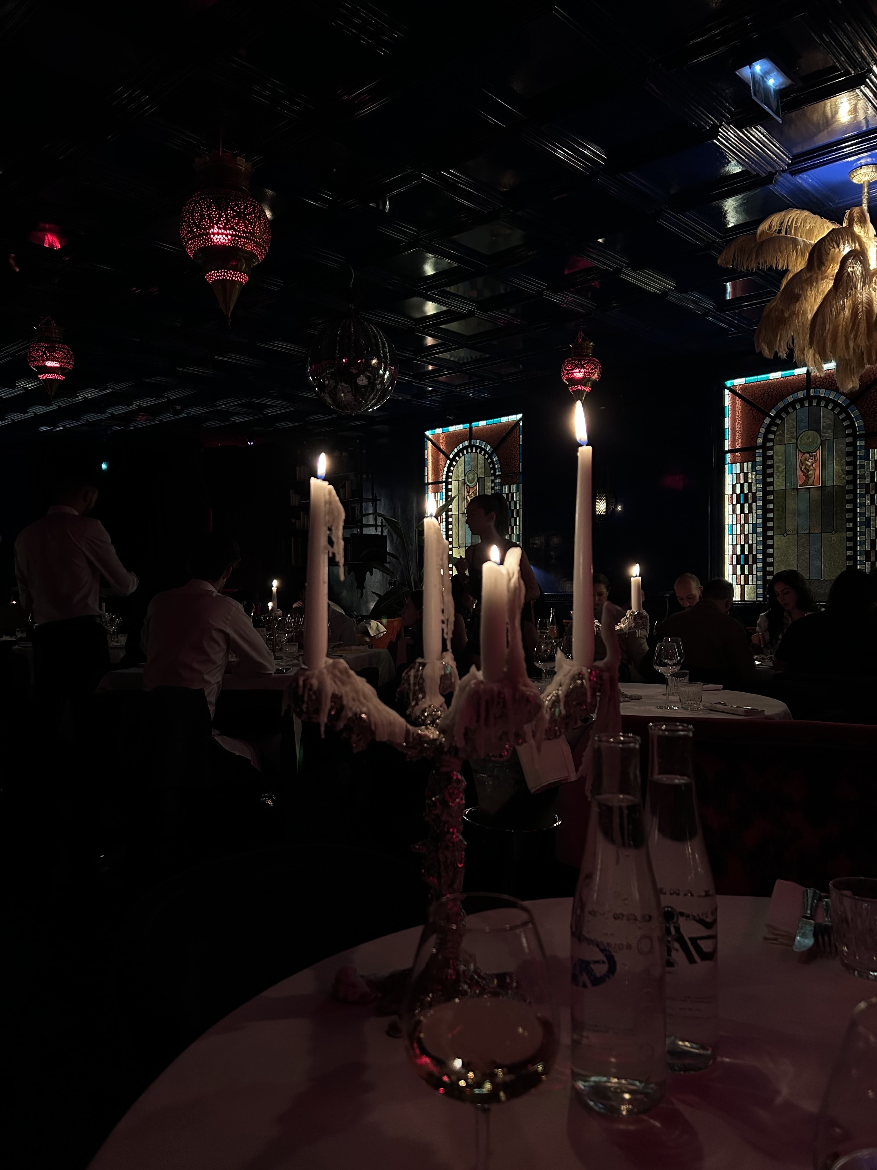 Je déconseille ce lieu. Un lieu dont les influenceurs instagram raffolent et qui veut se la jouer clientèle riche, habillée de luxe et attirée par l'exotisme, tout ce qu'on déteste à Paris ! - la nourriture : on vous oblige à prendre un plat complet, et c'est extrêmement cher et mauvais. Les serveurs ont été désagréables à ce sujet. Le poulet n'avait aucun goût, le couscous du tajine également. Ils ont juste réchauffé des produits déjà prêts de mauvaise qualité. Ce n'est pas ici que vous mangerez un tajine. Même la semoule est en supplément, du jamais vu. - l'ambiance: la danseuse est sublime, mais elle est seule et danse seulement quelques minutes avant de disparaître a 23h00, puis place à un DJ qui ne connaît RIEN de la musique orientale. Il met des sons commerciaux en boucle. Nous sommes partis à minuit et pourtant nous avons entendu 3 fois la même chanson de DJ Snake, c'est vous dire le niveau médiocre. Une belle arnaque. Seule la décoration du lieu est très jolie et relève le niveau, même si c'est tout petit !