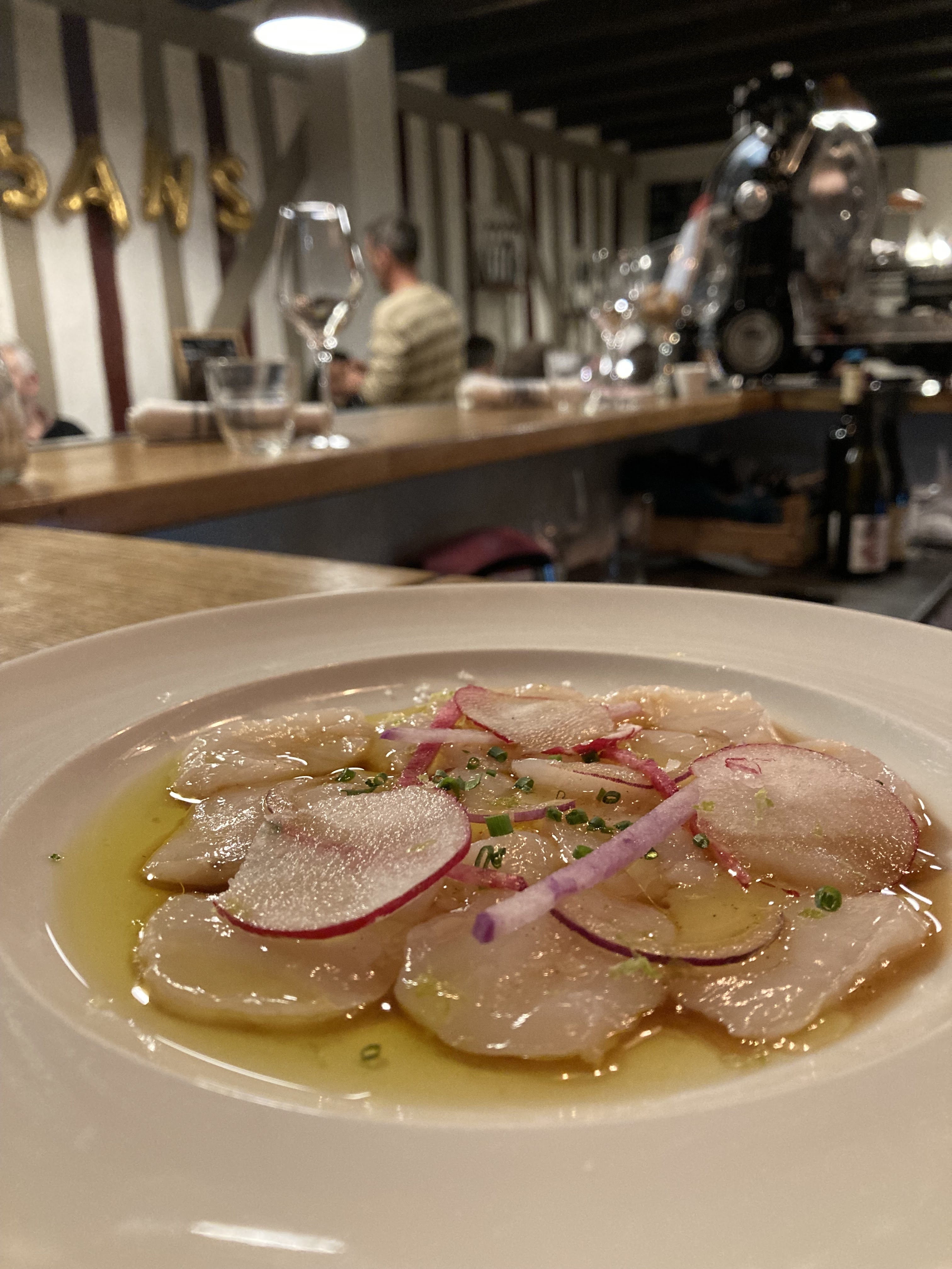 bon chef plus que remarquable et belle recherche de vins bios et natures. une demarche particulierement honnete de vrais professionnels.