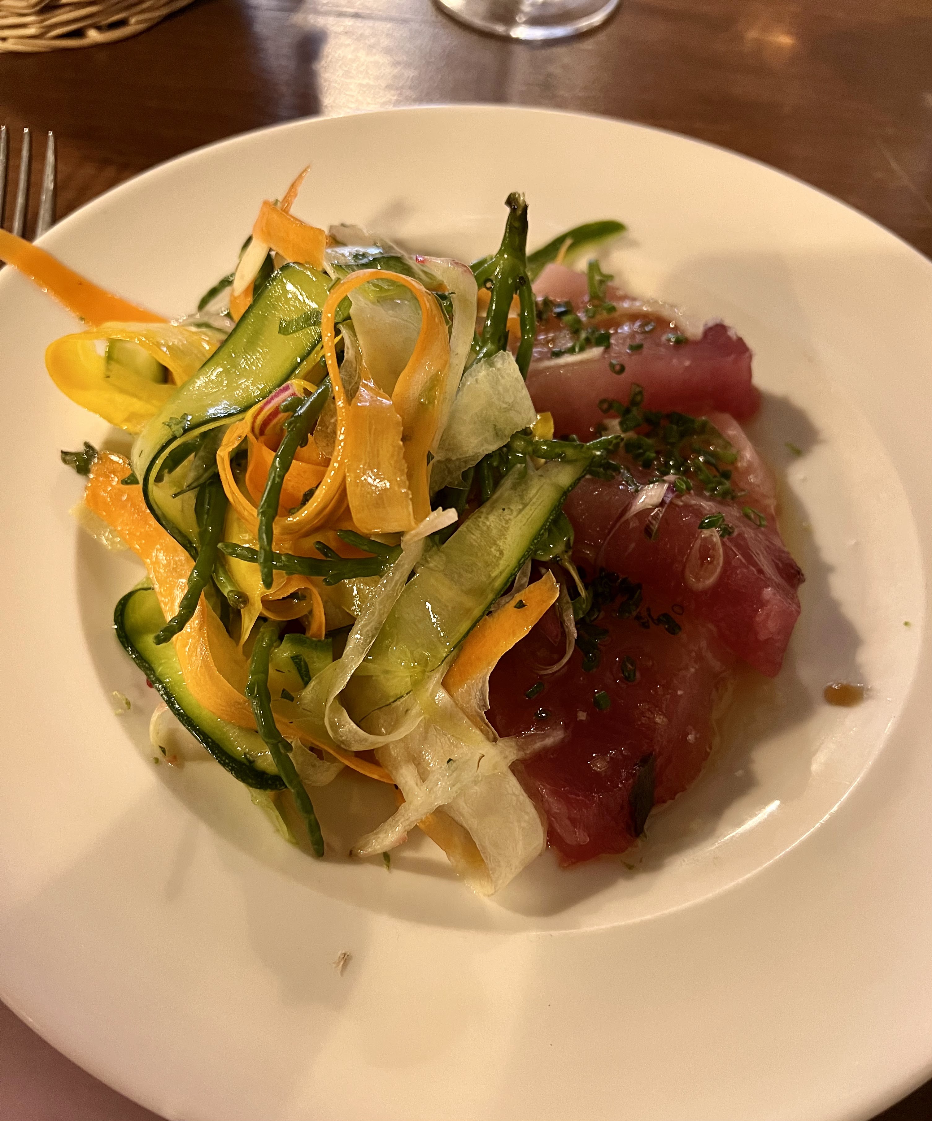Tout était super bon, de l'entrée au dessert. Service au top. Belle carte de vins natures (Dard et ribo, domain yoyo, sextant...). Je recommande très fortement.