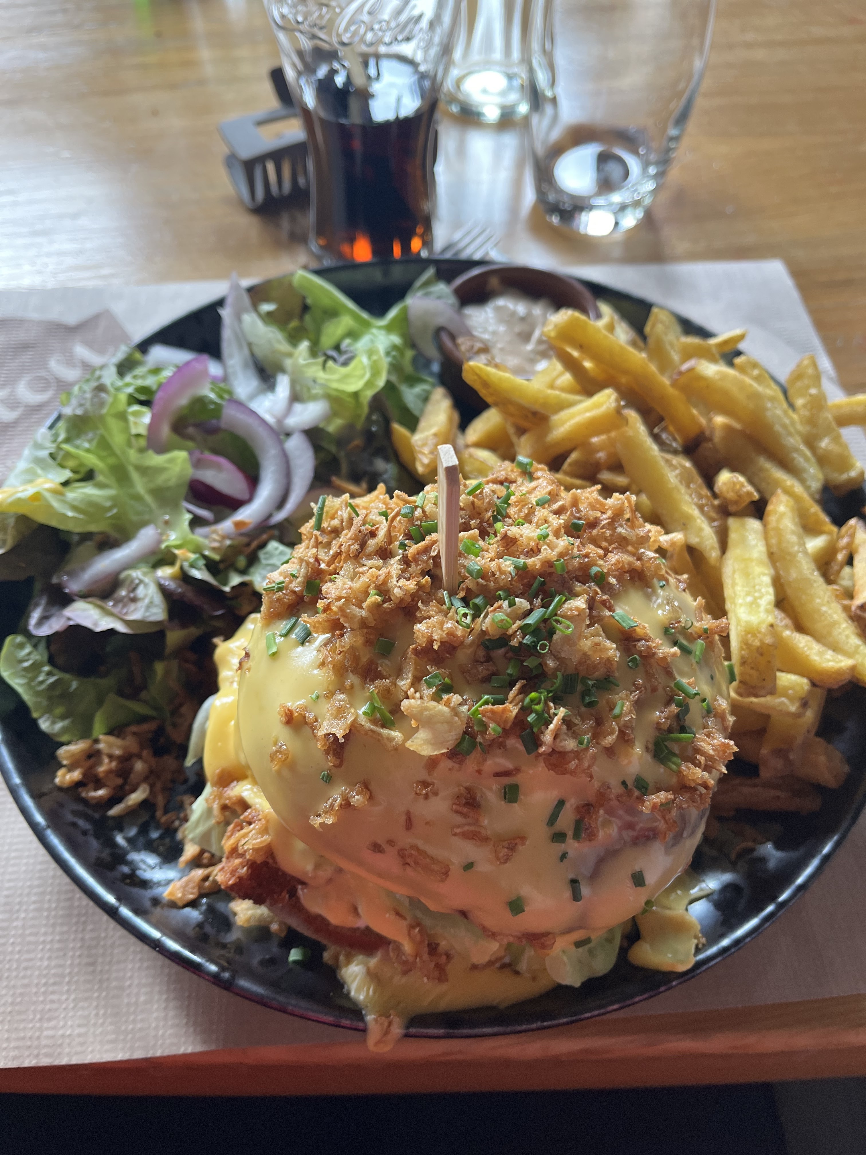 Ensemble correct. Terrasse agréable malgré que l'établissement soit en plein carrefour (voitures, bruits, pilotes,... Salade chèvre chaud sans artifices. Normal et sans effet wahou. Service rapide, souriant.