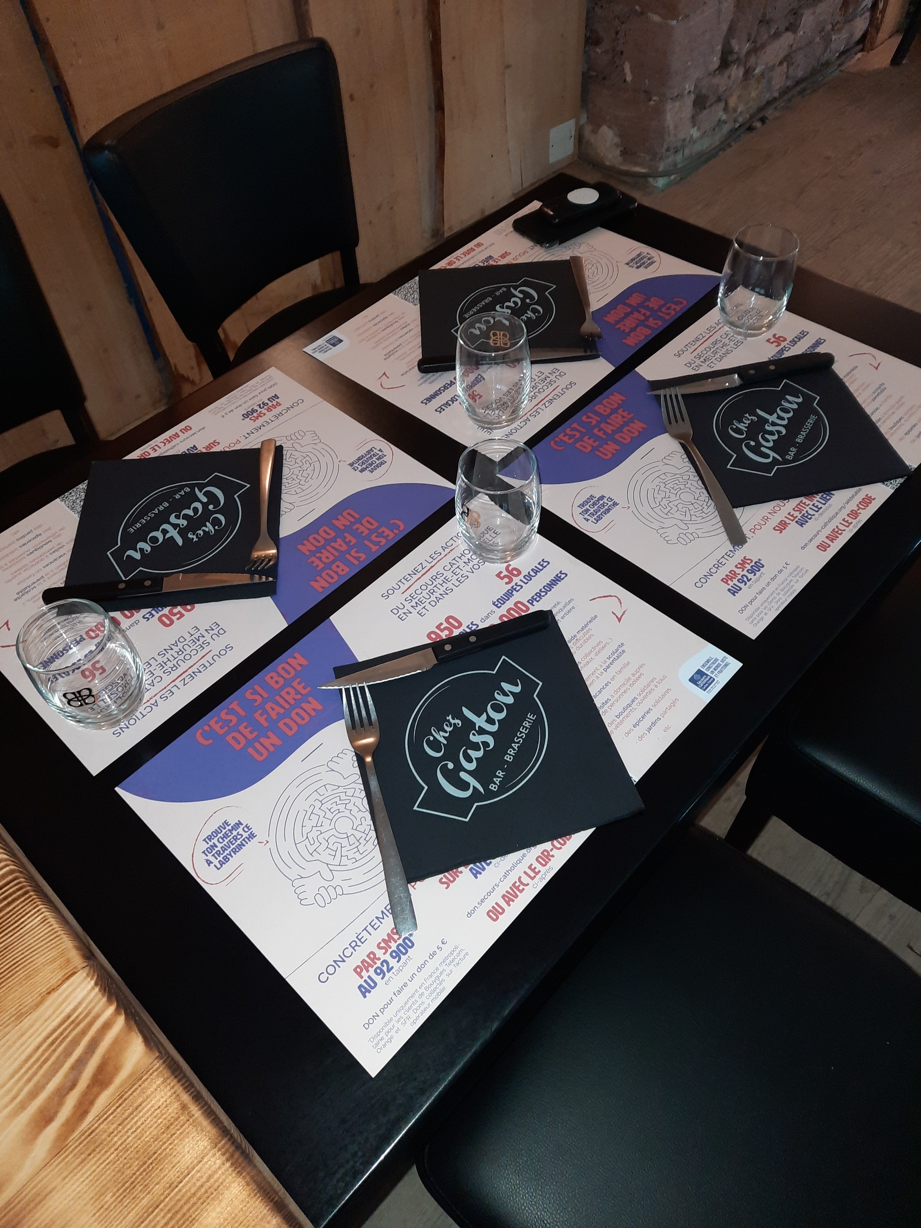Trop bon ! Une très bonne soirée chez Gaston, dans un cadre plutôt sympa. Nous avons pris une planche apéro très bonne et par la suite chacun s'est régalé avec son plat (pour ma part un cordon bleu au Munster, une tuerie !!!). Ambiance un peu sombre et bruyante à cause du match diffusé mais ca ne nous a pas empêché de passer un bon moment.