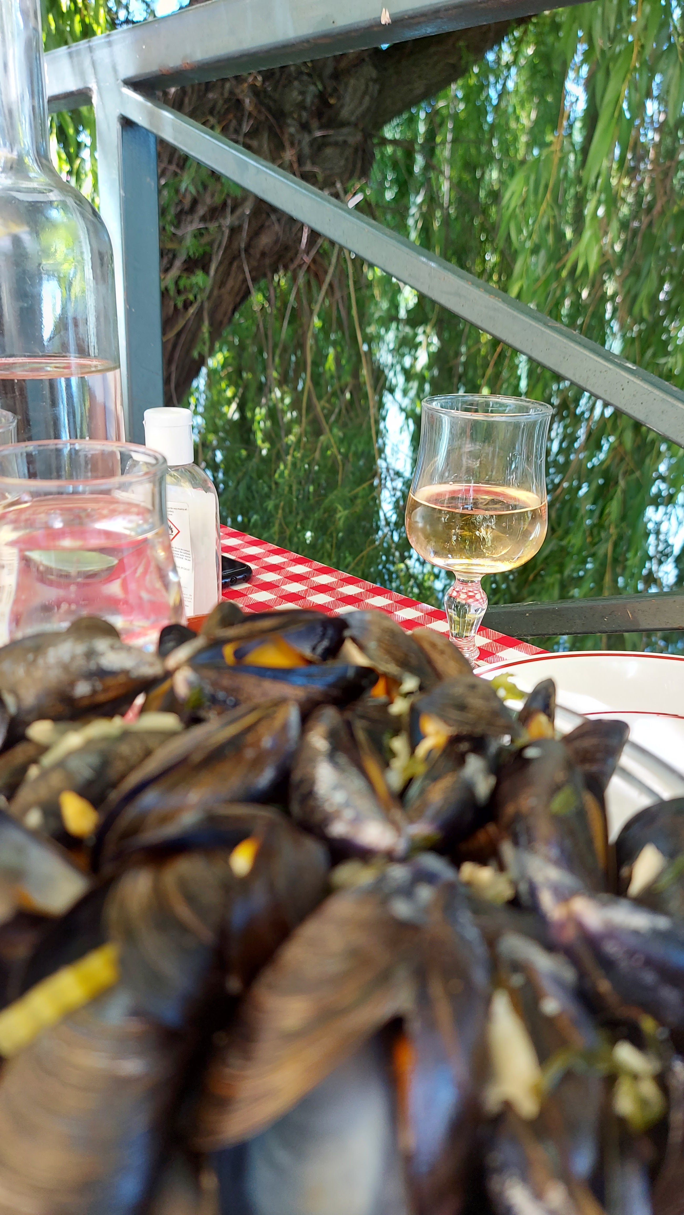Il faisait beau et chaud on se serait cru au bord de la mer.... Dégustation de moule à la crème accompagnées d'un estandon bien frais...un moment de partage qu'on envisage parfaitement dans ce cadre parfait des bords de Marne...je recommande !