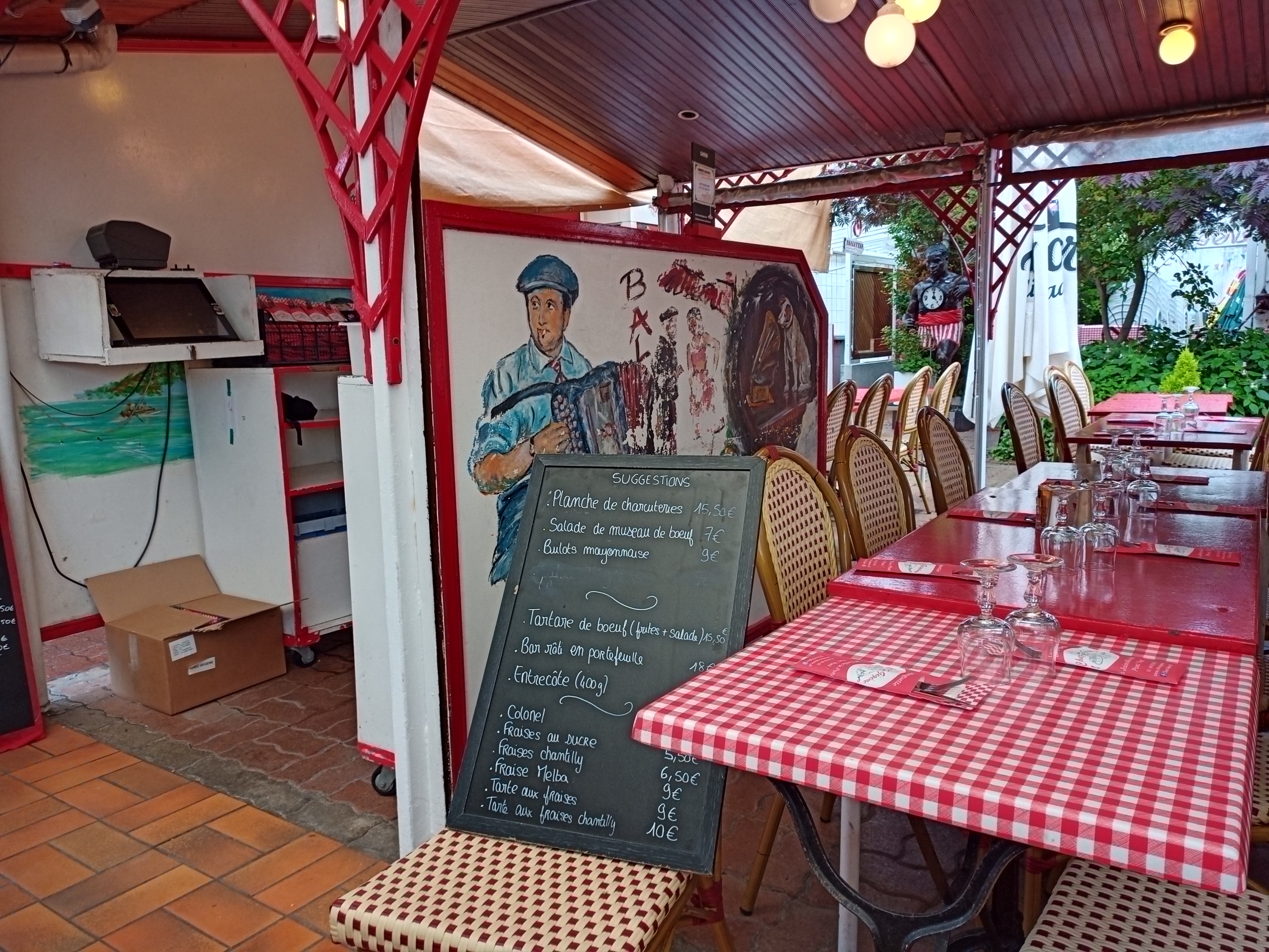 Que dire de l'établissement par lui-même, je ne sais pas nous n'avons pas déjeuné au cœur de cette guinguette mythique. Nous étions à la terrasse intérieure, 2 groupes d'une centaine de personnes. Nous n'avons rien vu de l'intérieur, ce qui est très dommage. Je pense que nous aurions pu déjeuner au cœur même de cet établissement décoré qui participe également à sa réputation. Il y avait une excellente accordéoniste qui jouait des airs de musette très entraînants... les personnes auraient pu danser un peu à l'intérieur. Très regrettable !
