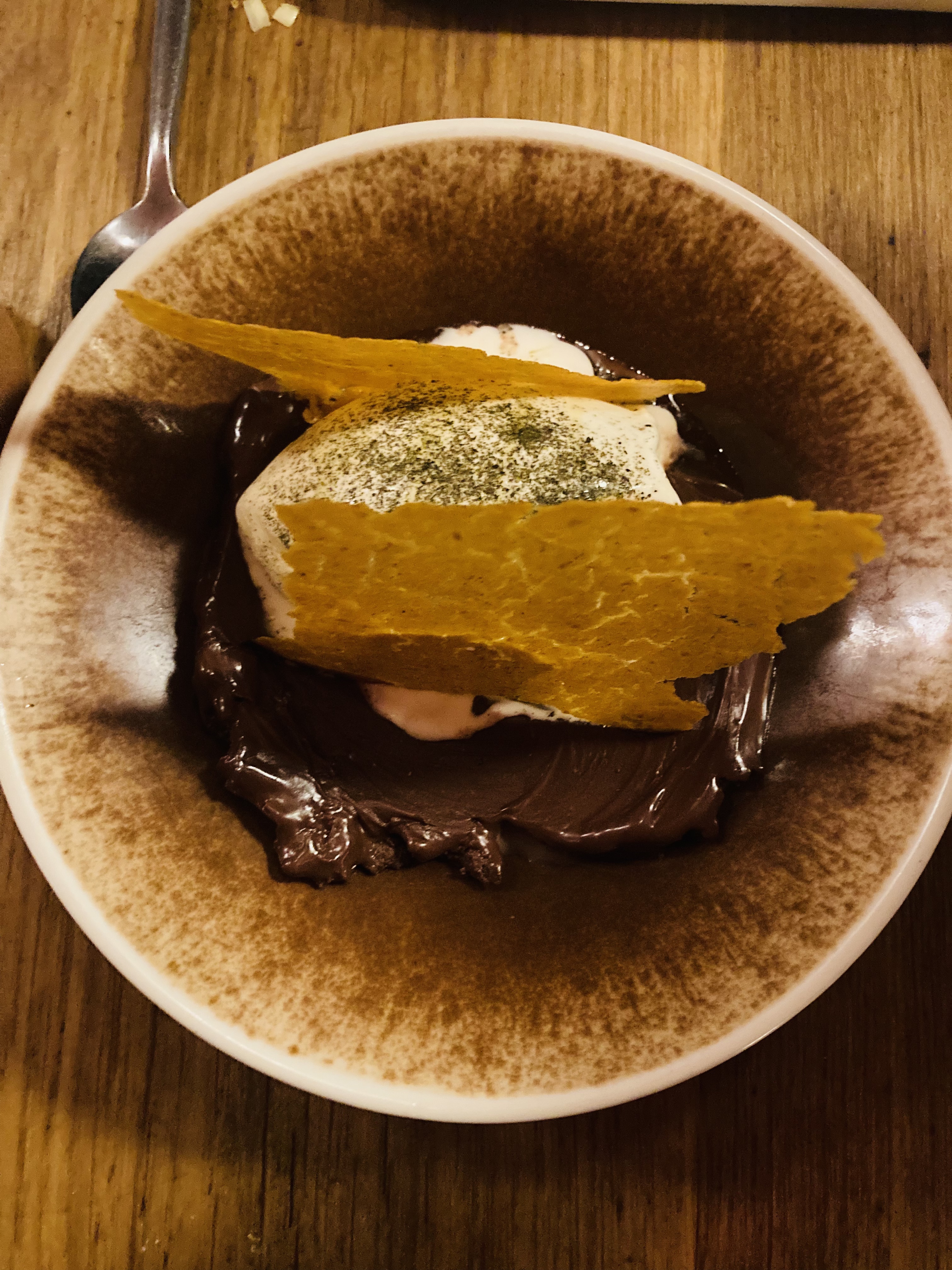 Cela faisait un moment que je voulais découvrir la cuisine d’Epicé et nous avons passé un excellent moment ! Les différents envois forment un tout harmonieux. Nous avons commencé avec un bouillon japonais (topinambours, chanterelles), poursuivi avec des mini tartelettes à la betterave et ricotta croustillantes et fondantes à souhait, puis un mini bun anguille fumée, poireaux au vinaigre, mayonnaise et poudre d’algues, continué avec un croustillant de pomme de terre divin accompagné de toum à l’ail fumé d’Arleux et de zaatar puis un maquereau rôti à la plancha, céleri rôti, sarrasin et champignons roses et enfin deux délicieux desserts que nous avons partagés : poire pochée, mousse de mascarpone, biscuit au café et ganache réalisée avec du chocolat Encuentro, glace à la cardamome noire et tuile de butternut. Les vins proposés étaient en accord parfait avec les différents envois. Nous avons passé un excellent moment chez Épicé et c’est certain, j’y reviendrai ☺️