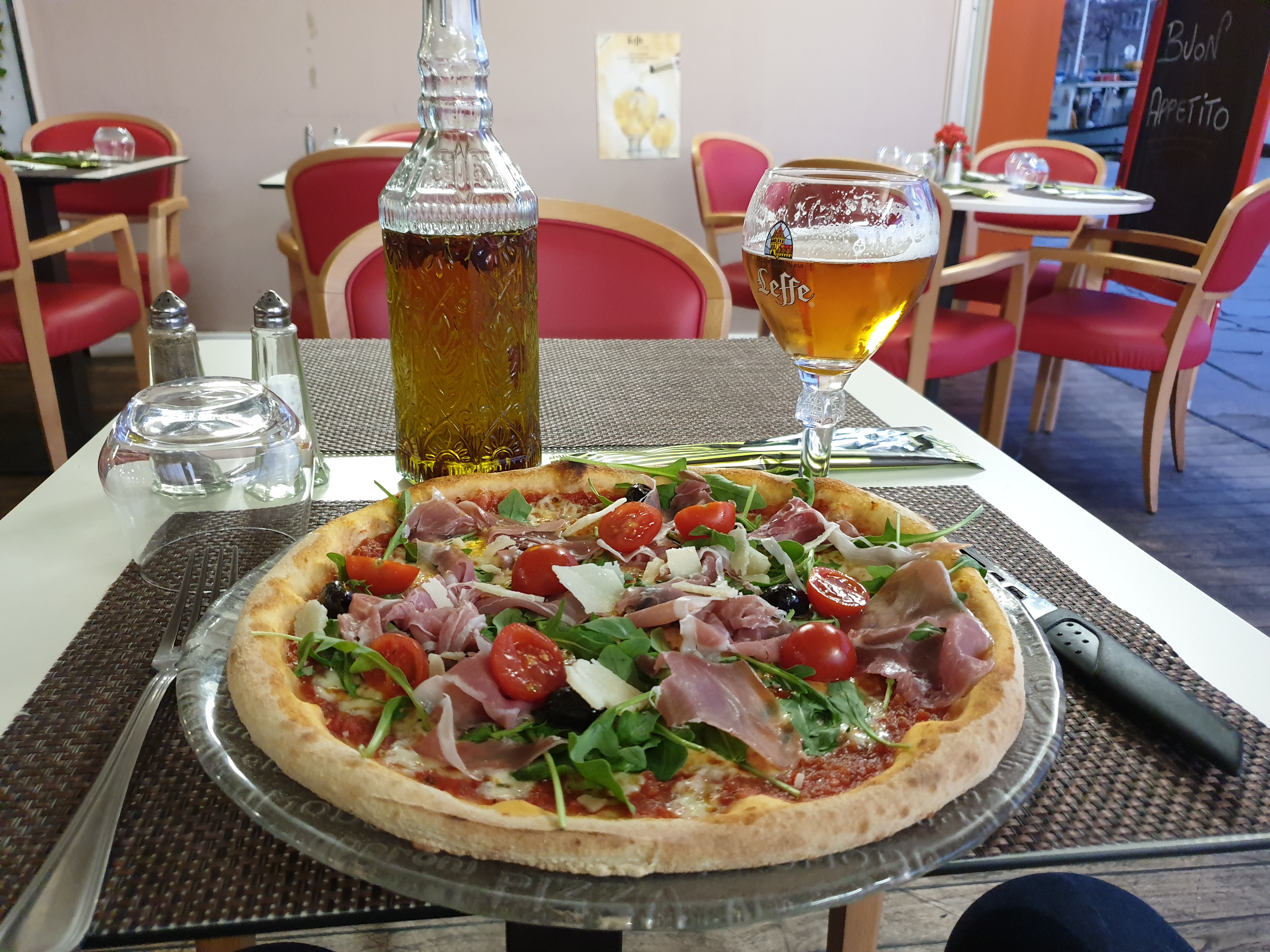 De passage restaurant accueillant serveur au top pizza très bonne rien à redire