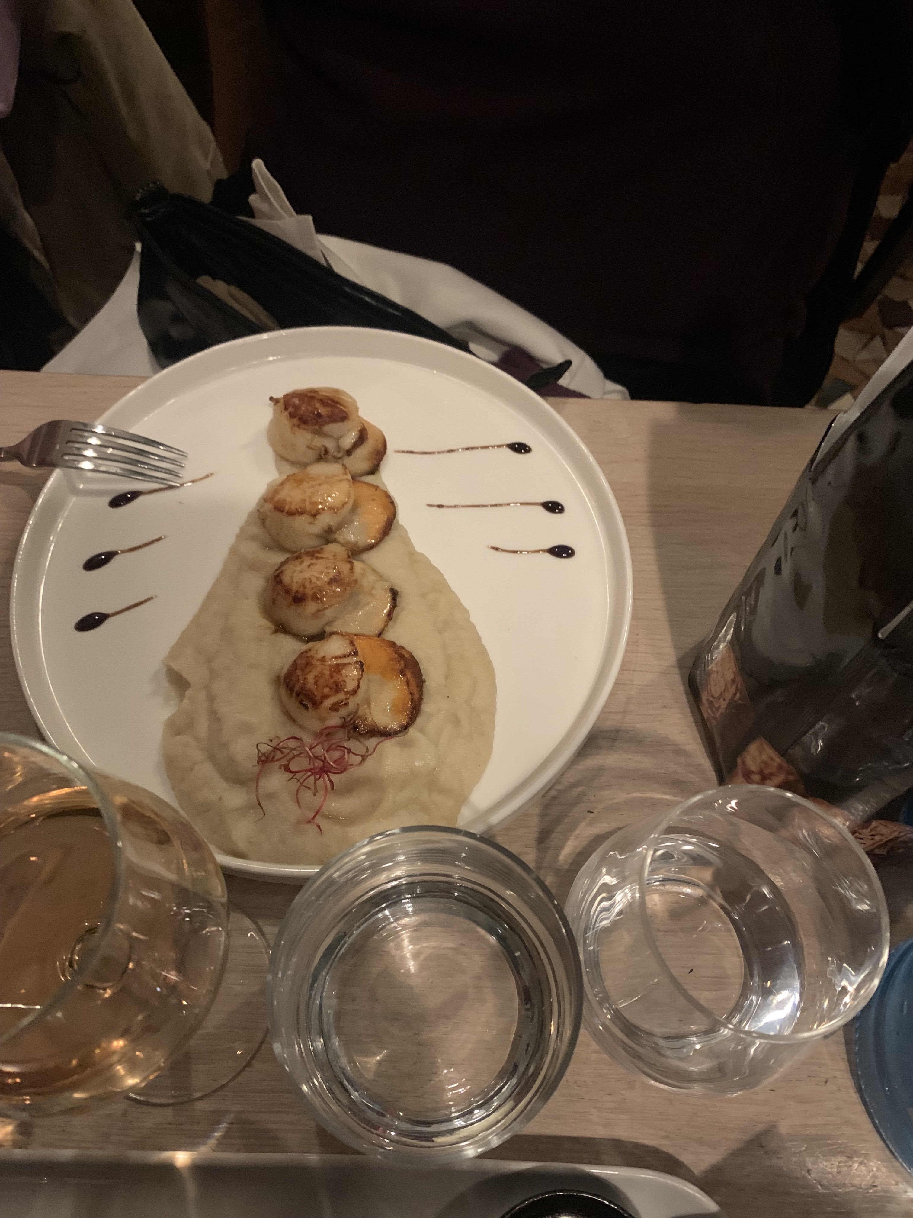 Nourriture incroyable! Les pétoncles étaient incroyables. Pas trop cuit et avec un bon goût frais. La purée de pommes de terre avait une texture lisse avec des morceaux de morsure. Un peu sucré pour plus de saveur et une belle présentation. Le service était excellent ! Souriant, rapide, sympathique et compétent. On nous a recommandé une excellente cuisine ! Faites-en votre incontournable gastronomique à Paris ! Evitez les restaurants touristiques, ils ne sont pas au même niveau mais coûtent plus cher !