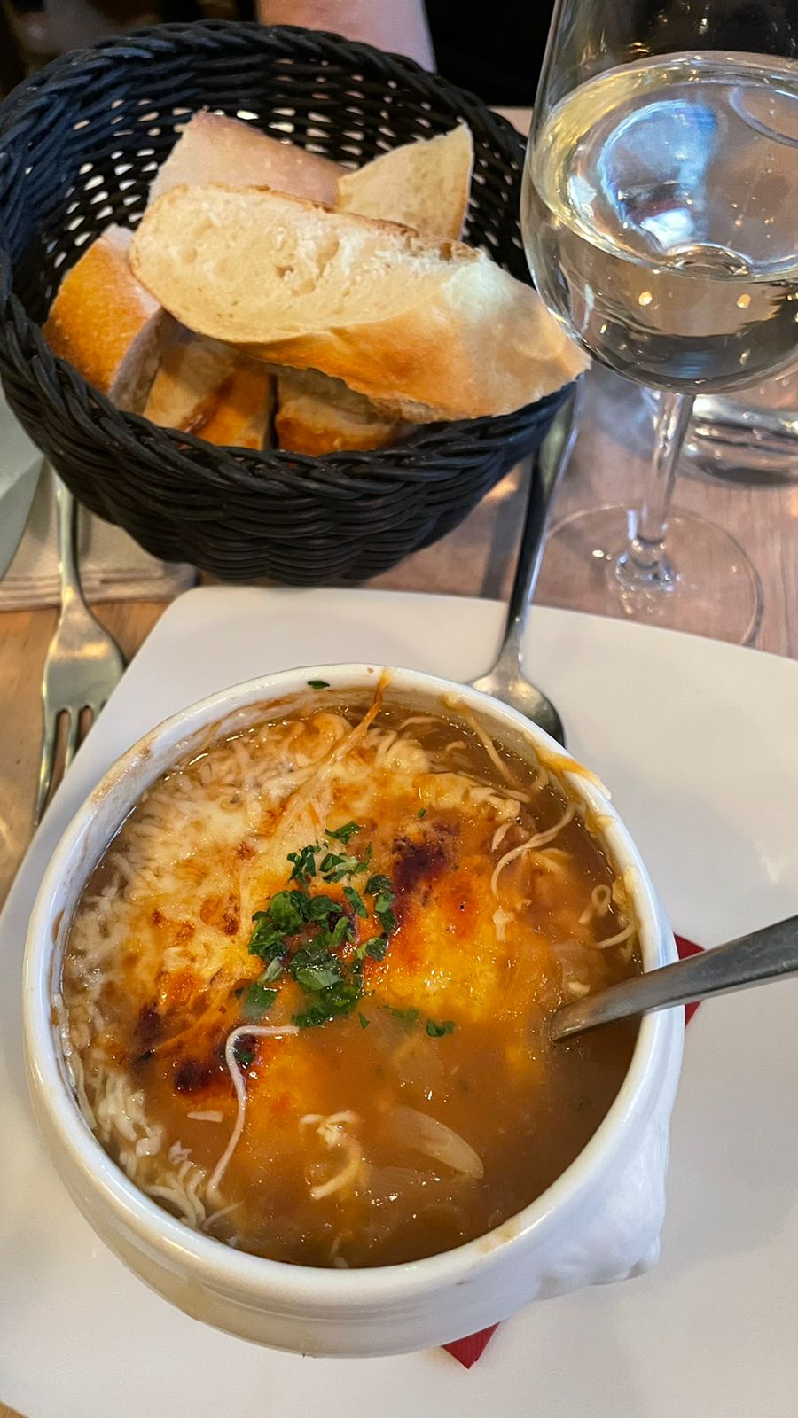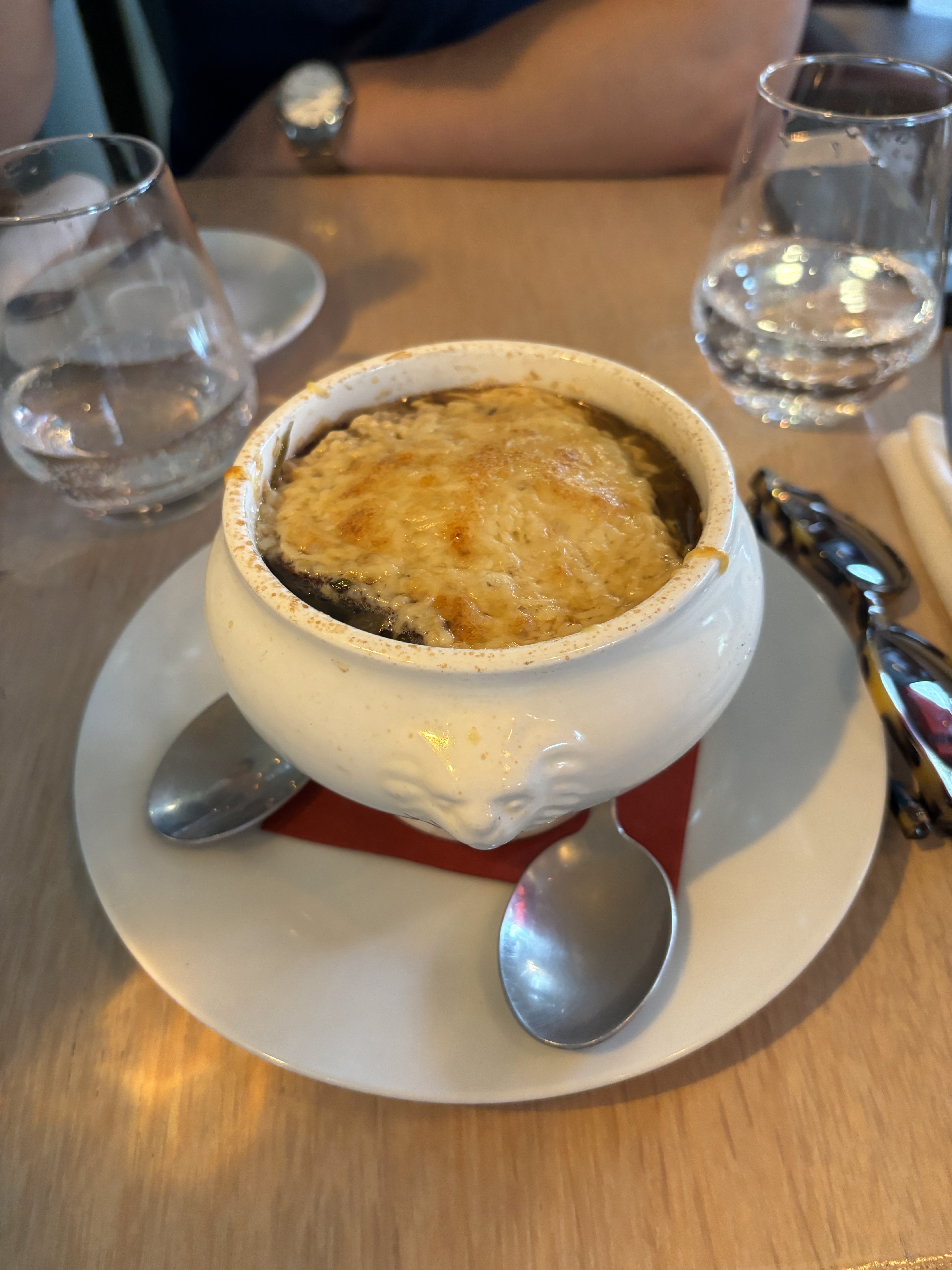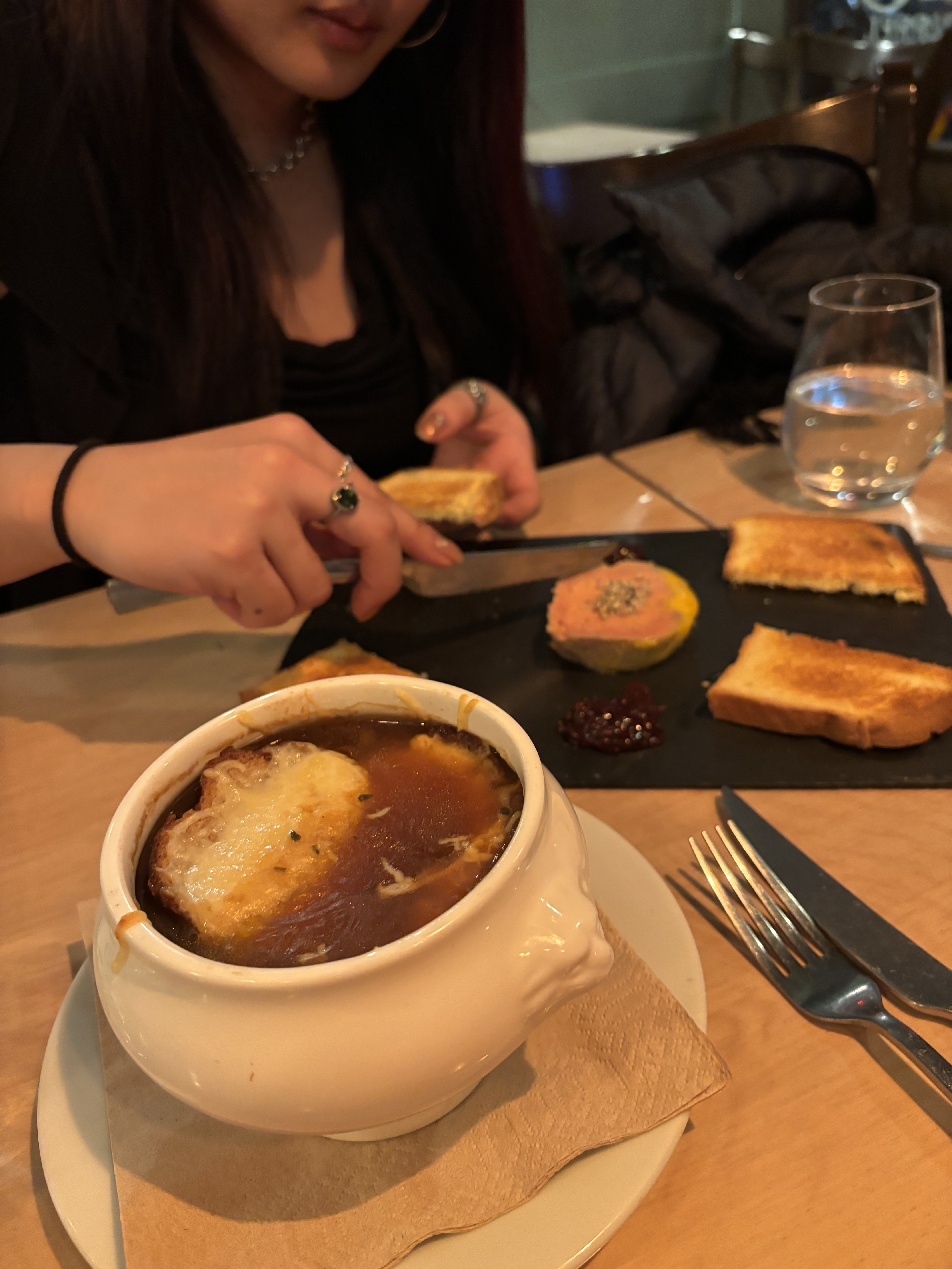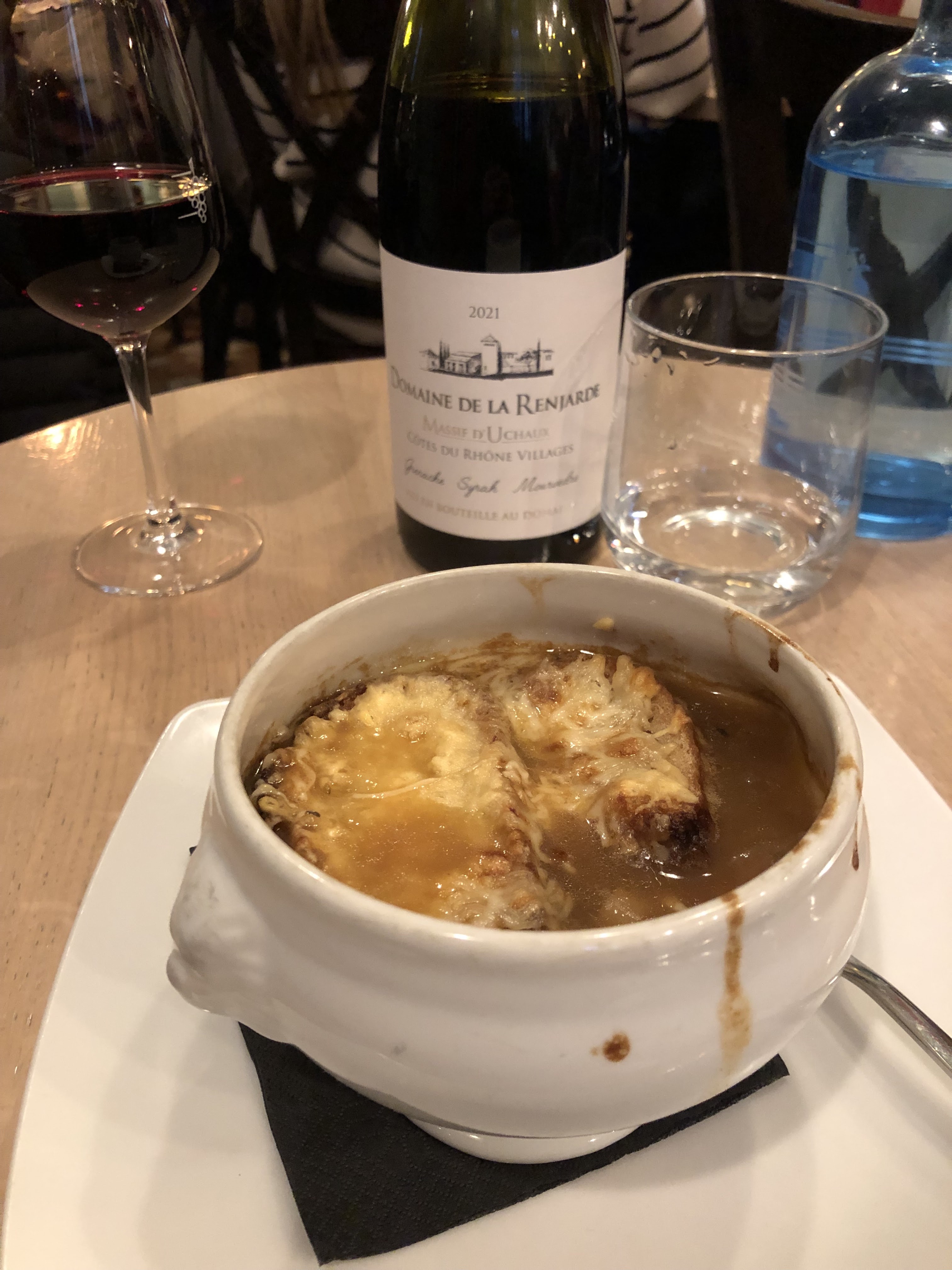 La soupe à l'oignon française était si bonne, fortement recommandée ! Mais l'endroit facture une commande minimum d'un plat principal par personne. Mais le service était bon et l'ambiance était charmante !