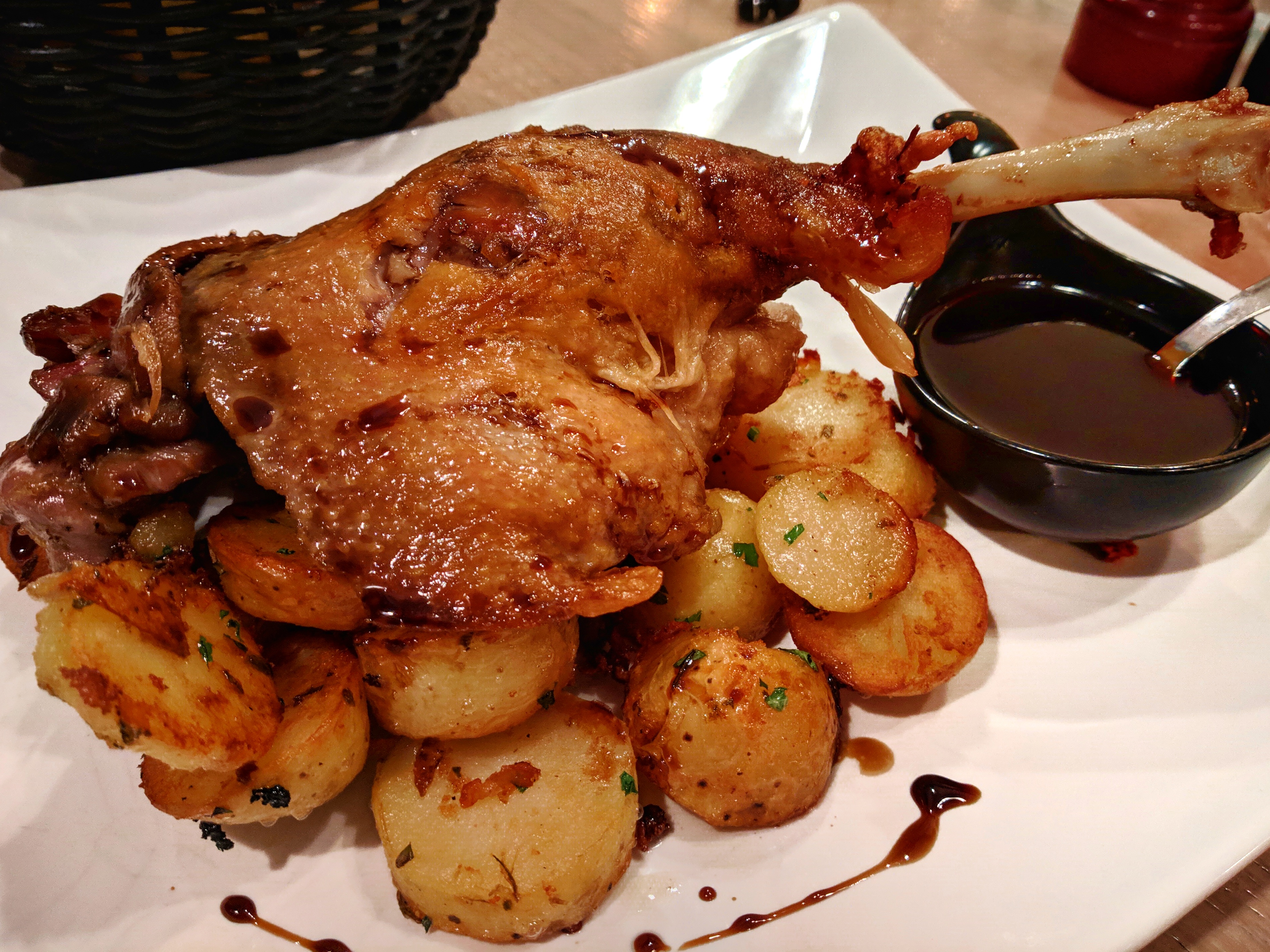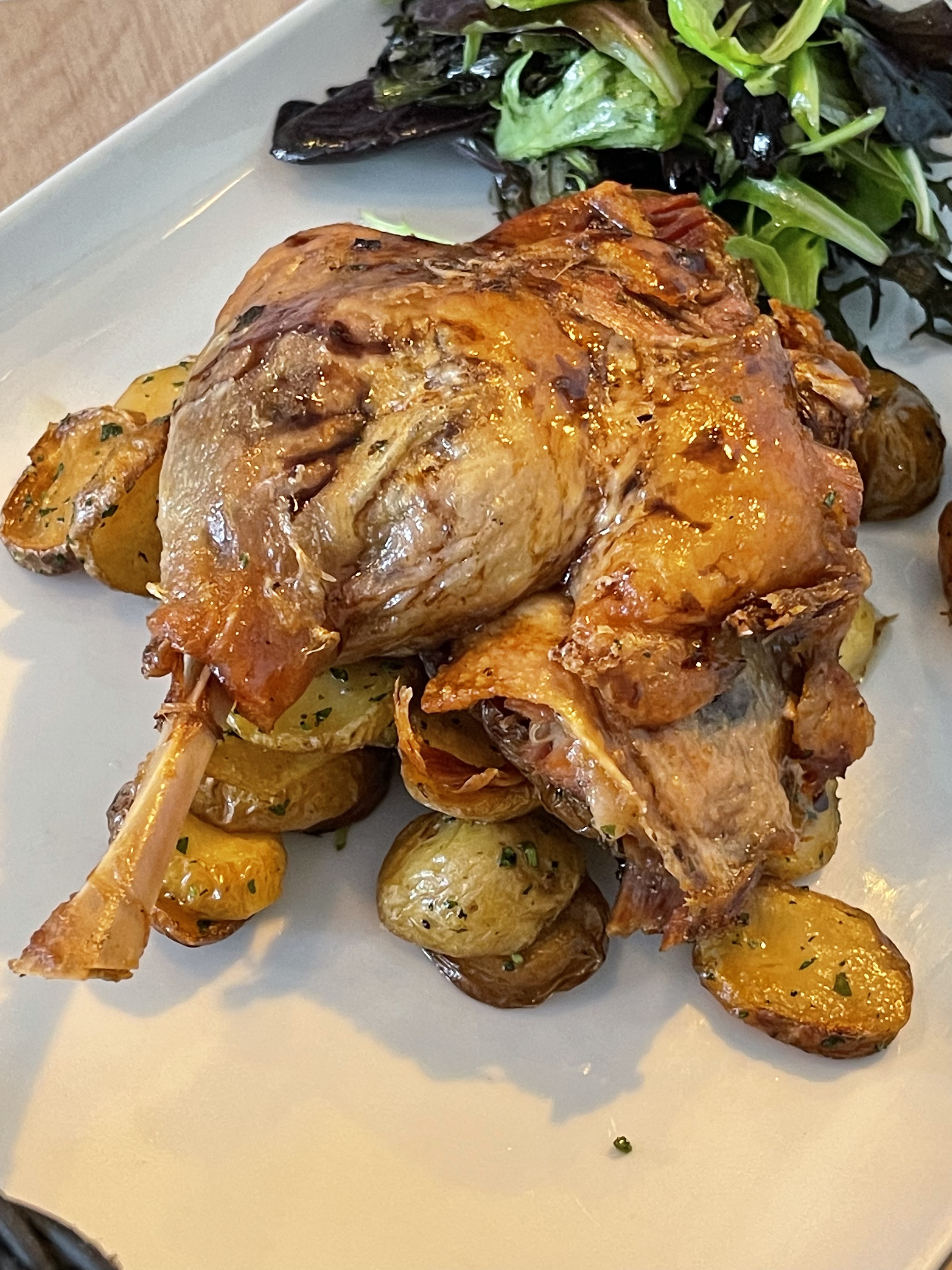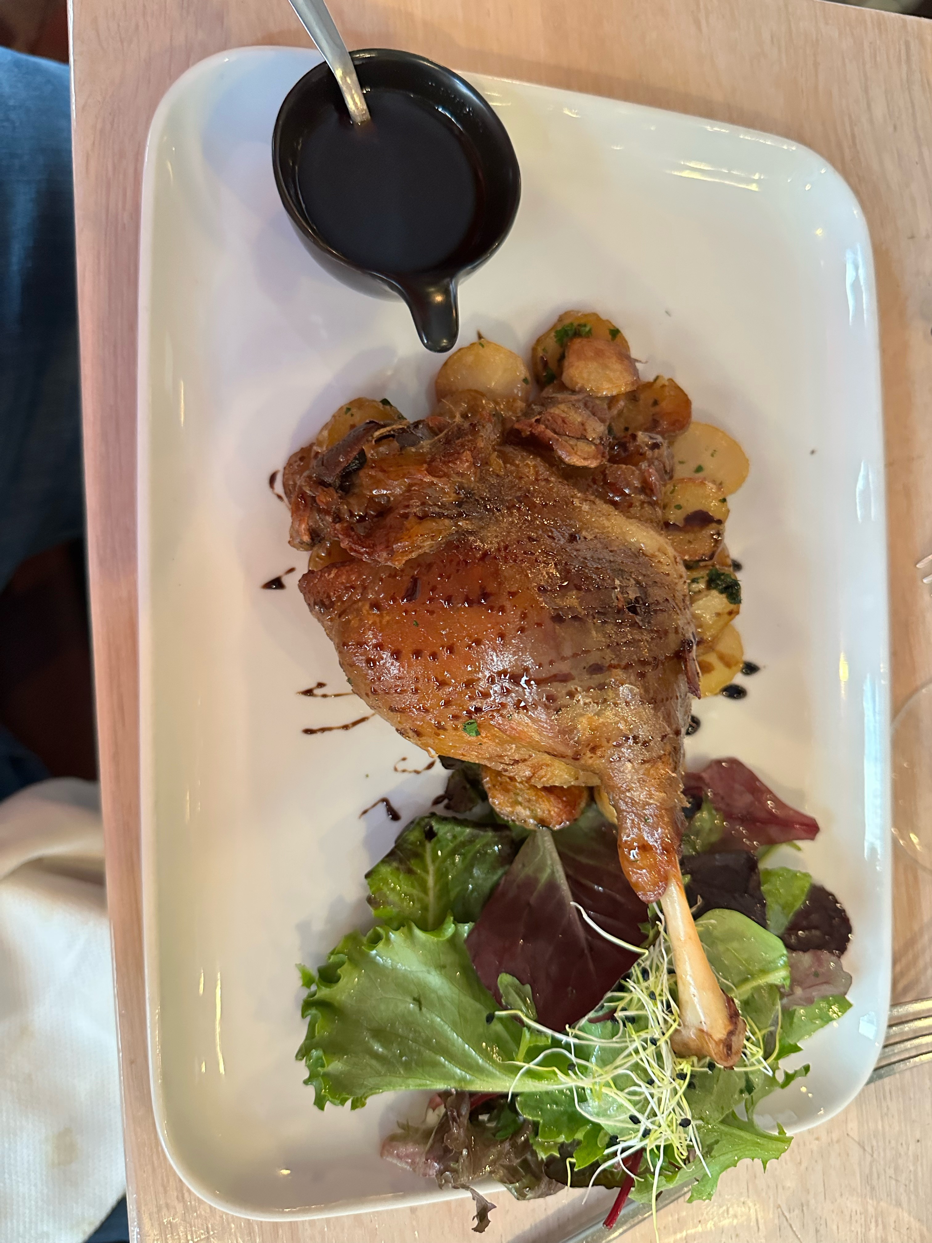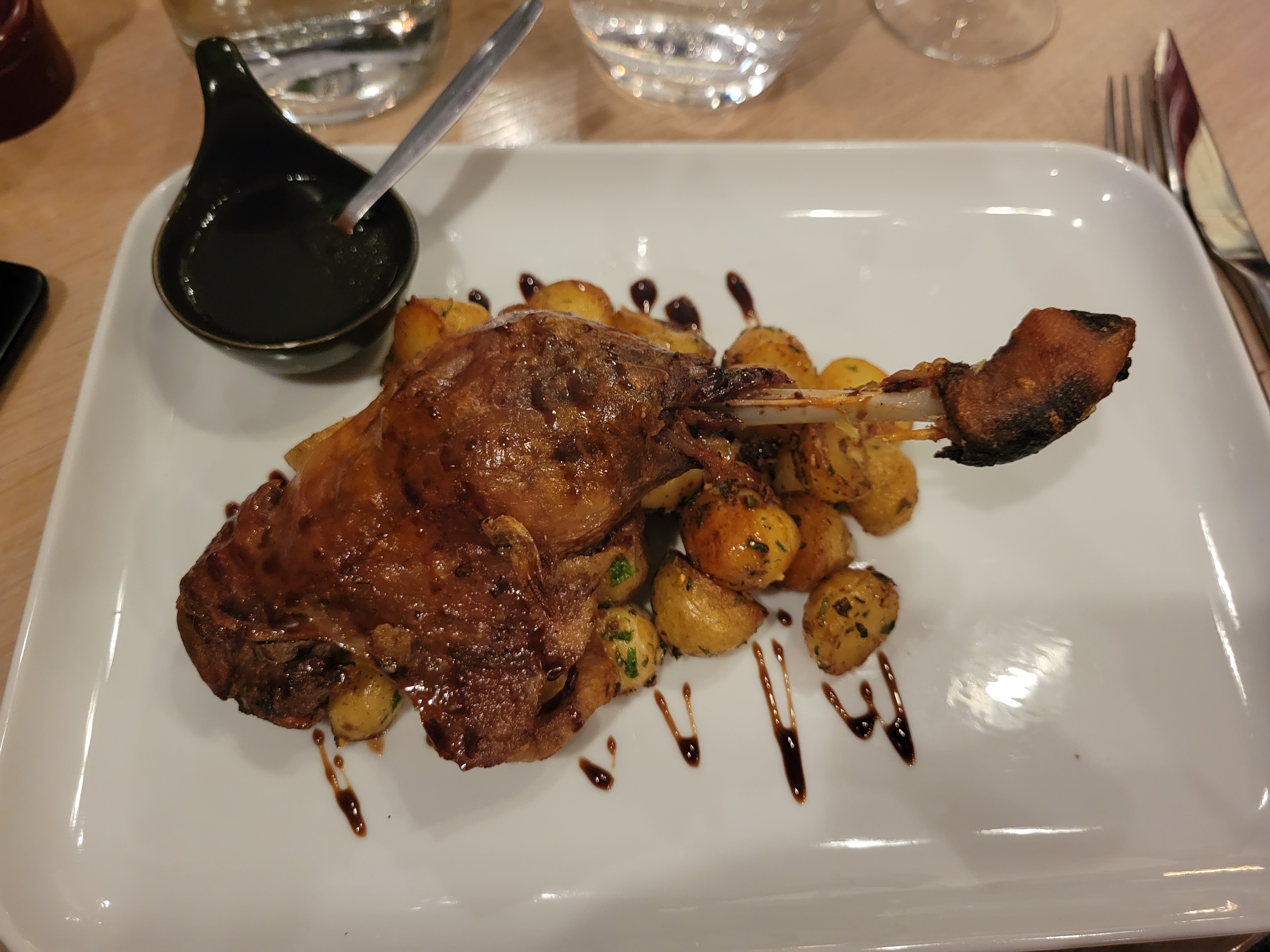 Essayez de faire une réservation si vous le pouvez, c'est un restaurant très petit et intime. Tout était excellent. Nous avons tous les deux pris le Canard Confit. Le canard était délicieux mais le véritable atout était les pommes de terre ! Je ne sais pas exactement ce qu'ils leur ont mis, mais ils étaient exceptionnels.