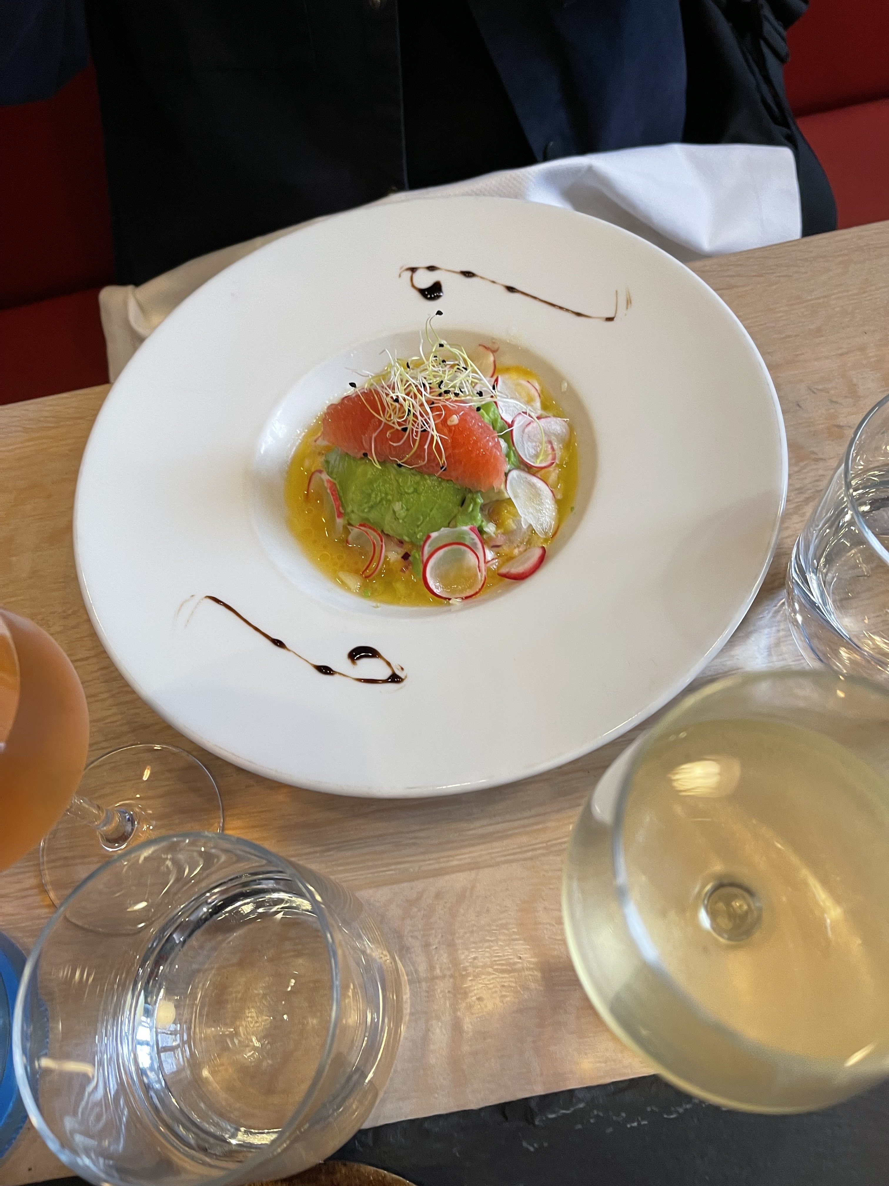 Excellent restaurant, réservé à la dernière minute un samedi midi, nous sommes absolument ravis! La terasse est petite mais la rue est calme. Le serveur était super sympathique! En ce qui concerne la nourriture, les escargots sont très bons. Les plats en revanche... sont excellents. Le risotto à l'encre de seiche est délicieux et les saint jacques parfaites. En bonus, la carte des vins a beaucoup de très bon choix pas très onéreux. Nous reviendrons sans hésiter.