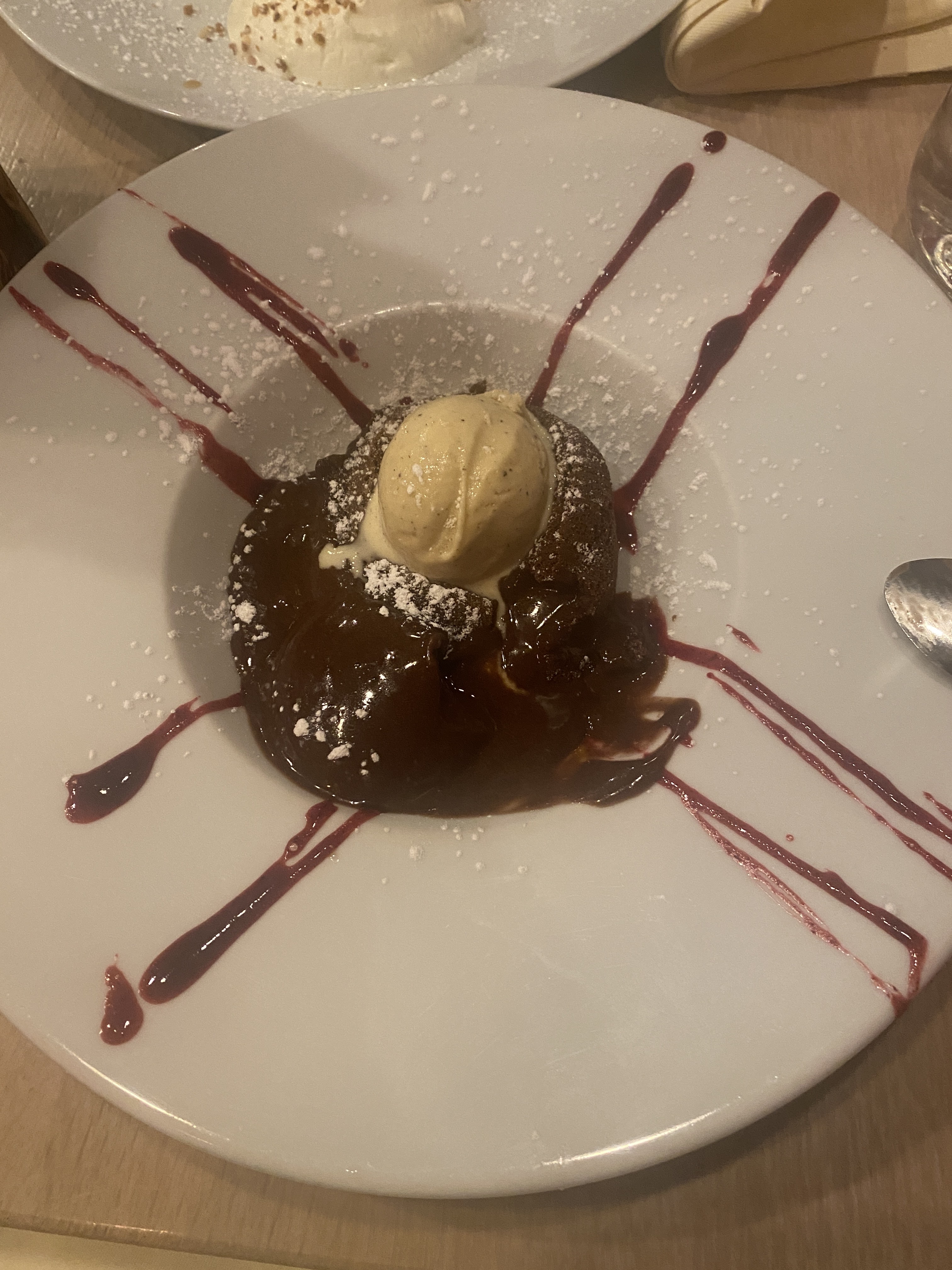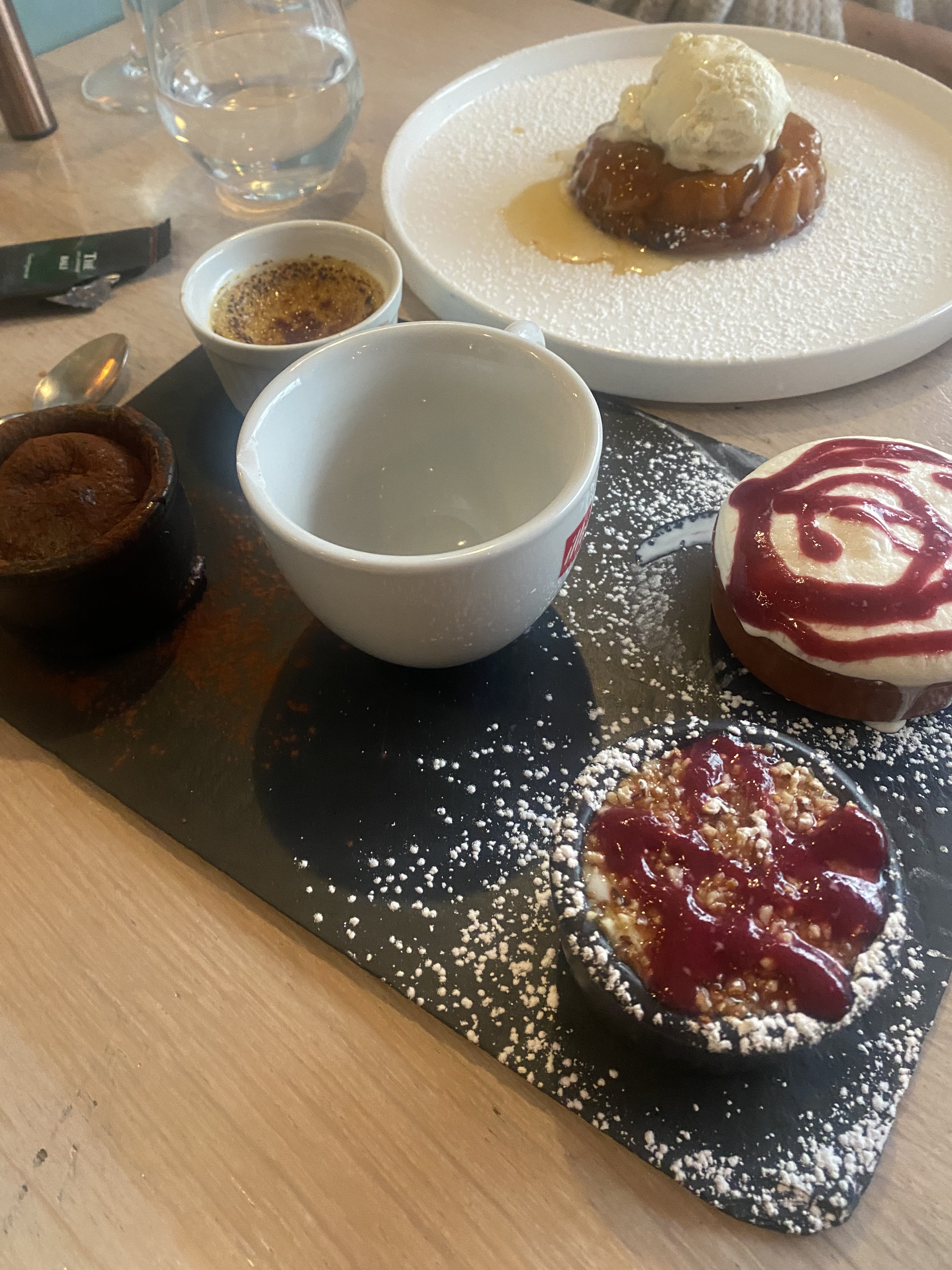 Une autre expérience merveilleuse ici, notre deuxième de ce voyage. Aujourd'hui, j'ai eu la soupe à l'oignon française et la terrine, les deux entrées sont servies mais bel et bien assez grandes pour moi. Mon mari a pris le ragoût de poulet et il a dit que c'était délicieux. J'ai eu le gâteau cho 8lava en dessert et mon mari a pris la Charlotte aux fraises, tous deux délicieux. Notre deuxième repas ici et aucun regret, c'était merveilleux.