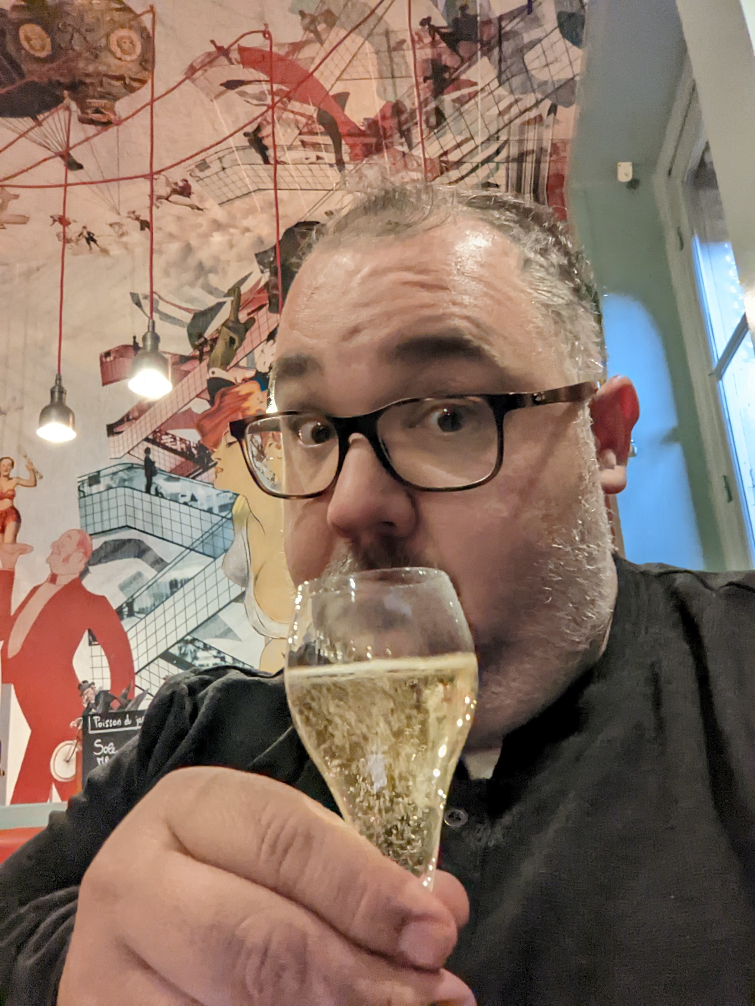 ❝ Escargots, confit de canard et autres spécialités dans une brasserie pittoresque dotée d'une fresque murale colorée. ❞