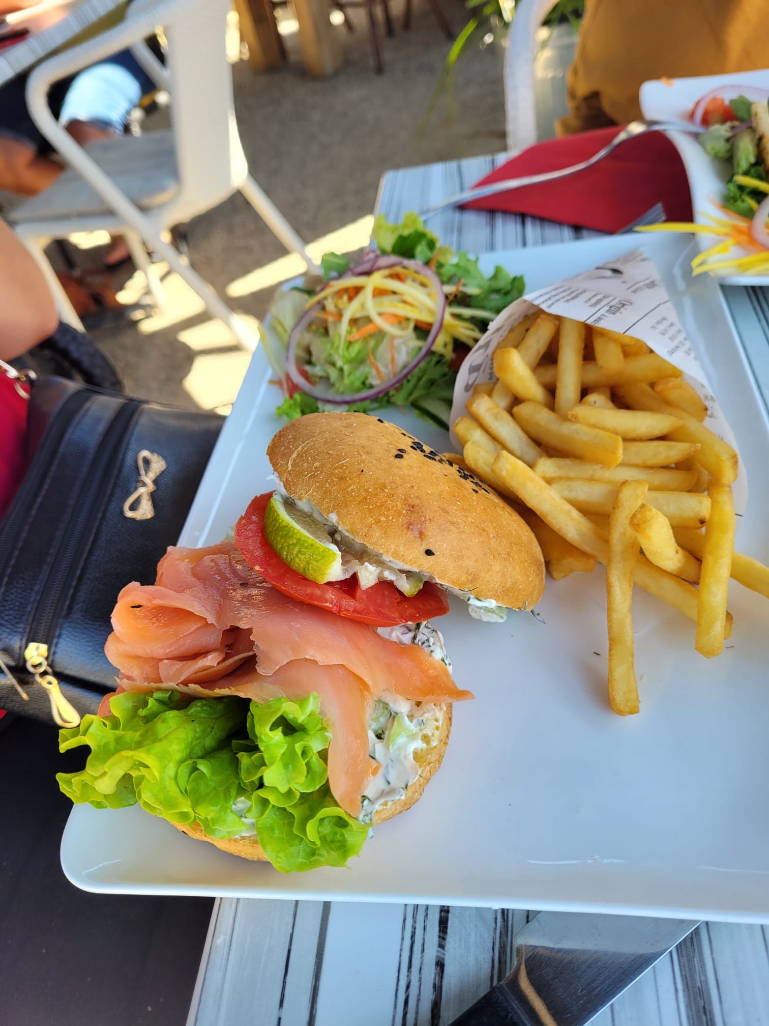 Un très bon moment en terrasse ombragée. Ça vallait le coup d'attendre quelques minutes qu'une table se libére. On a apprécier les produits frais et de qualité. De belles assiettes copieuse comme il faut . Le burger froid saumon crème de concombre et le pavé de thon grillé... Un délice !!!! 😋 Merci pour votre simplicité. Ju & Ju