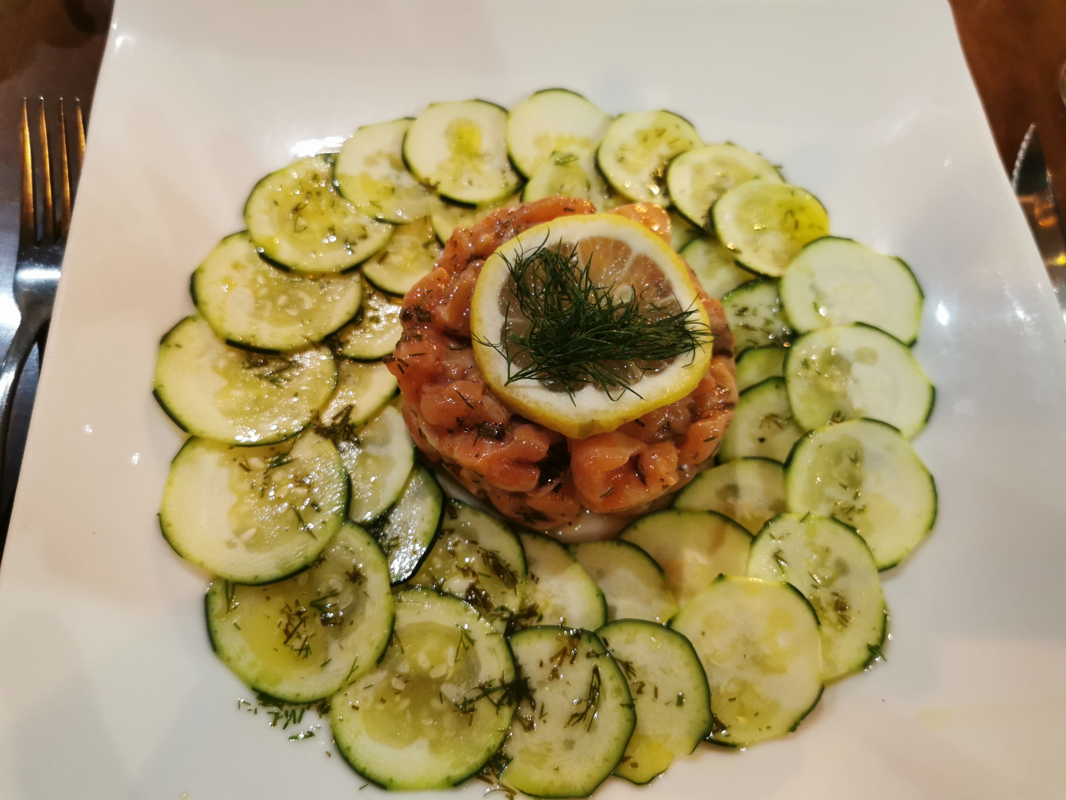 Très bon accueil, belle assiette et bien servi. Nous avons pris le plat du jour un tartare de saumon, rien à redire c était très bon