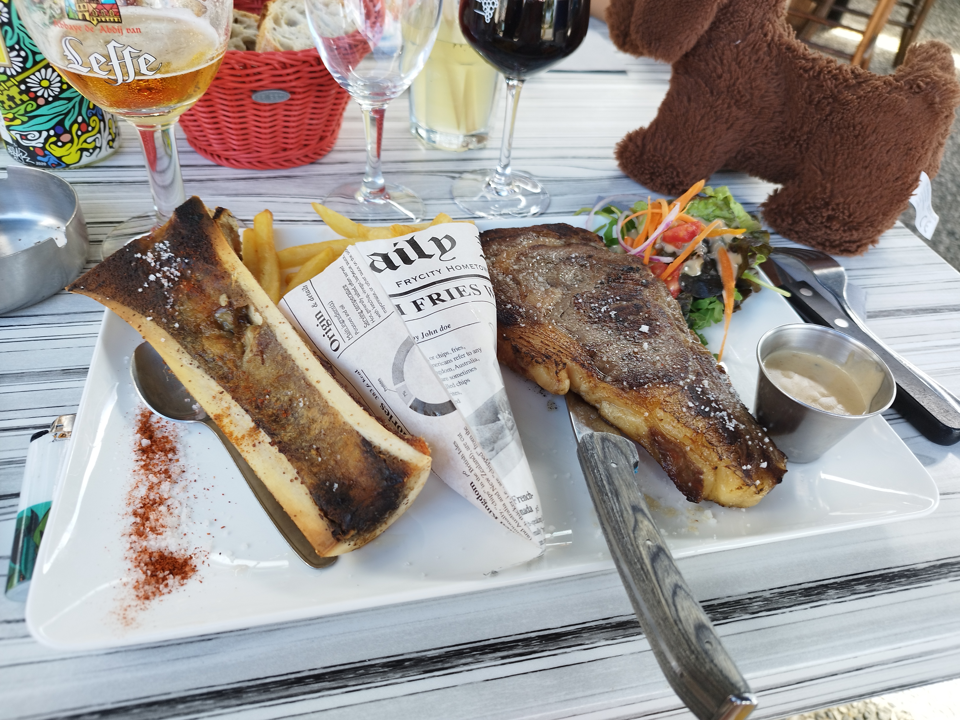 Dommage qu'il n'y a pas 6 étoiles, car ce restaurant les méritent aussi bien pour l'accueil que pour la cuisine. Je recommande fortement. L'entrecôte à la moelle est excellente. Bravo à toute l'équipe