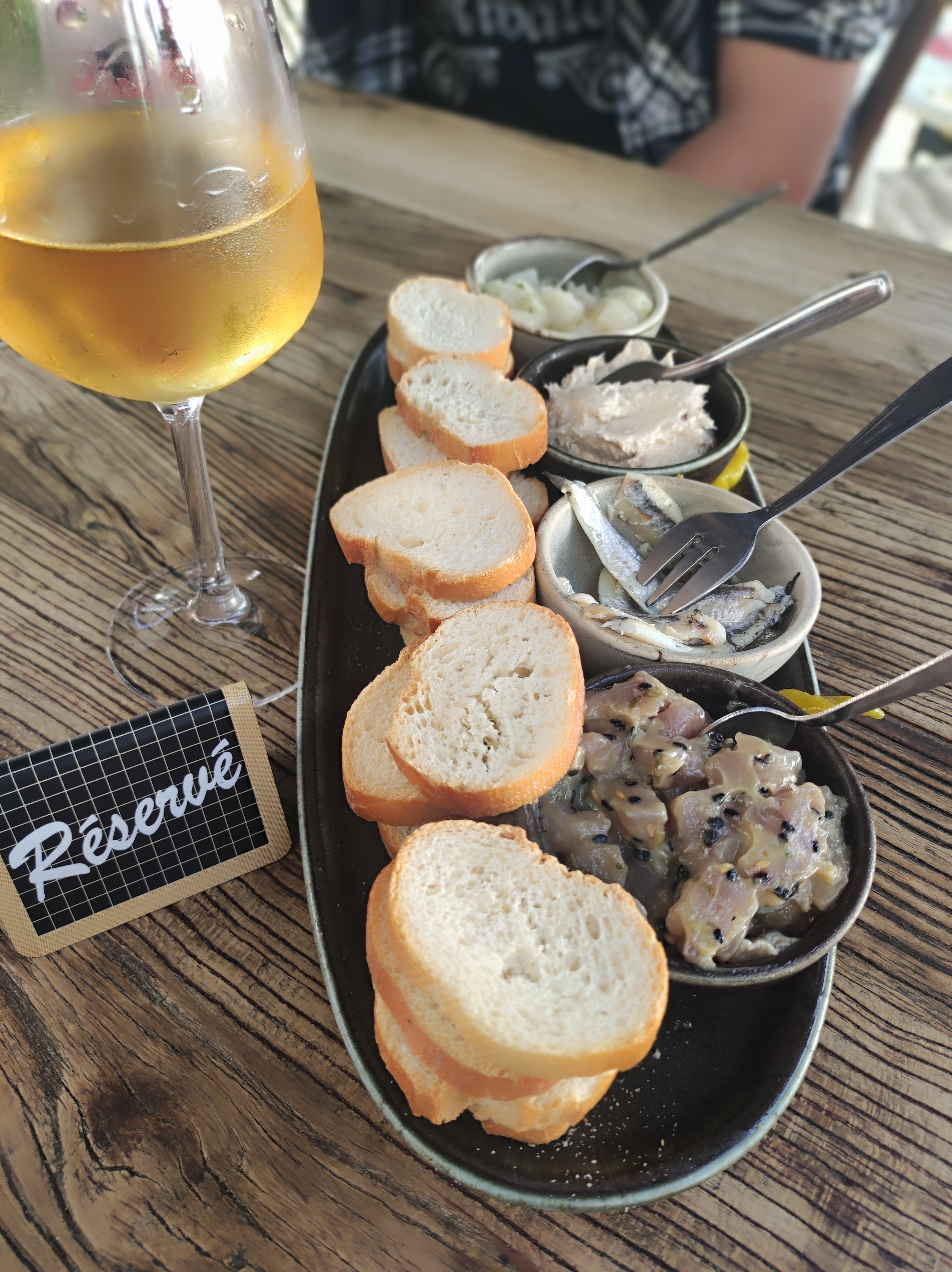 Arrivés à 18h30 pour boire un verre en terasse, la serveuse nous refuse car toutes ses tables sont reservées pour la restauration. Puis elle accepte 2 couples juste après nous qu'elle installe gentillement sur des tables hautes pour boire un verre. L'impression que nos gueules ne lui plaisaient pas.. très commerçante la dame ça promet pour la saison 👍🏼