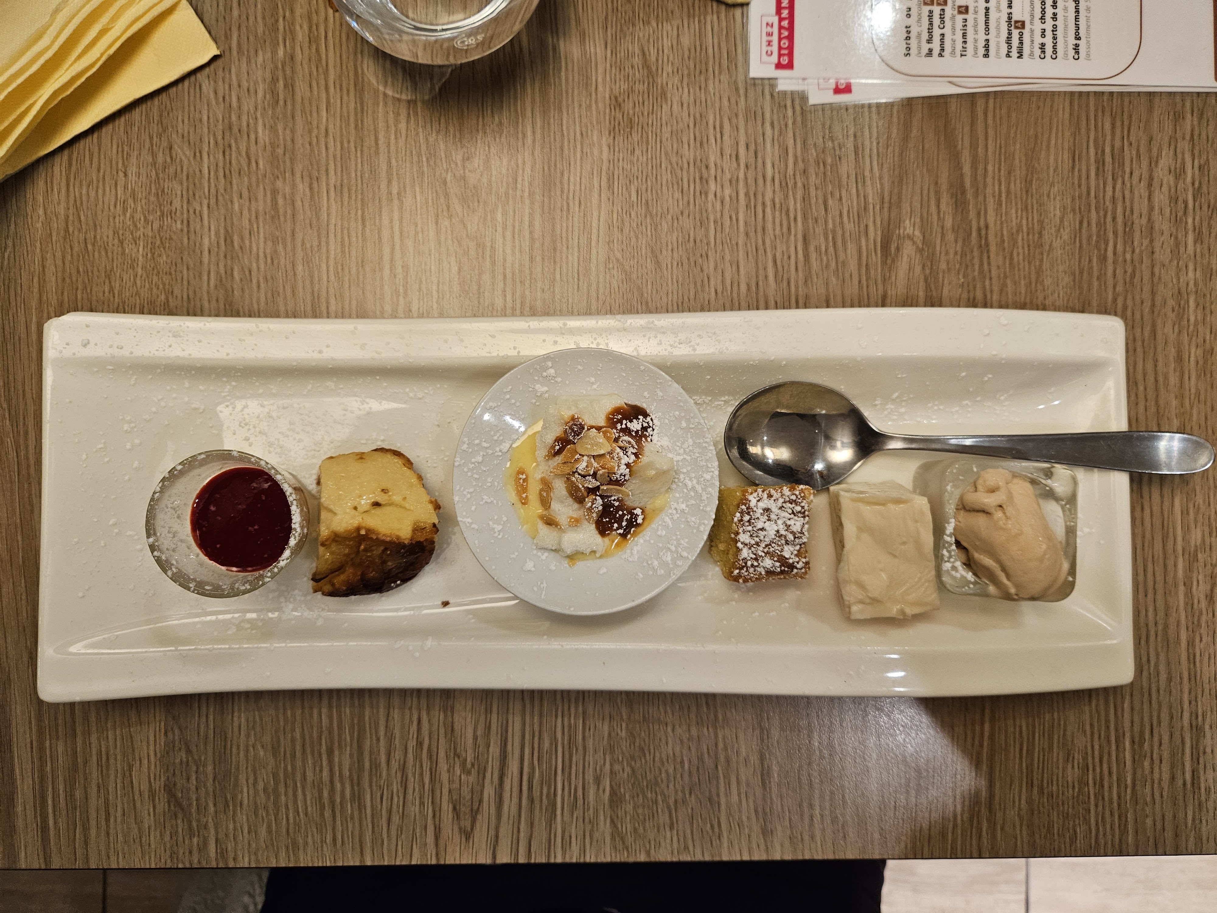 Cela fait plus de 6 mois que je suis abonnée sur Instagram au compte du restaurant et je ne trouve jamais le temps d’y aller. Qu’à cela ne tienne : ce soir, j’ai enfin pris le temps de pousser les portes de Chez Giovanni et notre expérience a été superbe !! Les produits sont frais et valent vraiment le détour. Le service est au top car rapide et en toute simplicité. Le plus de la soirée : pour la journée internationale du tiramisu, on nous a offert des petites parts de gâteau individuelles. Une expérience positive qui mérite que l’on y aille plus souvent !! Validé à 100% !